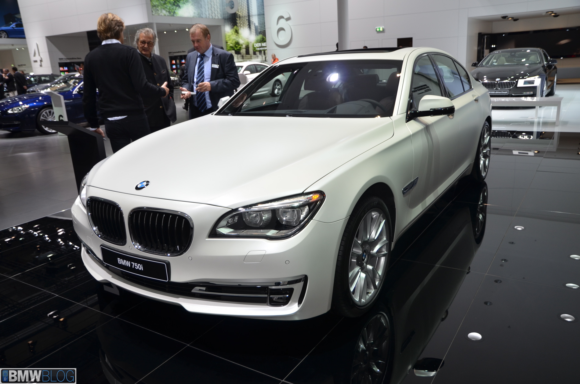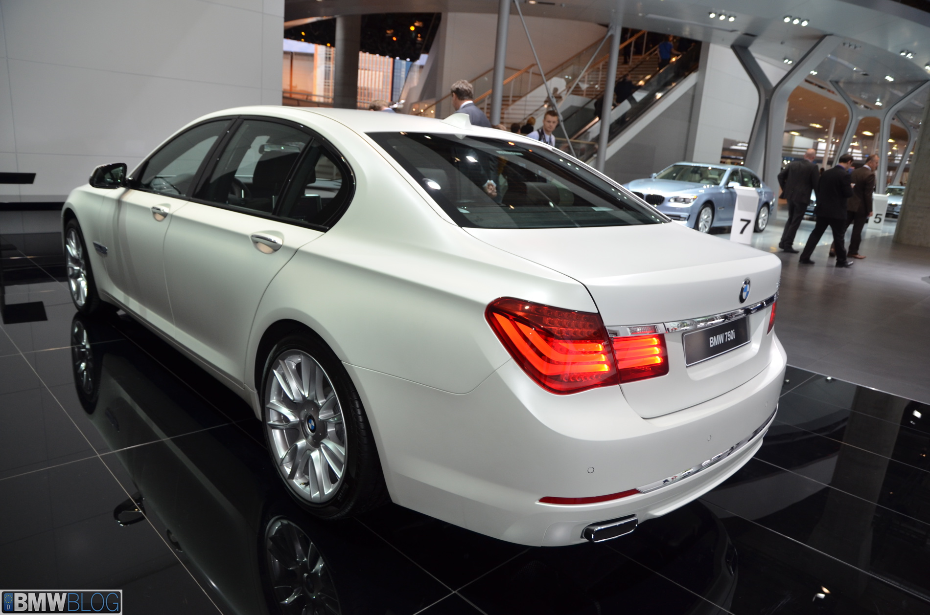 The BMW 750i Individual displayed here features a frozen white paint that gives the car an even more exclusive look. Both models here in Frankfurt come with many upgrades that raise the base price by at least 20,000 Euros.