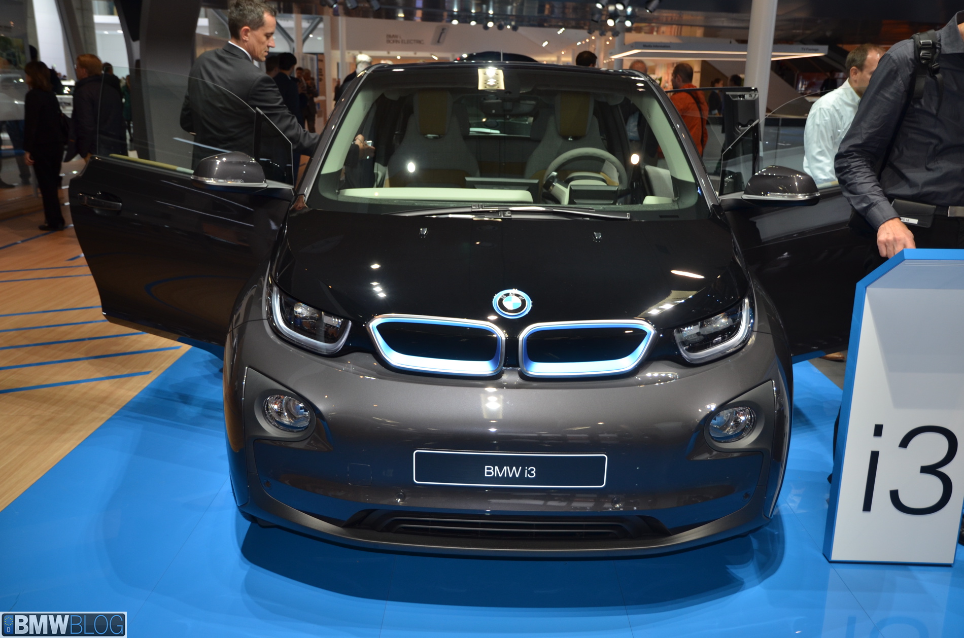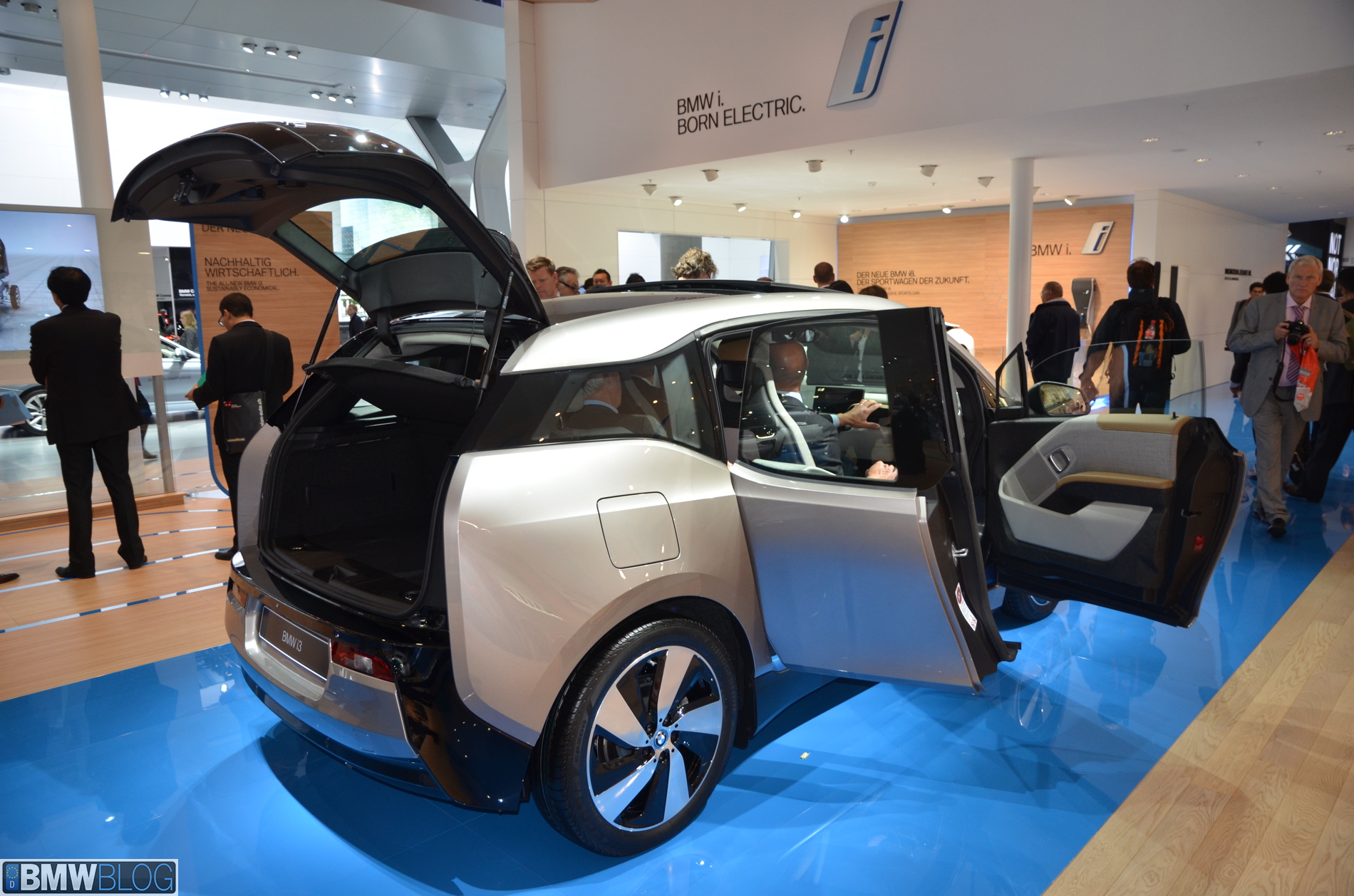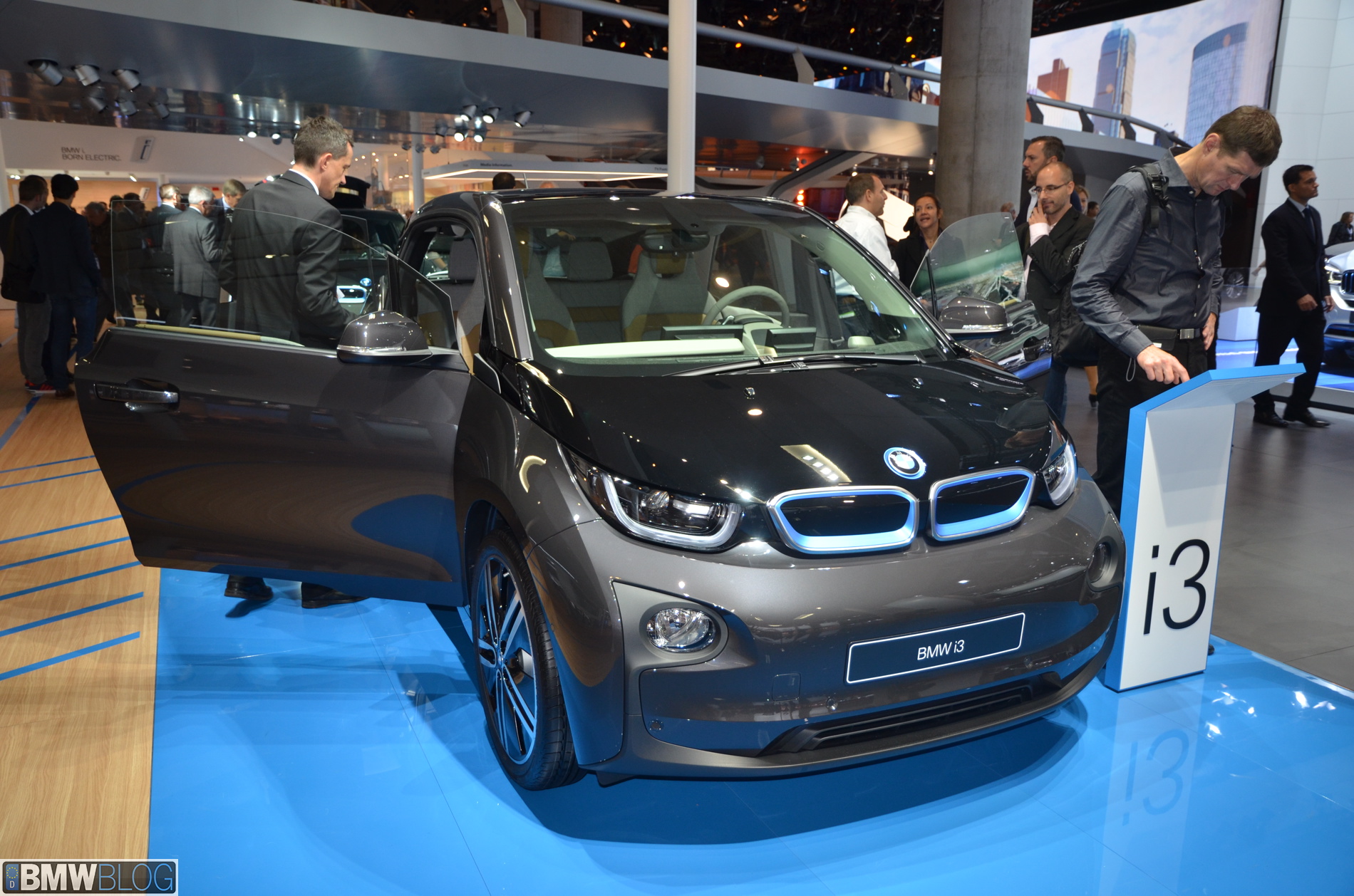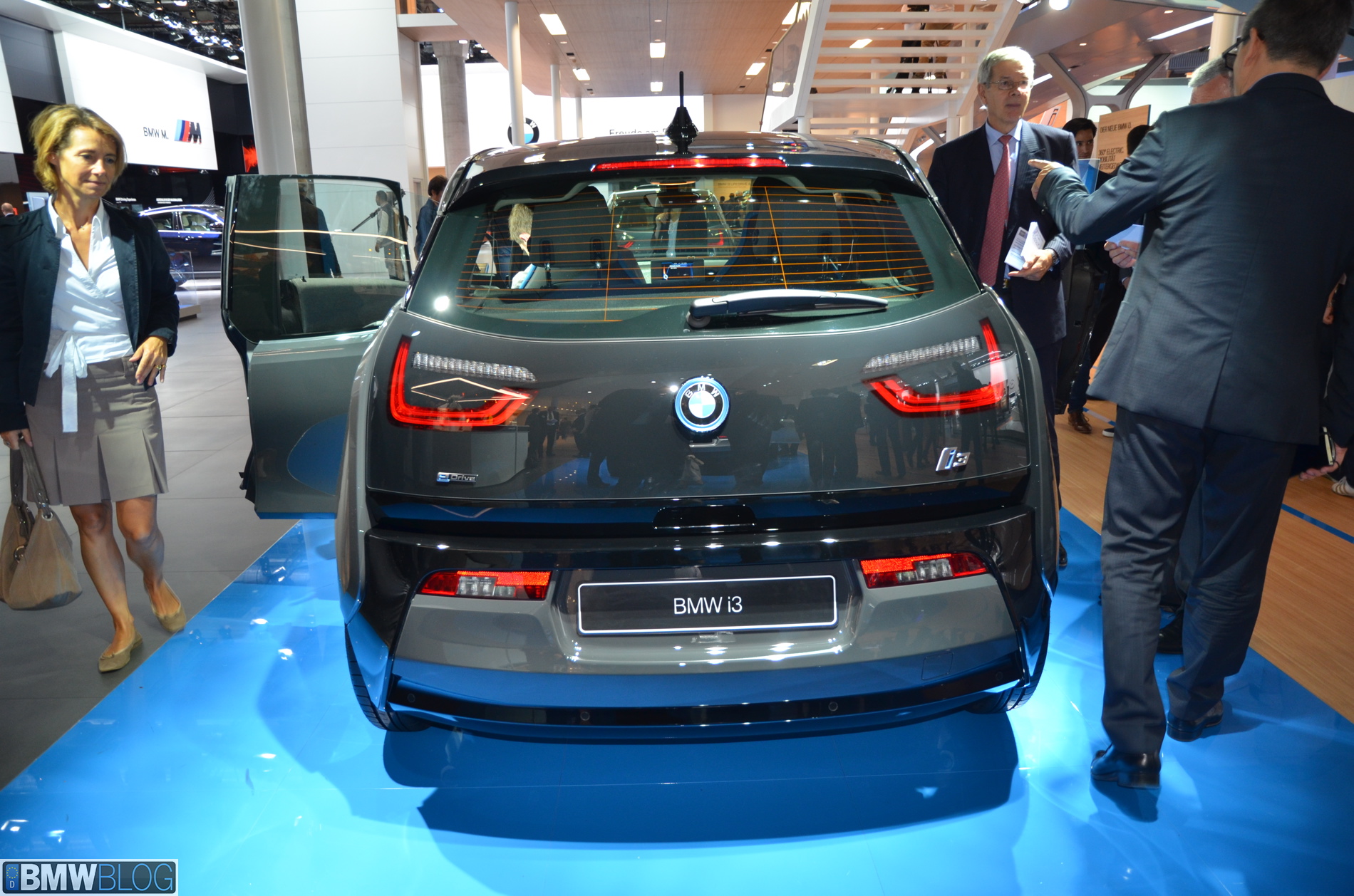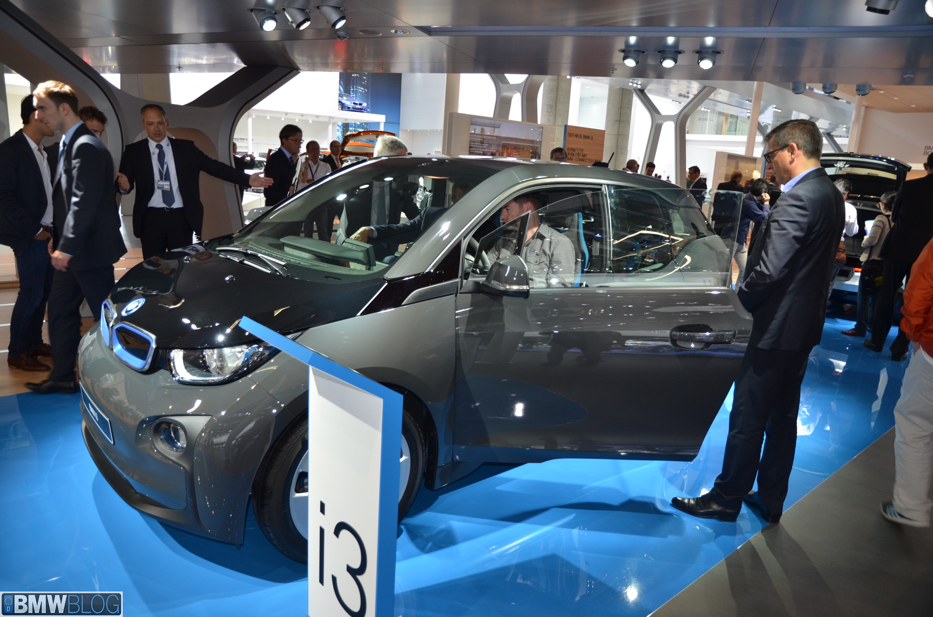 BMW i sub-brand is the main attraction at the BMW hall in Frankfurt. The electric/hybrid sub-brand is delivering their first vehicles, the i3 EV and i8 hybrid sportscar. To show how important the i3 is and to showcase to its customers the wide range of options an entire fleet of BMW i3 models are being displayed, showing the premium electric vehicle in all the possible color combinations.
