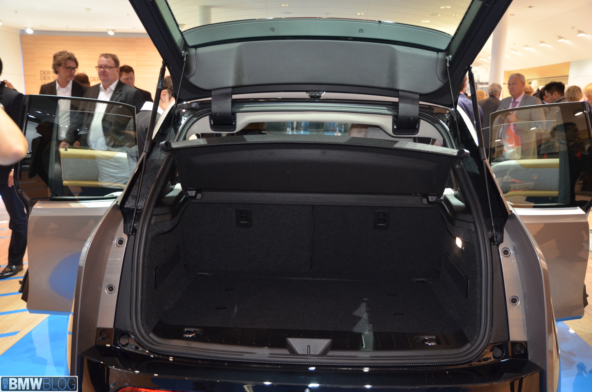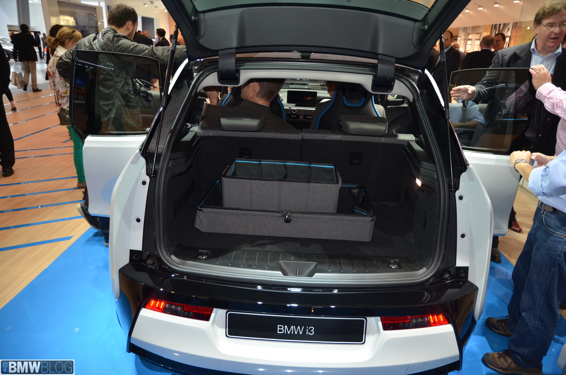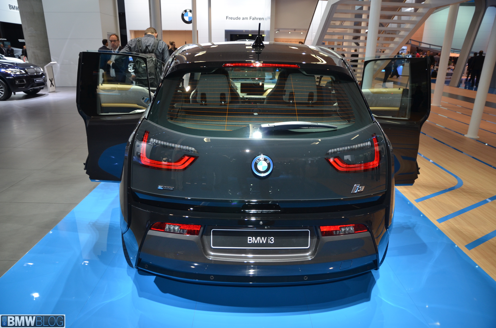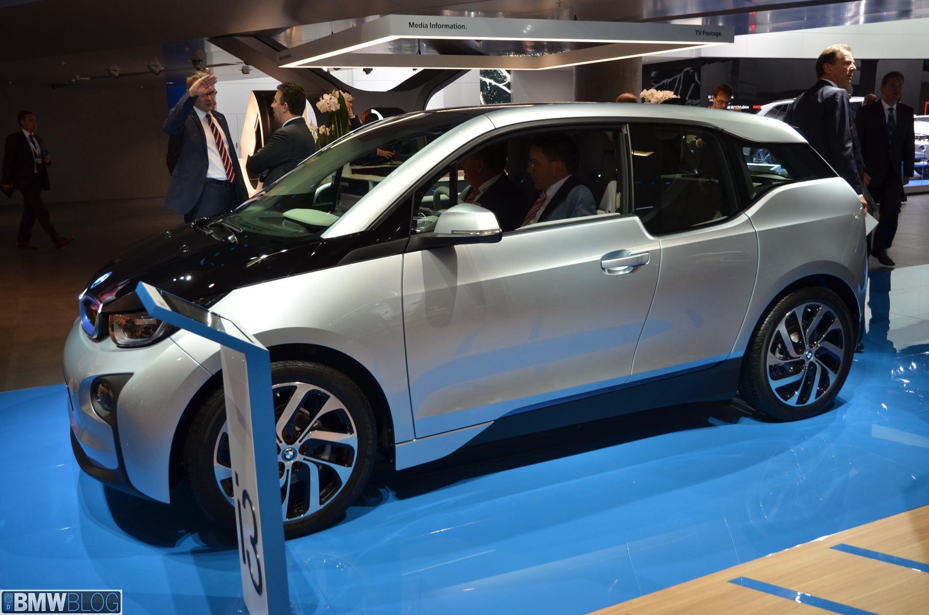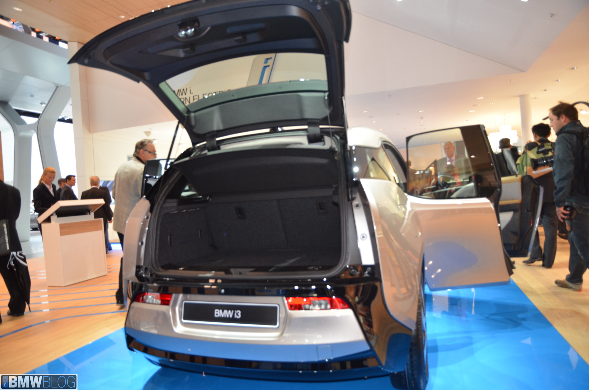 BMW i sub-brand is the main attraction at the BMW hall in Frankfurt. The electric/hybrid sub-brand is delivering their first vehicles, the i3 EV and i8 hybrid sportscar. To show how important the i3 is and to showcase to its customers the wide range of options an entire fleet of BMW i3 models are being displayed, showing the premium electric vehicle in all the possible color combinations.