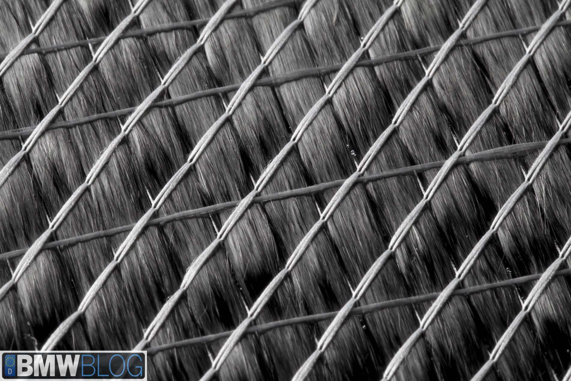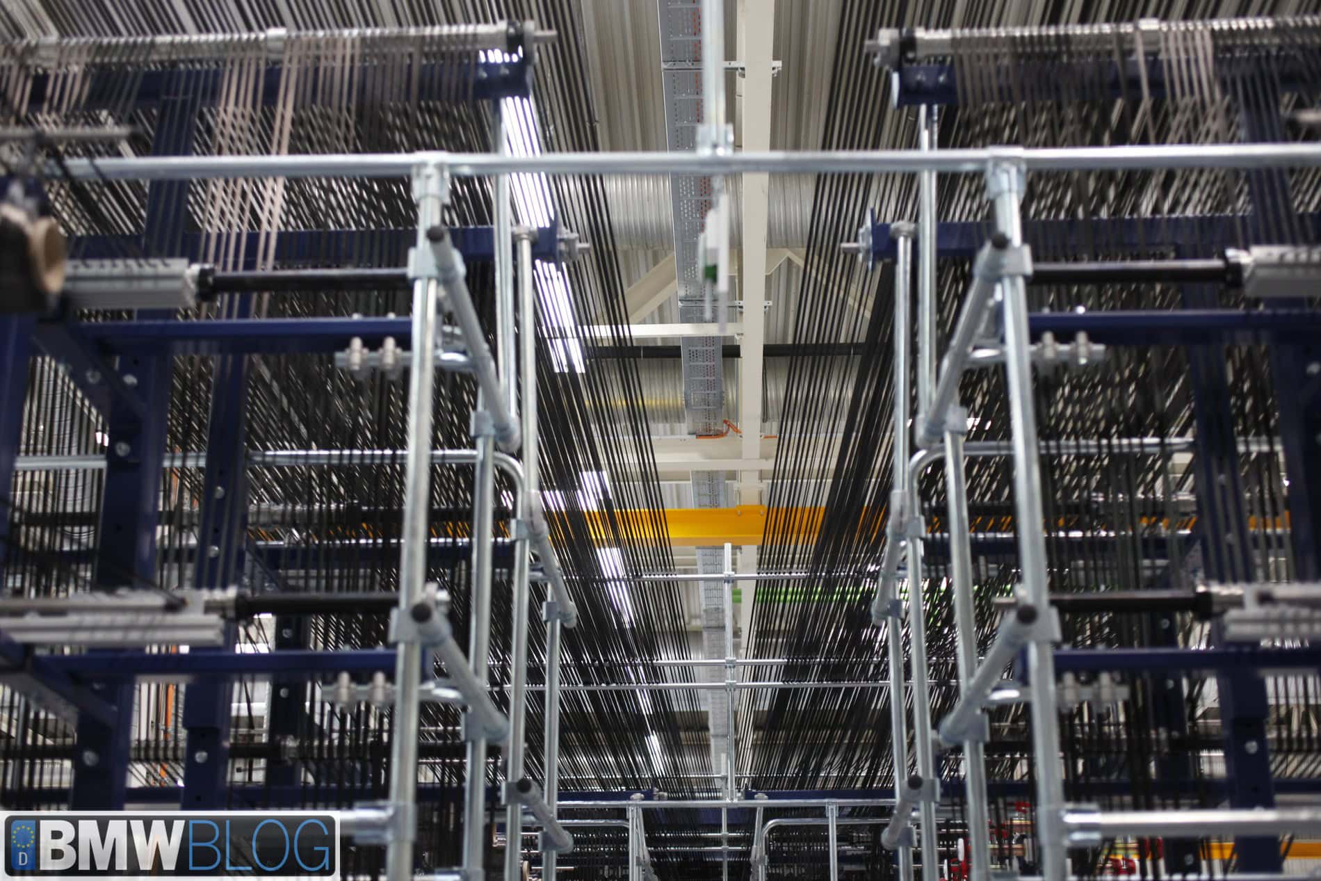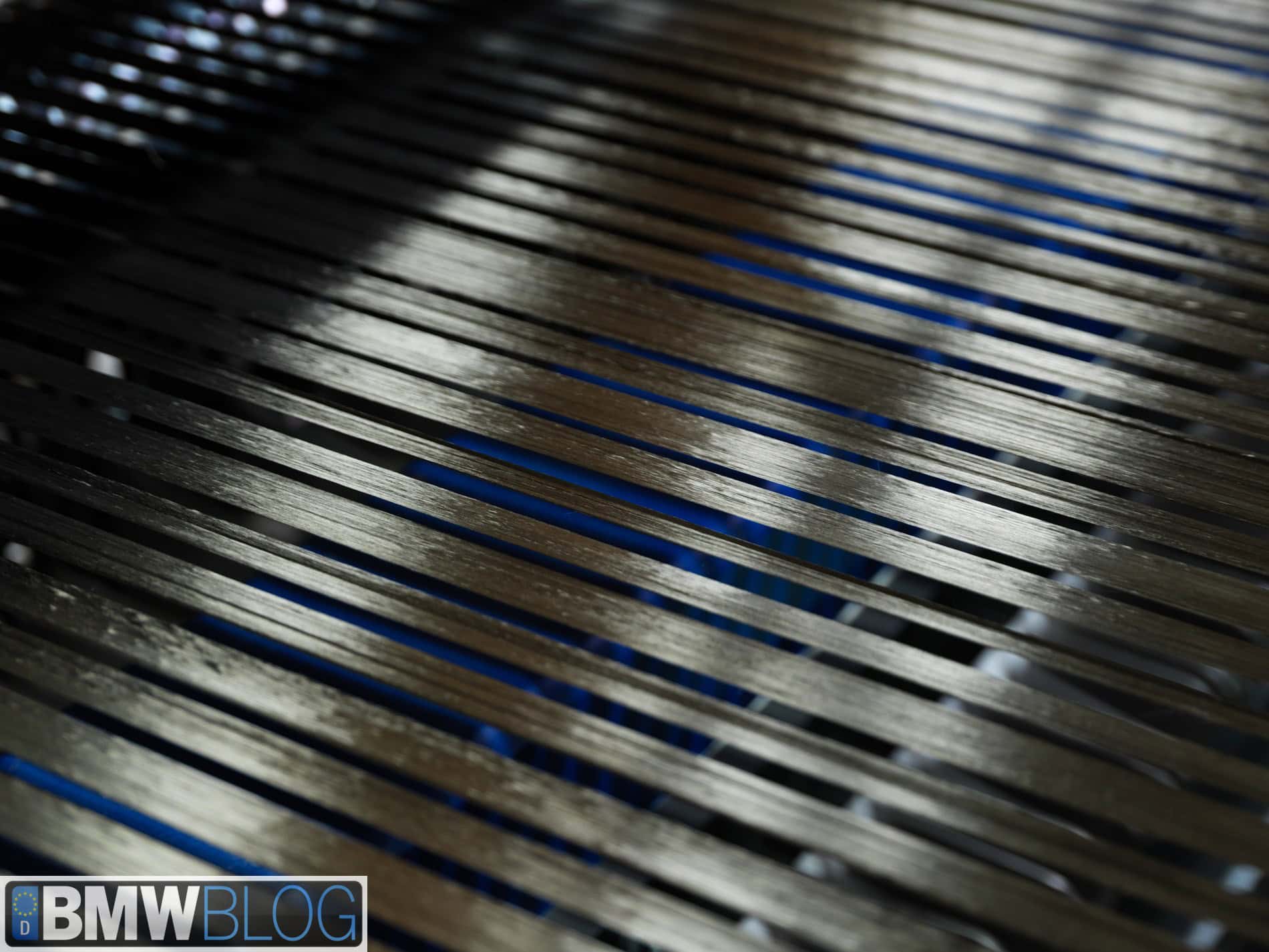 Further, BMW uses proprietary carbon fiber from SGL. They do not use an off-the-shelf product that SGL makes available for sale. And in addition, BMW uses a slightly unusual technique for building the carbon fiber cloth. It is not woven (as can be seen in the close-up of the carbon fiber cloth) but rather is composed of fiber bundles running in the same direction and sewn together. BMWBLOG believes that this is one of the keys to the quick cycle times in the CFRP press. By keeping the cloth strand oriented in a single direction per layer you decrease the time required to flow resin into the cloth.