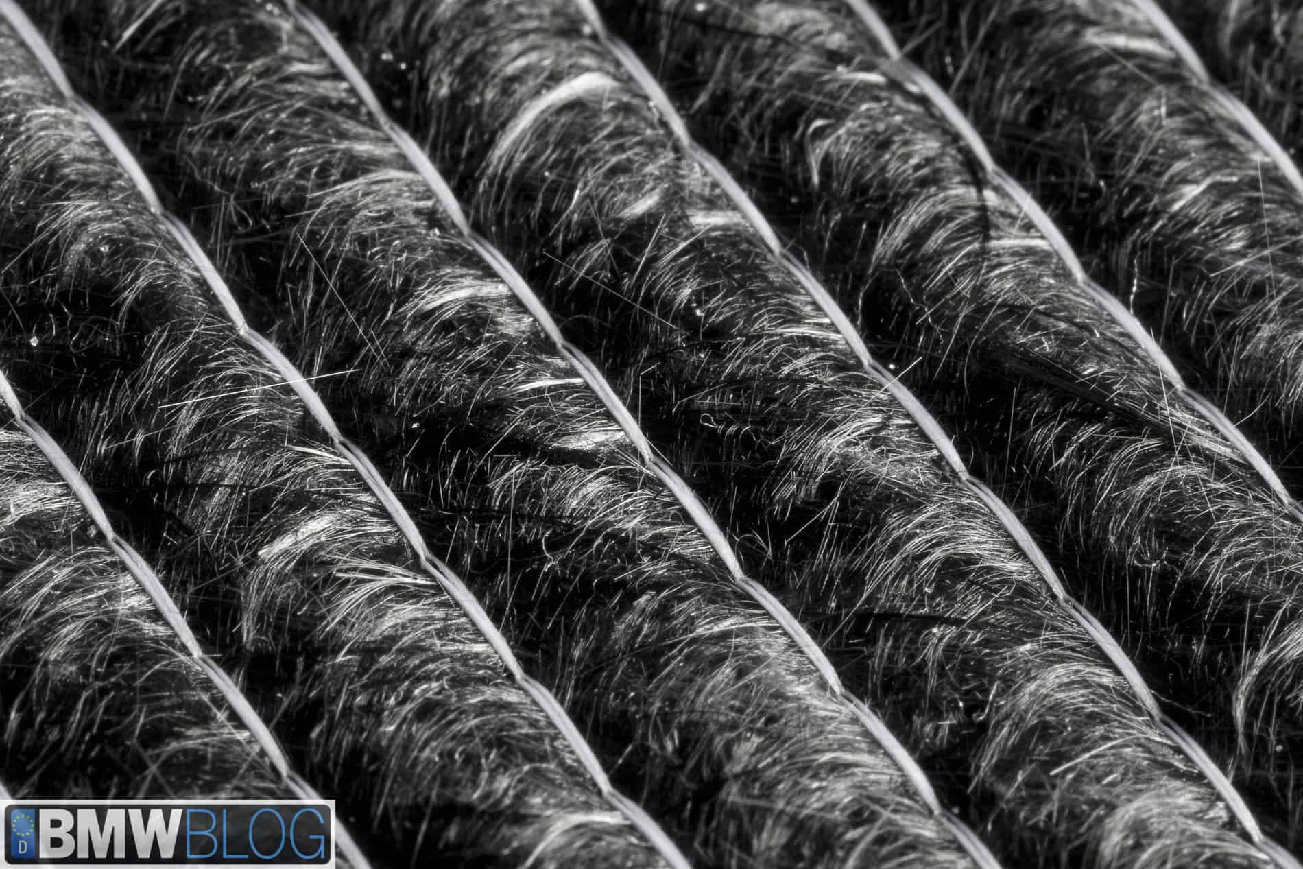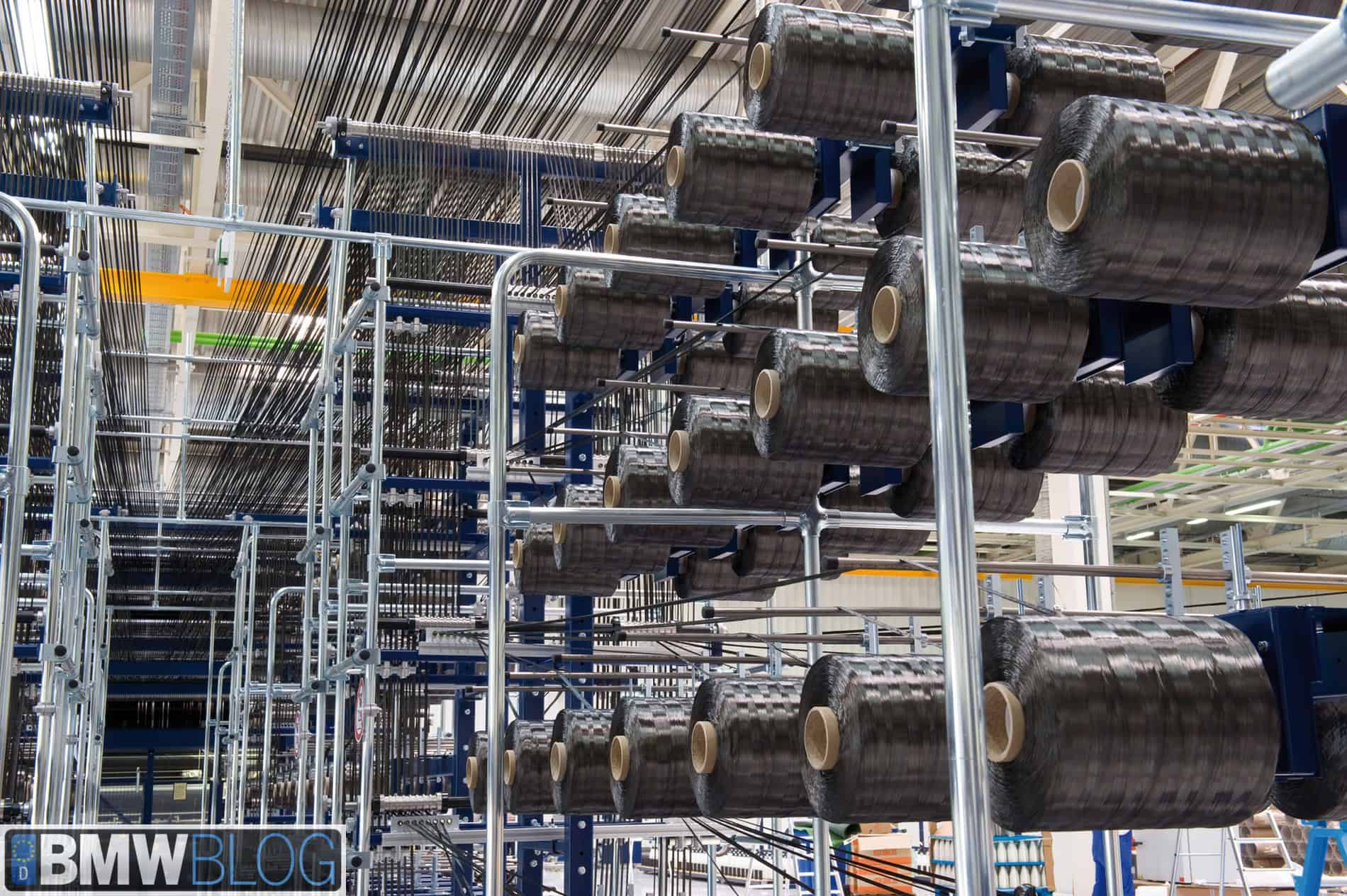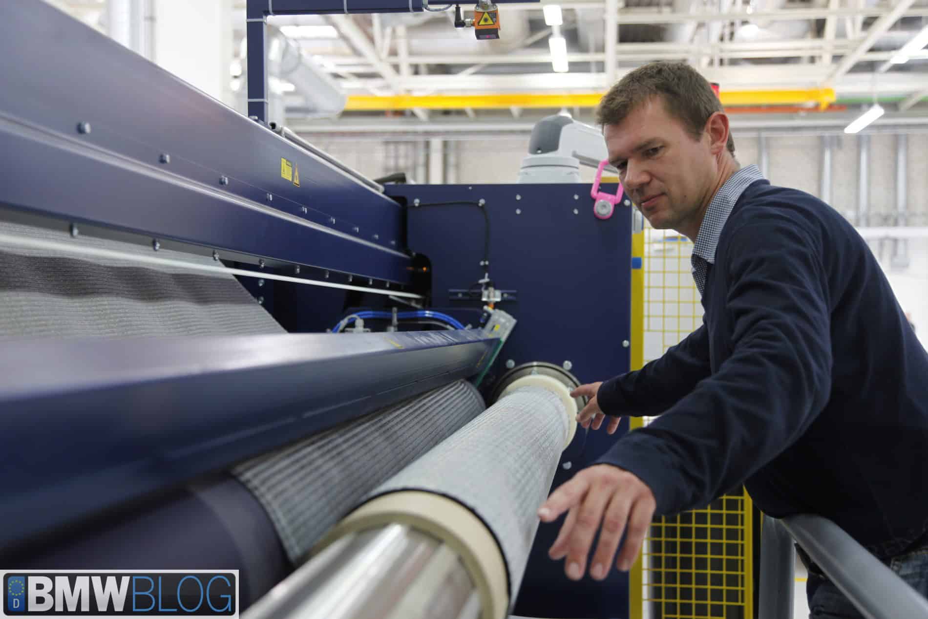 Further, BMW uses proprietary carbon fiber from SGL. They do not use an off-the-shelf product that SGL makes available for sale. And in addition, BMW uses a slightly unusual technique for building the carbon fiber cloth. It is not woven (as can be seen in the close-up of the carbon fiber cloth) but rather is composed of fiber bundles running in the same direction and sewn together. BMWBLOG believes that this is one of the keys to the quick cycle times in the CFRP press. By keeping the cloth strand oriented in a single direction per layer you decrease the time required to flow resin into the cloth.