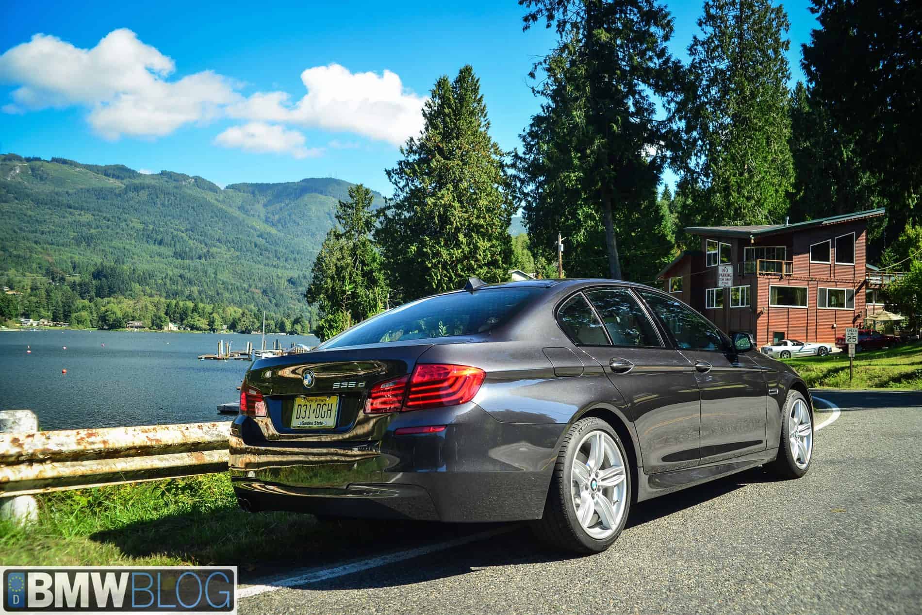 It wouldn’t be until after a morning of giggling and stabbing at the throttle in the M6 that I would depart the elegant Chrysalis Inn in something far more efficient and far more subdued. Loading bags into the massive trunk and with the jab of an index finger the diesel lump out front barely made a murmur as it turned over. Slipping the 8-speed gearbox into D, our Dark Graphite Metallic 2014 BMW 535d M Sport crept out of downtown Bellingham with a final destination at a roadside checkpoint just a few miles shy of the US-Canada border.
