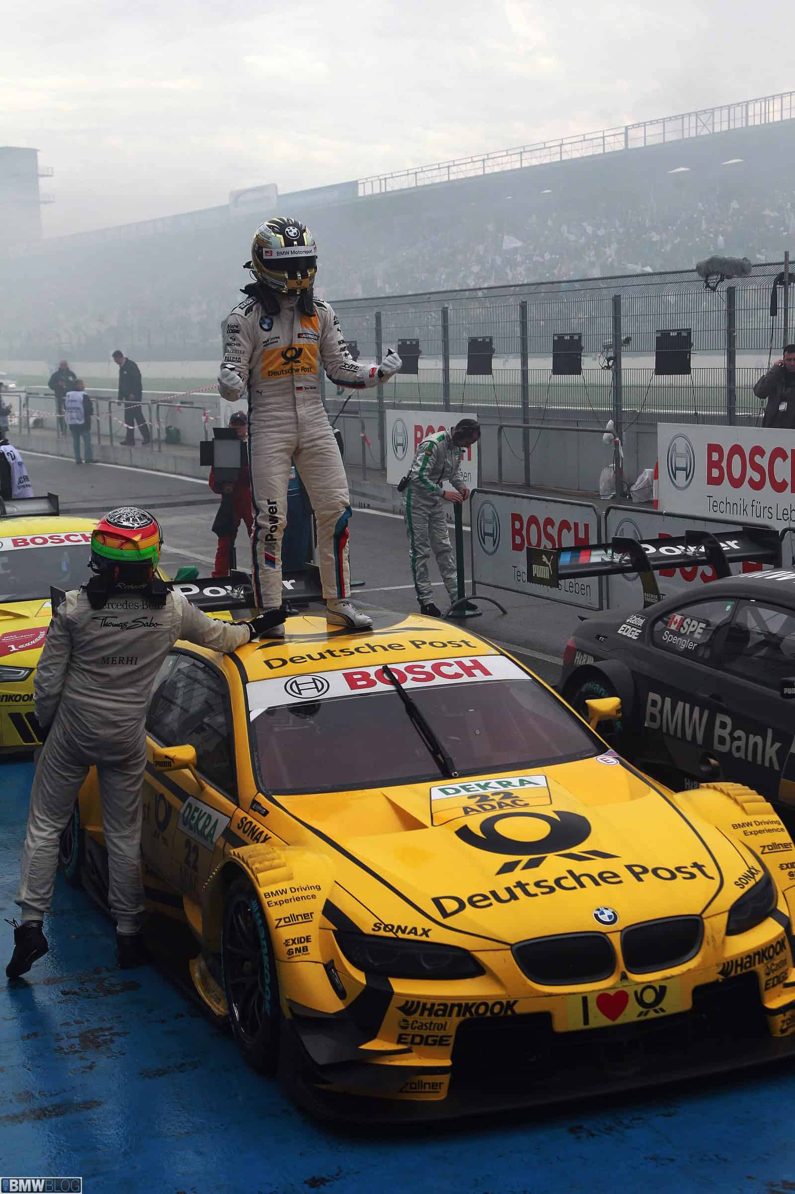 Bruno Spengler (CA) finished third in the BMW Bank M3 DTM to join Glock on the podium. Andy Priaulx (GB, Crowne Plaza Hotels BMW M3 DTM) and Dirk Werner (DE, SAMSUNG BMW M3 DTM) came home sixth and eighth to score valuable points, which ultimately propelled BMW to the top of the Manufacturers’ Championship to successfully defend the title it won on its return to the DTM in 2012. BMW ended the season with 369 points, ahead of Audi with 347. Mercedes finished third on 266 points.