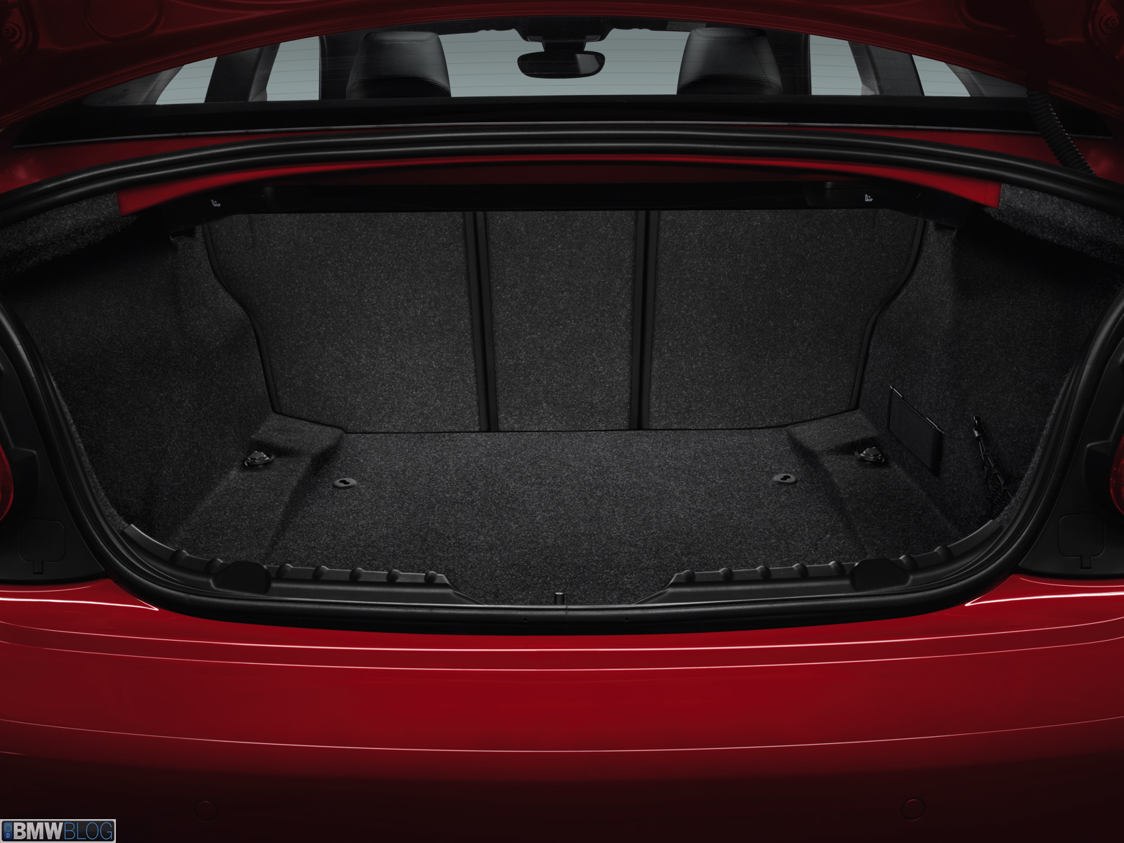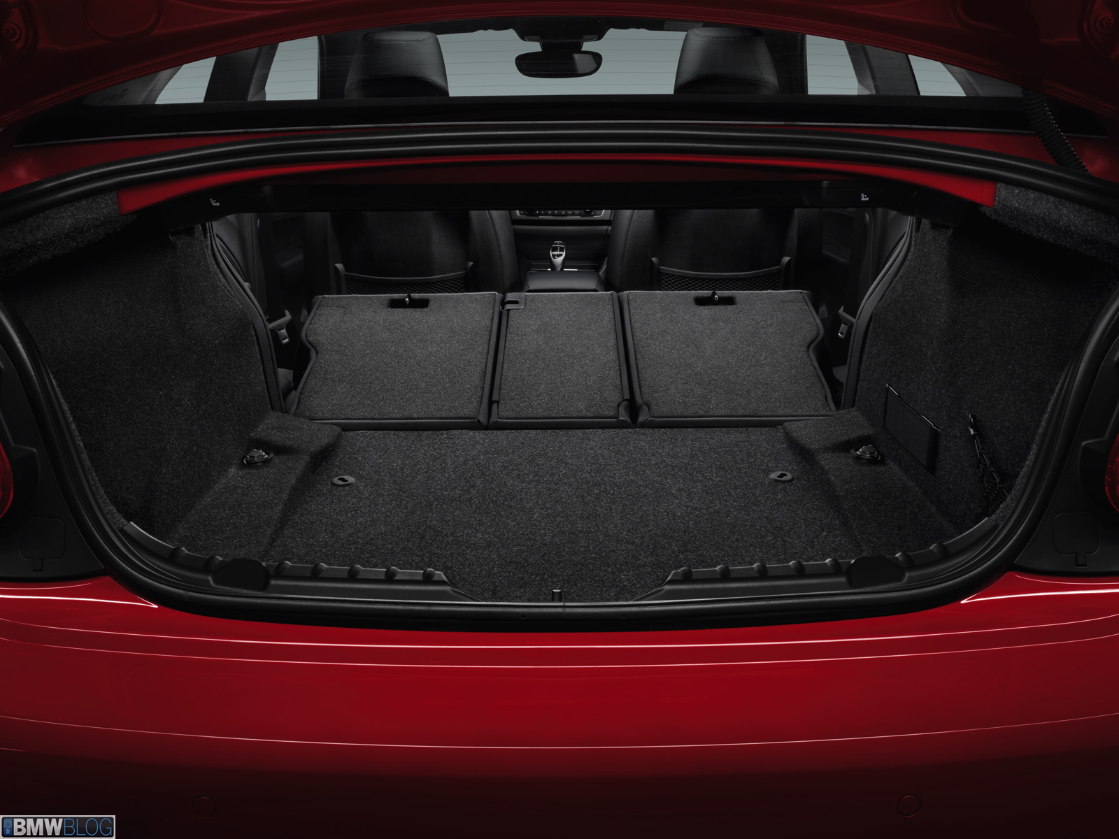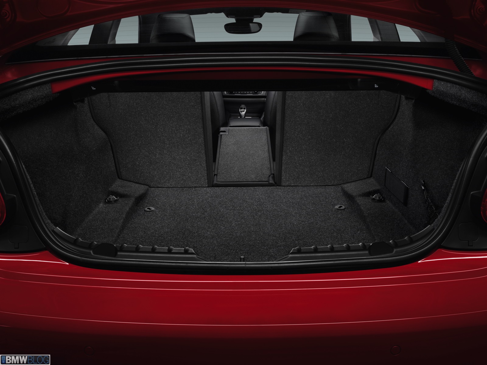 The luggage compartment of the BMW 2 Series Coupe has grown by 0.7 cu.ft. (20 liters) and now offers 13.8 cu.ft. (390 liters) of capacity. The width of the trunk aperture is 1.5 inches (38 mm) greater than that offered by the outgoing Coupe. The standard 60:40 split/folding rear seat bench ensures additional variability when it comes to making maximum use of the car’s load-carrying potential. With large door pockets, a roomy glove compartment, two cup holders in the center console and a storage compartment under the armrest, the BMW 2 Series Coupe also offers increased stowage capacity inside the passenger compartment. The lower section of the door trim offers space for drinks bottles up to one liter in size.