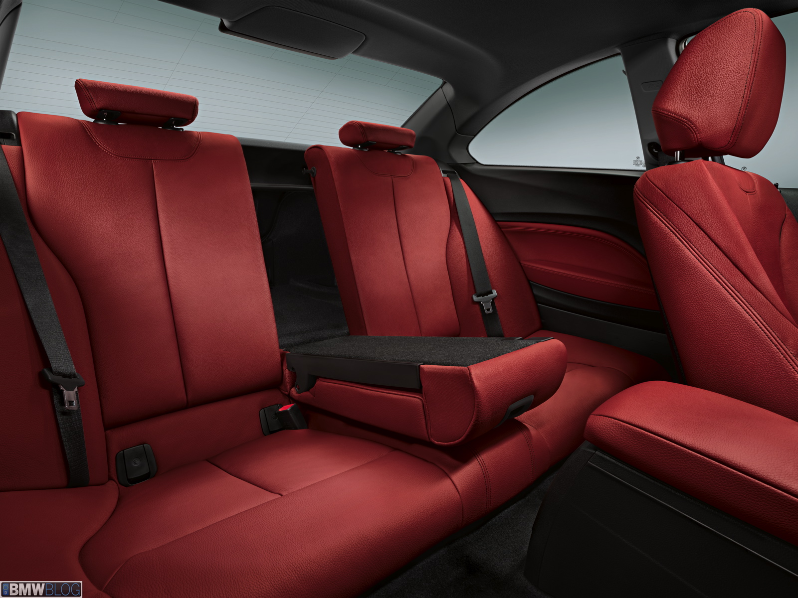 - Newly designed Coupe series with significantly larger dimensions than its predecessor, the BMW 1 Series Coupe; length increased by 72 millimetres to 4,432 millimetres, width by 32 millimetres to 1,774 millimetres, wheelbase by 30 millimetres to 2,690 millimetres, front track width by41 millimetres to 1,521 millimetres and rear track width by 43 millimetres to 1,556 millimetres; improved interior space, including 19 millimetres of extra headroom in the front and 21 millimetres of additional legroom in the rear compartment; boot capacity increased by 20 litres to 390 litres; rear seat backrests split into two or, as an option, folding 40 : 20 : 40; optimised aerodynamic details for an improved Cd over both its predecessor and the BMW 1 Series of 0.29 (BMW 220i Coupe).