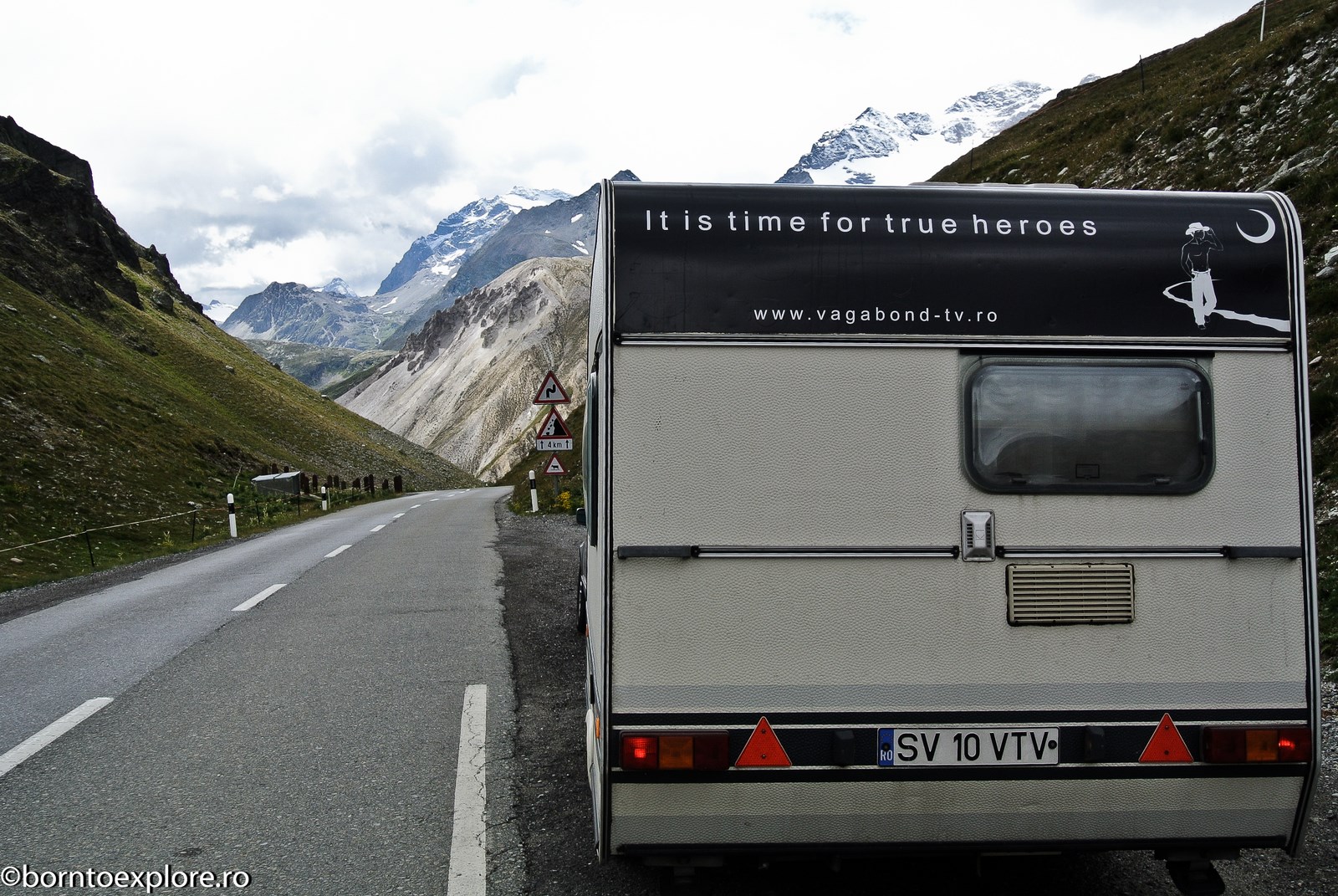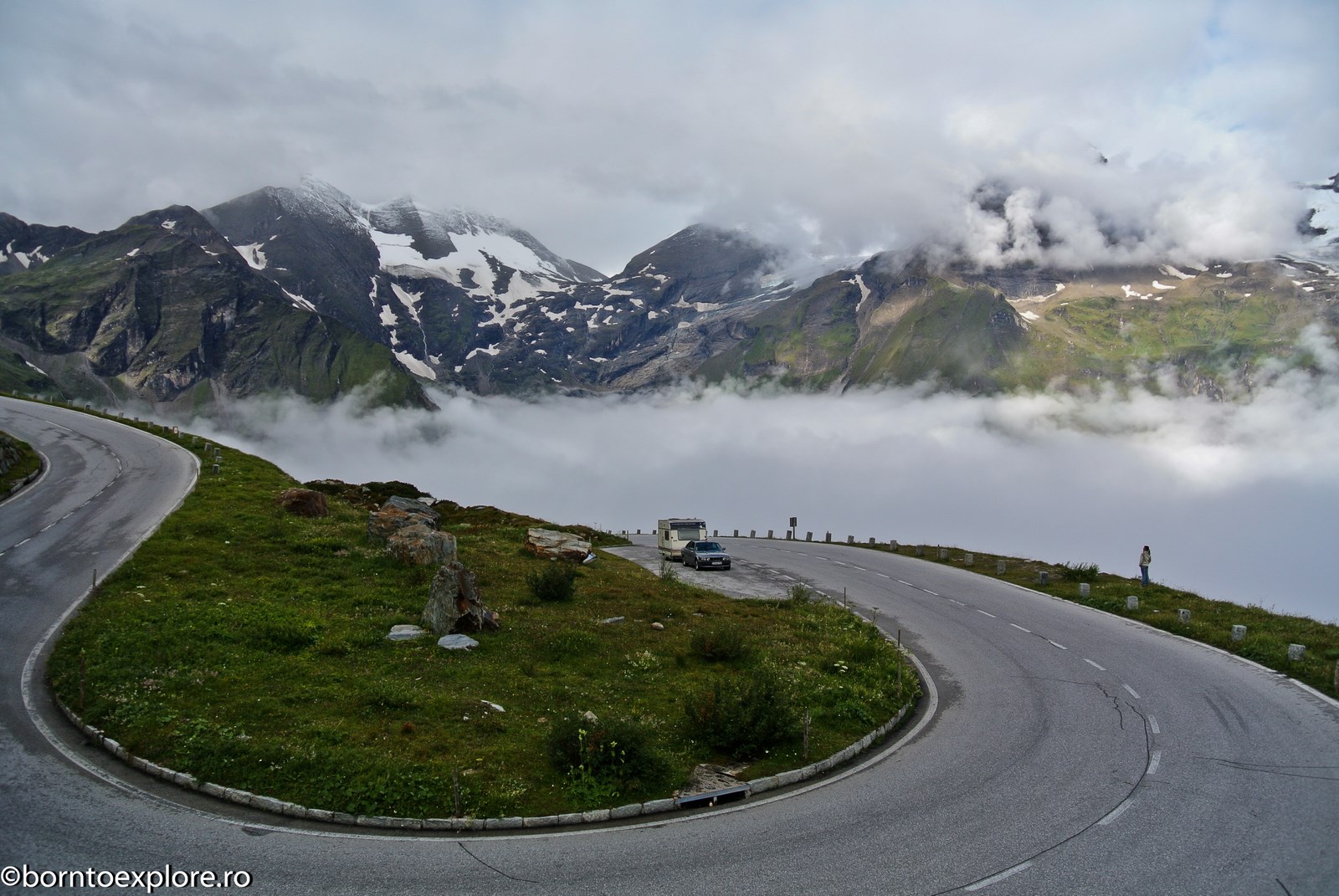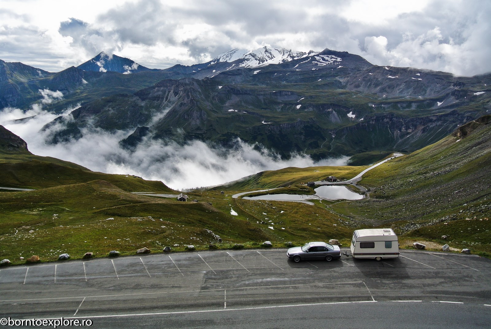 Stelvio in Italy is the most impressive of all and the most difficult to access with a caravan. The first time I arrived here was during the night, on a wet and foggy weather and was really a challenge to climb to the top, where it was snowing. However, extremely tight curves don’t allow you to drive very fast and steering is somewhat rhythmical and predictable. Grossglockner in Austria is a perfect example of well done marketing. It is the only one of all 14 passes we passed through that has a fee of 33 euro and once you get past the barrier you enter a national park, which is absolutely amazing. You can see marmots, enjoy a walk on the glacier where you can observe the effects of global warming or you can simply stop at any viewpoint to enjoy a coffee and admire the scenery. It is a haven for bikers and is perfectly normal, because the road has perfectly steeped curves, and it practically invites you to test your piloting skills.