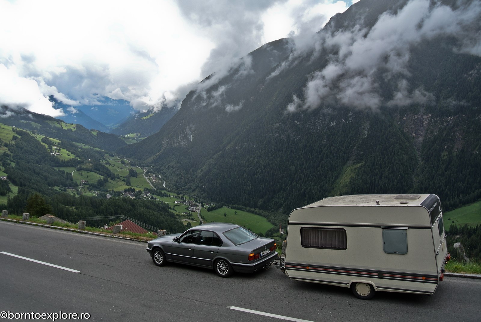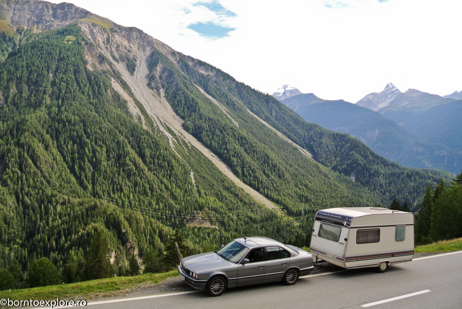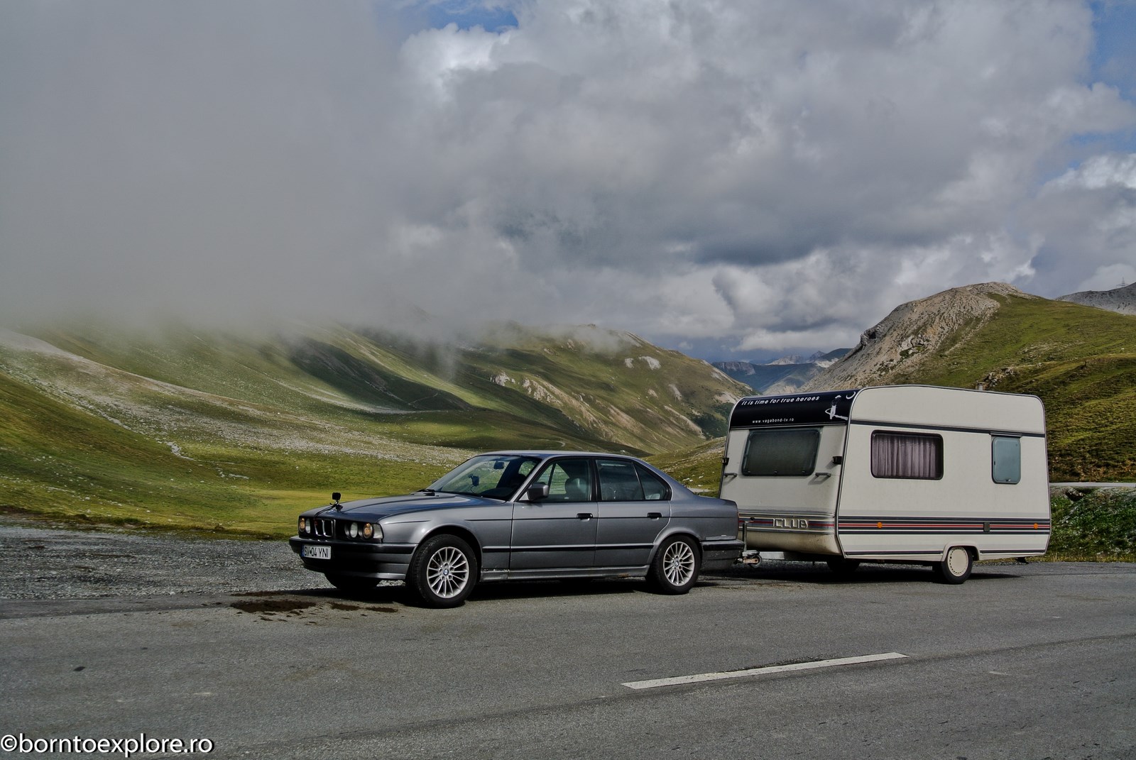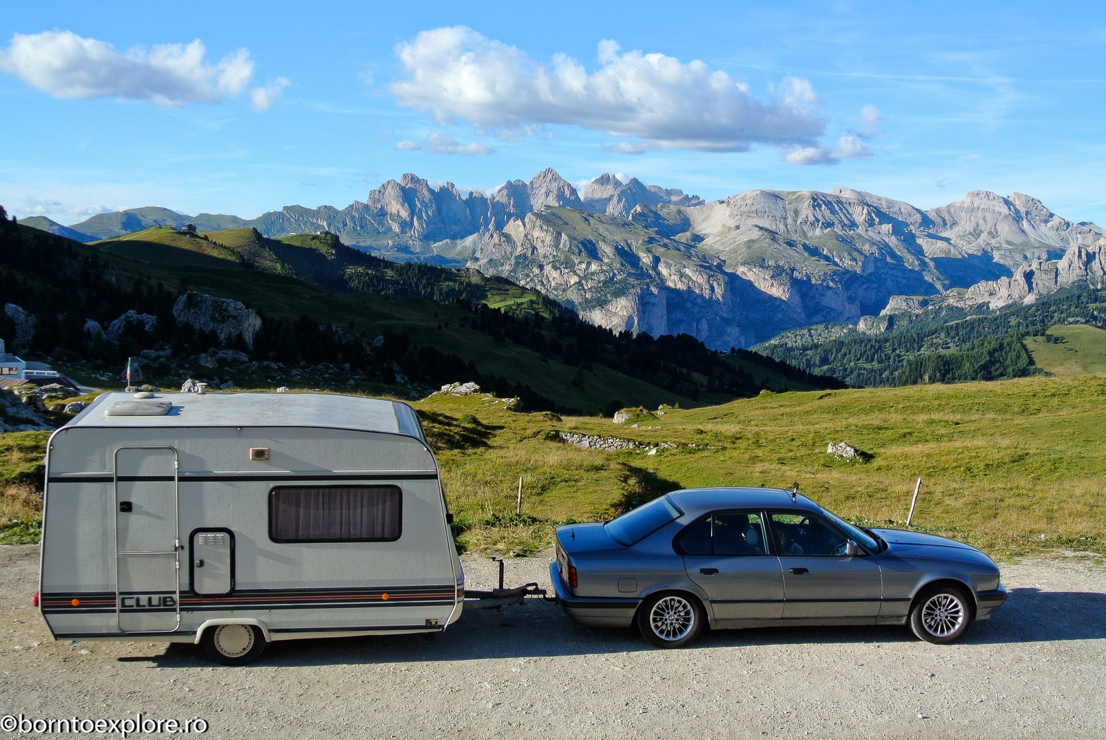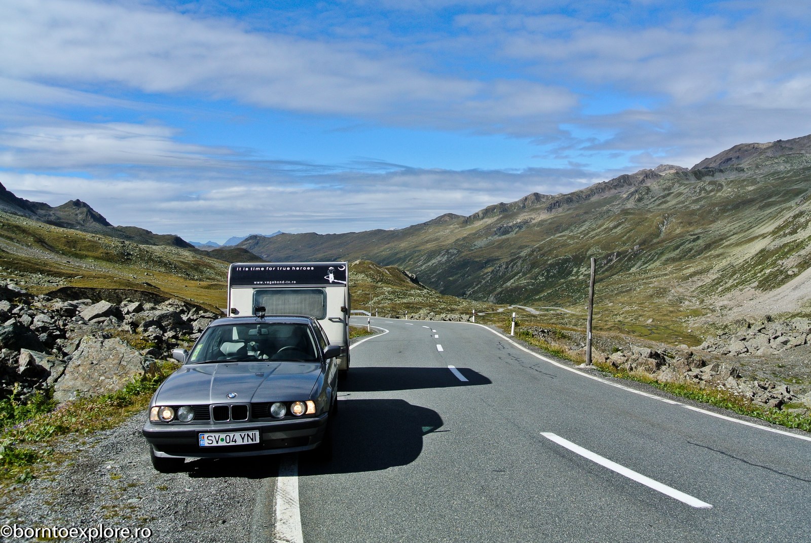 Perhaps you are wondering how the experience was as a driver and which was the most beautiful step. I’ll start by mentioning that I am a fan of gas engines and that although this route is accessible to any car, towing a caravan can make the difference between a very pleasant experience, in which you always have the taste of freedom and a terrible one. There are many hairpin curves and steep slopes and since I stopped many times uphill, sometimes just for taking pictures, I felt how important it is to have 192 horse power that pull stronger, if only encouraged. An inappropriate engine might have stirred the whole thing, but it would have been stuck at shifting from bottom gear into the higher gear, all in a roar of overspeed and clutch smell. The old E34 left each time without any problem, climbing most of the passes in second gear without ever exceeding 3500 rpm, even in the most difficult sectors. This is what the whole experience was like, equal to a pleasant stroll along the most beautiful roads of Europe.