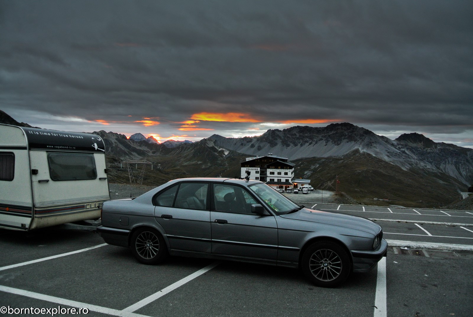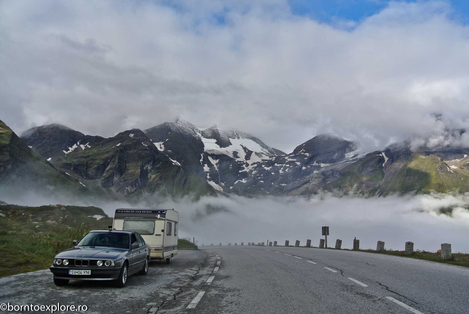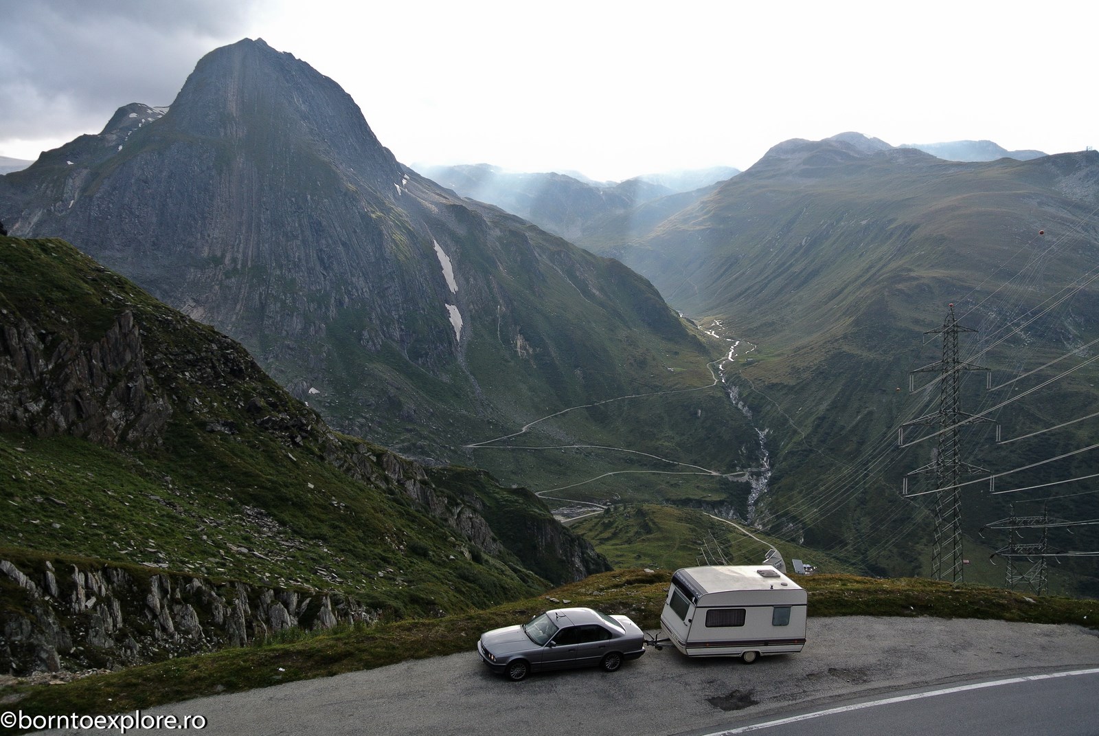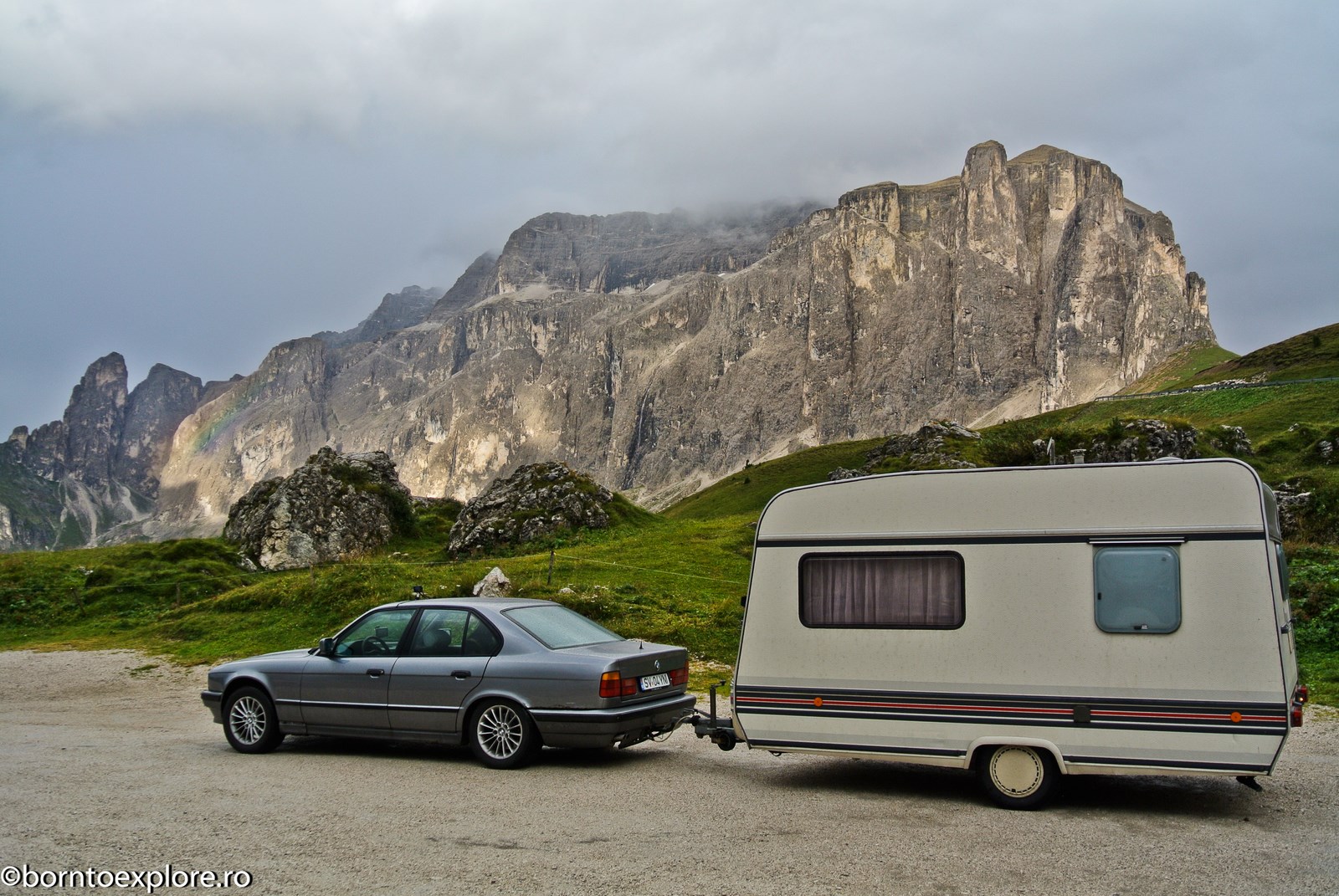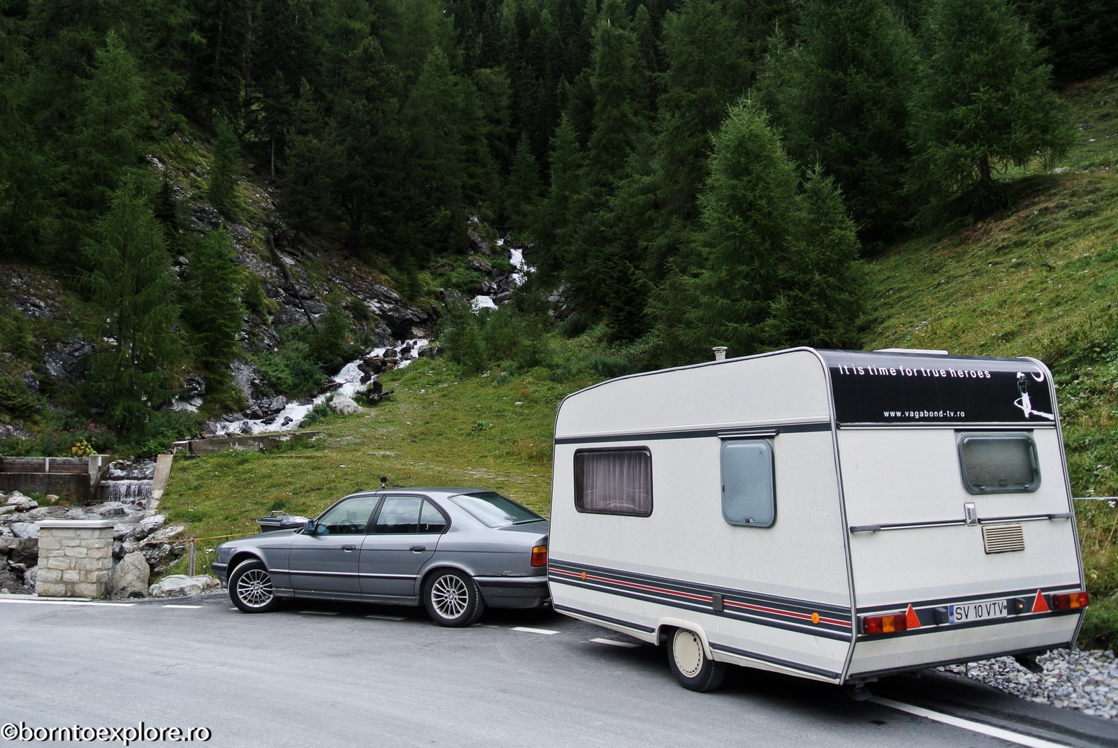 Perhaps you are wondering how the experience was as a driver and which was the most beautiful step. I’ll start by mentioning that I am a fan of gas engines and that although this route is accessible to any car, towing a caravan can make the difference between a very pleasant experience, in which you always have the taste of freedom and a terrible one. There are many hairpin curves and steep slopes and since I stopped many times uphill, sometimes just for taking pictures, I felt how important it is to have 192 horse power that pull stronger, if only encouraged. An inappropriate engine might have stirred the whole thing, but it would have been stuck at shifting from bottom gear into the higher gear, all in a roar of overspeed and clutch smell. The old E34 left each time without any problem, climbing most of the passes in second gear without ever exceeding 3500 rpm, even in the most difficult sectors. This is what the whole experience was like, equal to a pleasant stroll along the most beautiful roads of Europe.