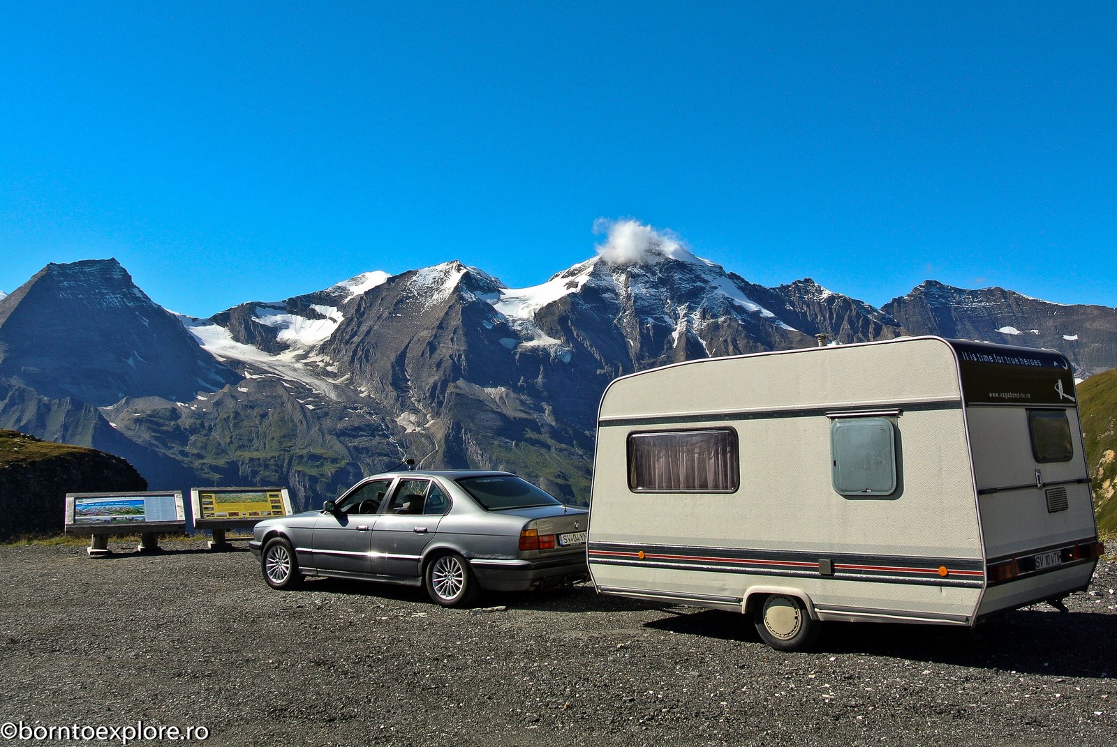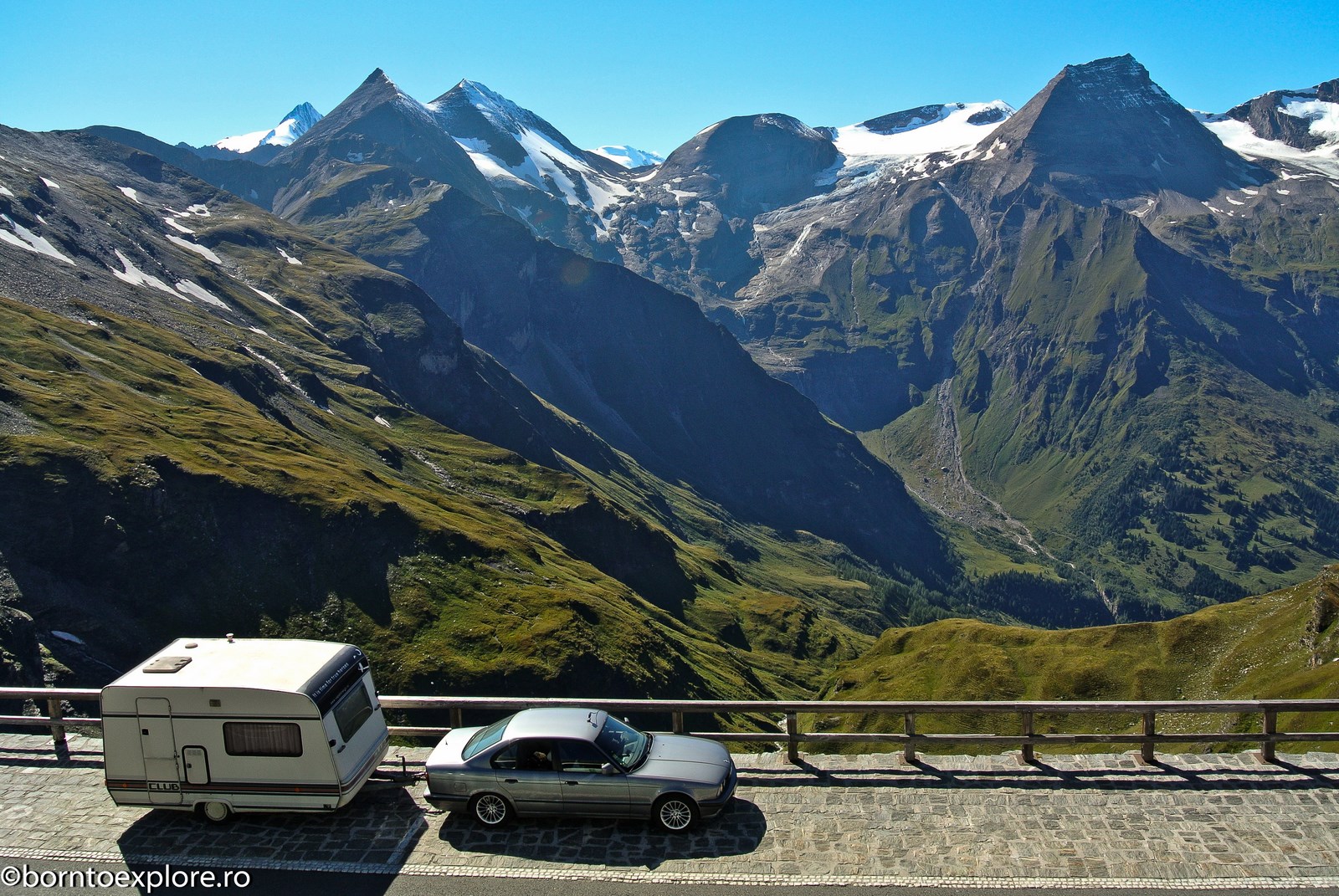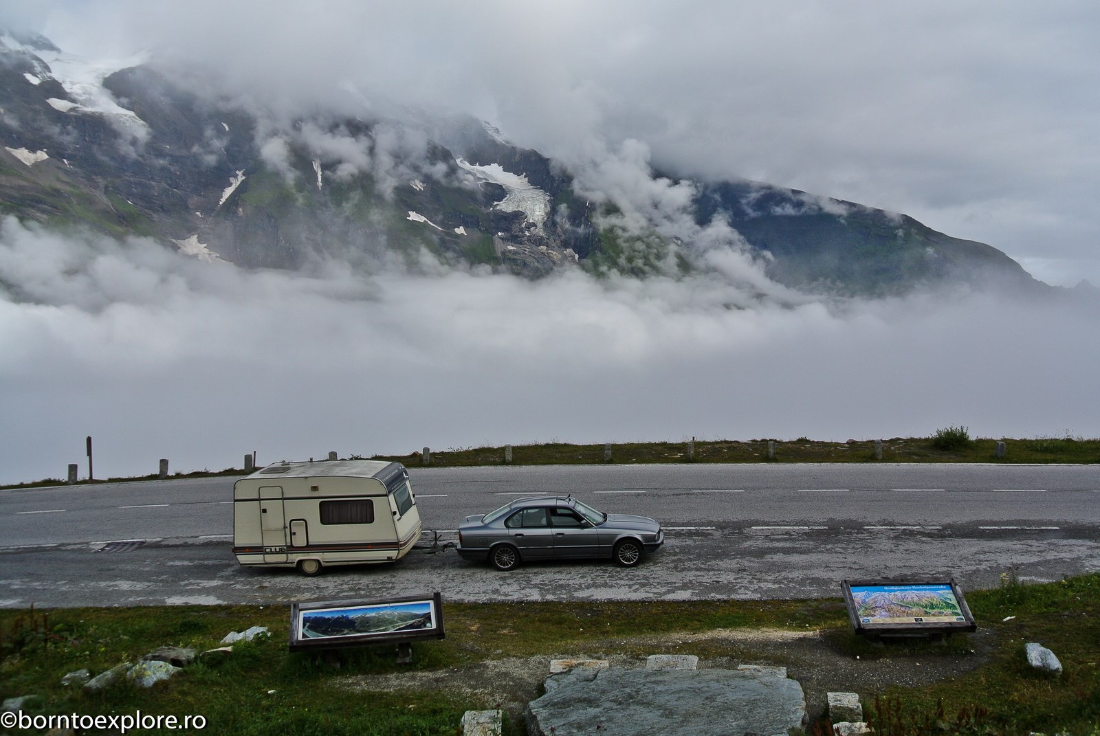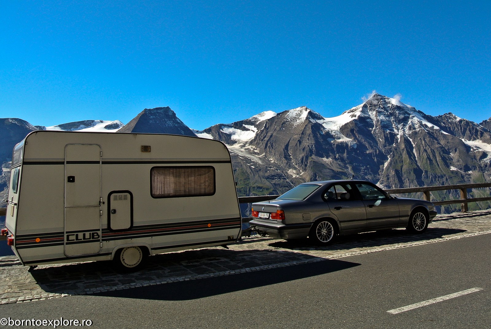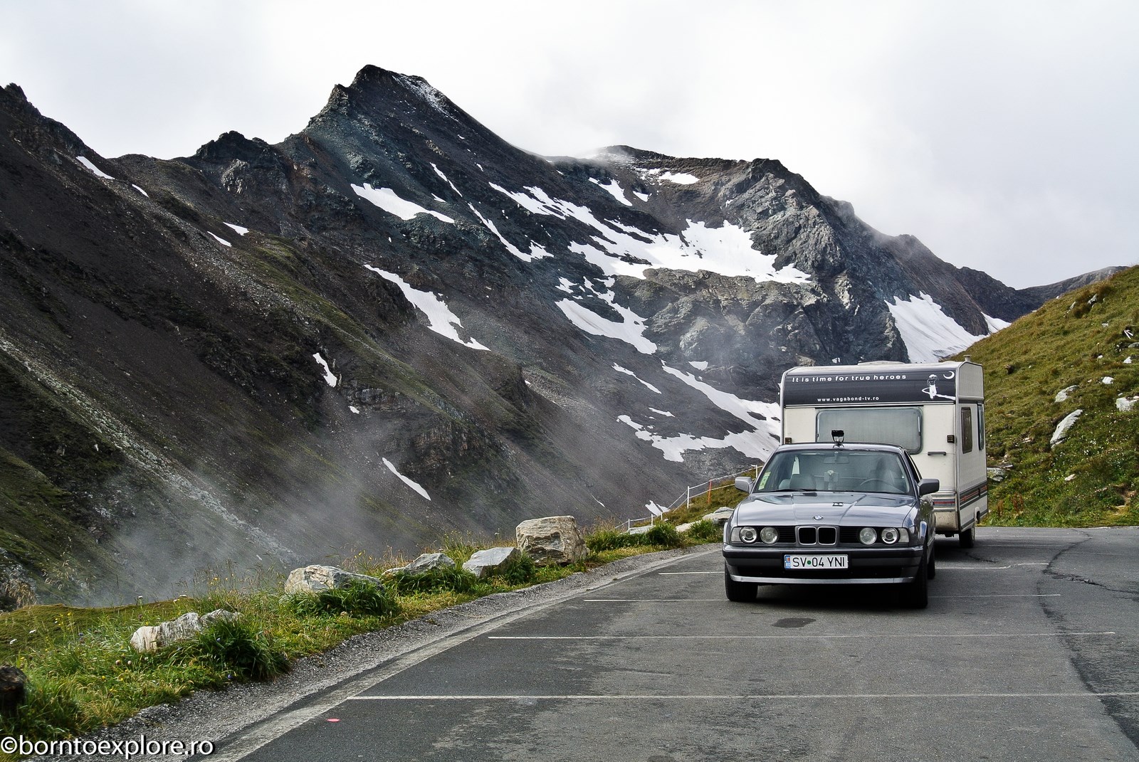 Perhaps you are wondering how the experience was as a driver and which was the most beautiful step. I’ll start by mentioning that I am a fan of gas engines and that although this route is accessible to any car, towing a caravan can make the difference between a very pleasant experience, in which you always have the taste of freedom and a terrible one. There are many hairpin curves and steep slopes and since I stopped many times uphill, sometimes just for taking pictures, I felt how important it is to have 192 horse power that pull stronger, if only encouraged. An inappropriate engine might have stirred the whole thing, but it would have been stuck at shifting from bottom gear into the higher gear, all in a roar of overspeed and clutch smell. The old E34 left each time without any problem, climbing most of the passes in second gear without ever exceeding 3500 rpm, even in the most difficult sectors. This is what the whole experience was like, equal to a pleasant stroll along the most beautiful roads of Europe.