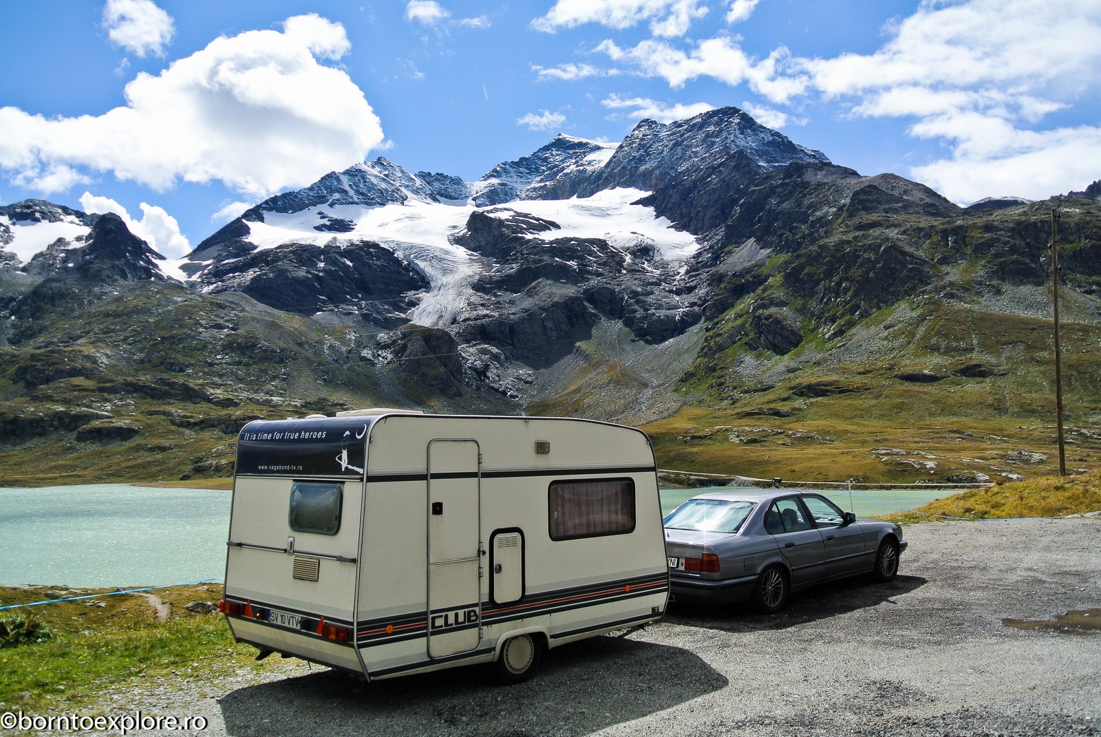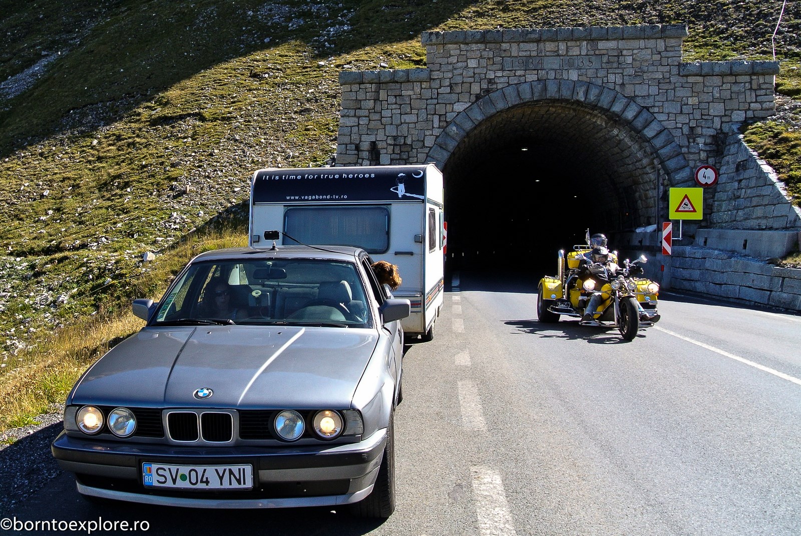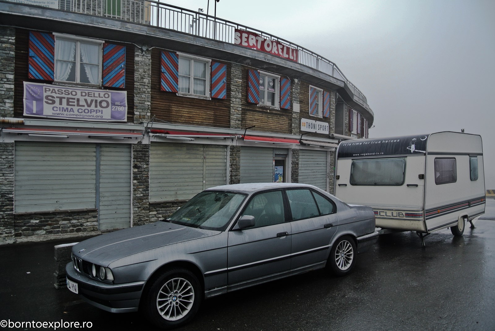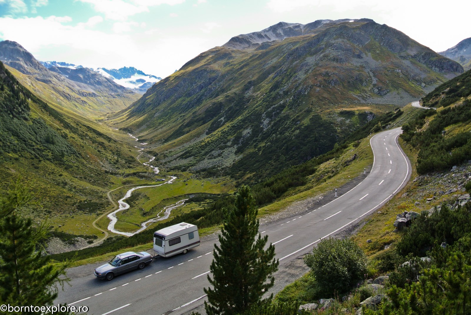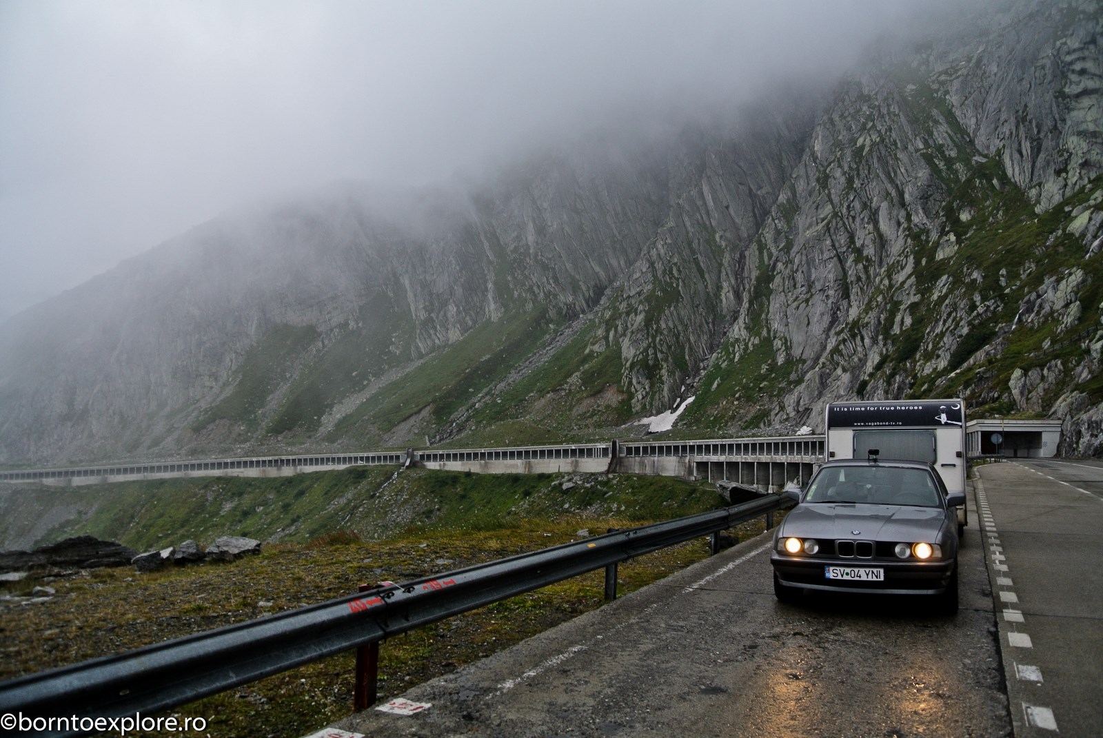 Perhaps you are wondering how the experience was as a driver and which was the most beautiful step. I’ll start by mentioning that I am a fan of gas engines and that although this route is accessible to any car, towing a caravan can make the difference between a very pleasant experience, in which you always have the taste of freedom and a terrible one. There are many hairpin curves and steep slopes and since I stopped many times uphill, sometimes just for taking pictures, I felt how important it is to have 192 horse power that pull stronger, if only encouraged. An inappropriate engine might have stirred the whole thing, but it would have been stuck at shifting from bottom gear into the higher gear, all in a roar of overspeed and clutch smell. The old E34 left each time without any problem, climbing most of the passes in second gear without ever exceeding 3500 rpm, even in the most difficult sectors. This is what the whole experience was like, equal to a pleasant stroll along the most beautiful roads of Europe.
