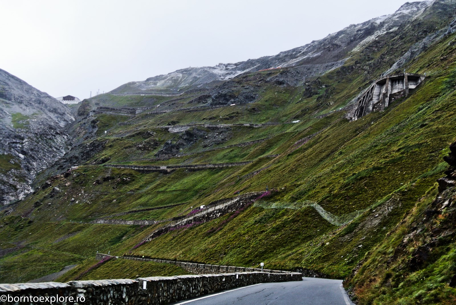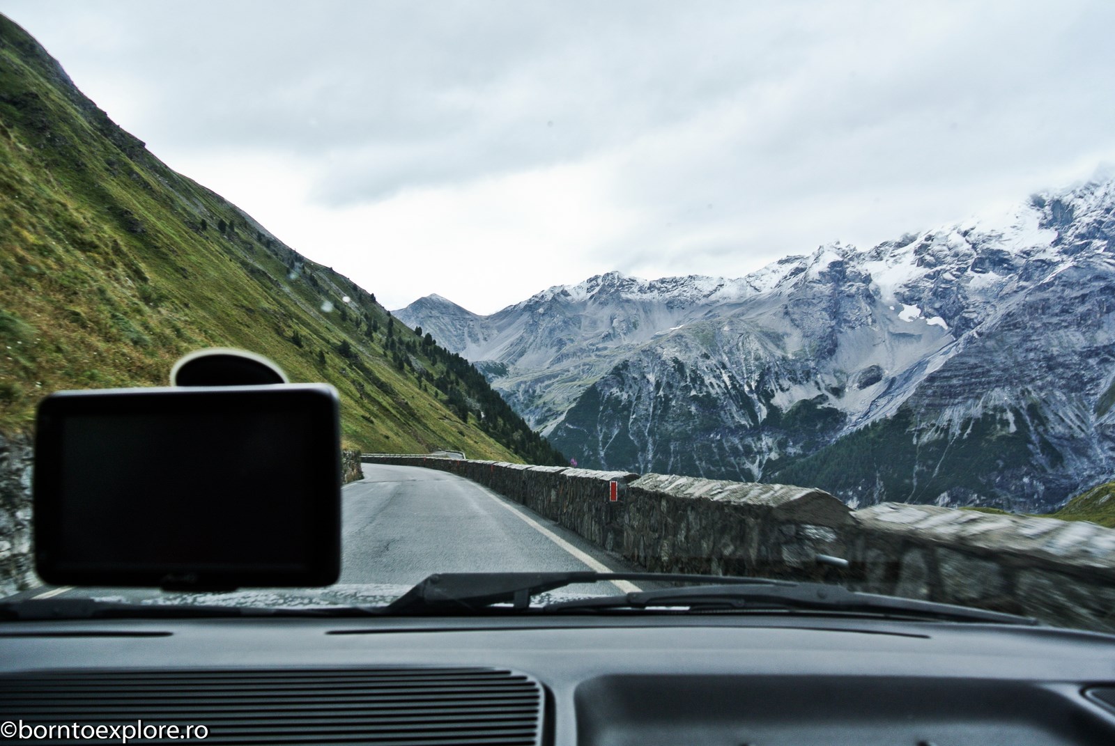 There were some exceptions, a few times when I left Ruxandra and Jinx with the caravan on the top of the pass, and I descended all the circuit, all the curves only to climb again, this time in a sporty way, trying to use everything my instructor, Claudiu David, taught me. I tried this experience on Gotthard (the old road), Stelvio and Grossglockner, the three paths that I’ve chosen to occupy the podium of the most beautiful passes in Europe. Gotthard Pass, in Switzerland, has a portion with perfect asphalt but the most interesting part I found was the old road which, although cobbled is in excellent condition, without any unevenness and it feels fabulous to drive.