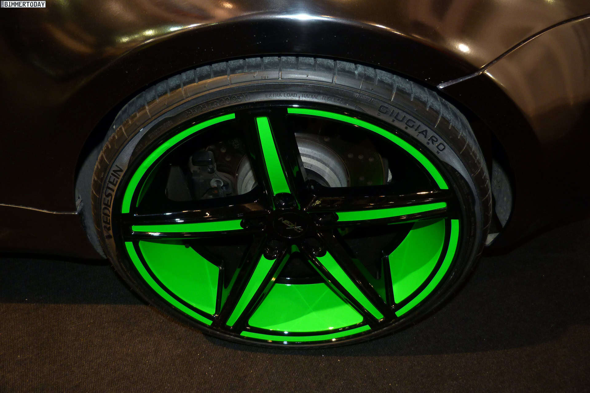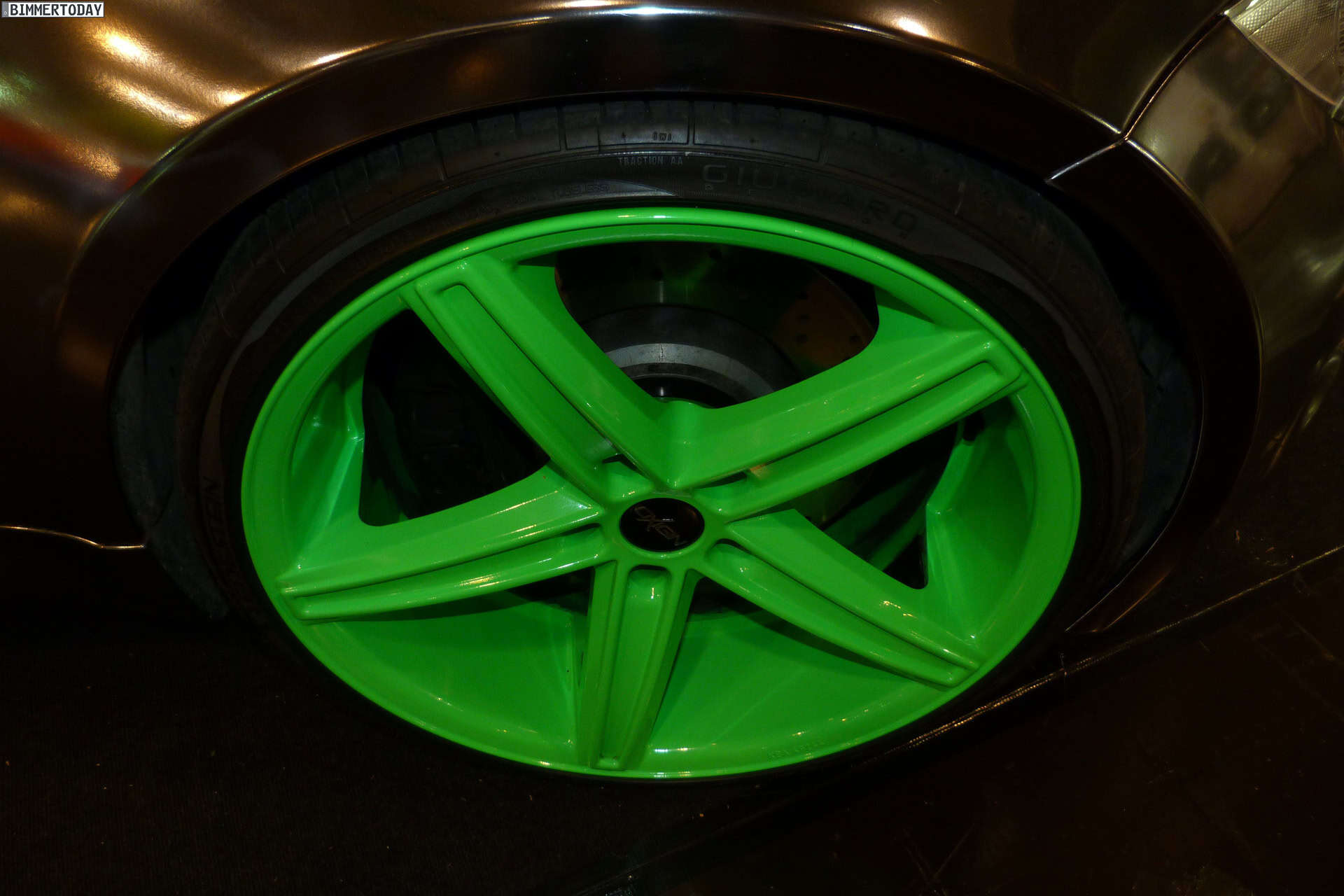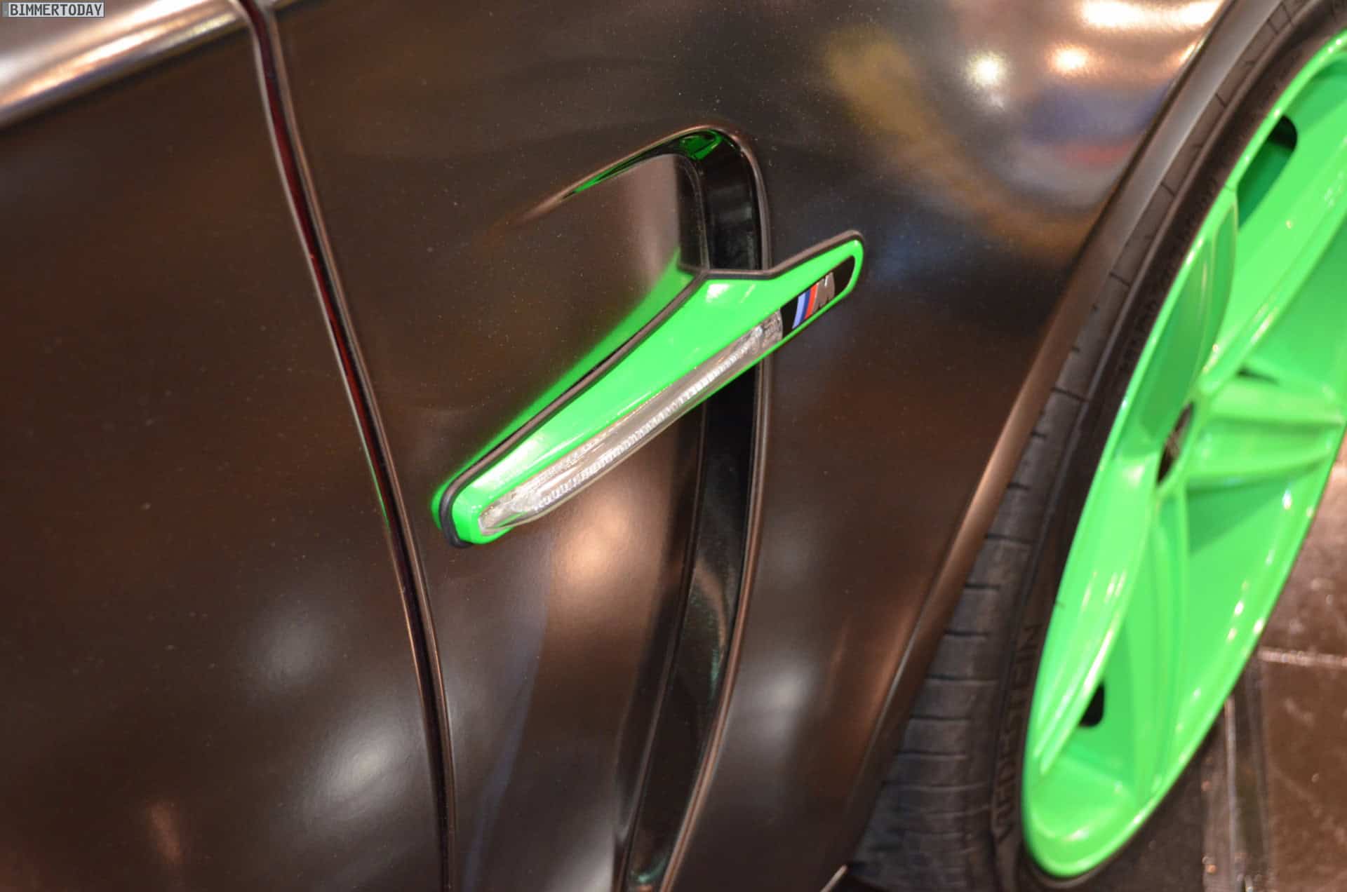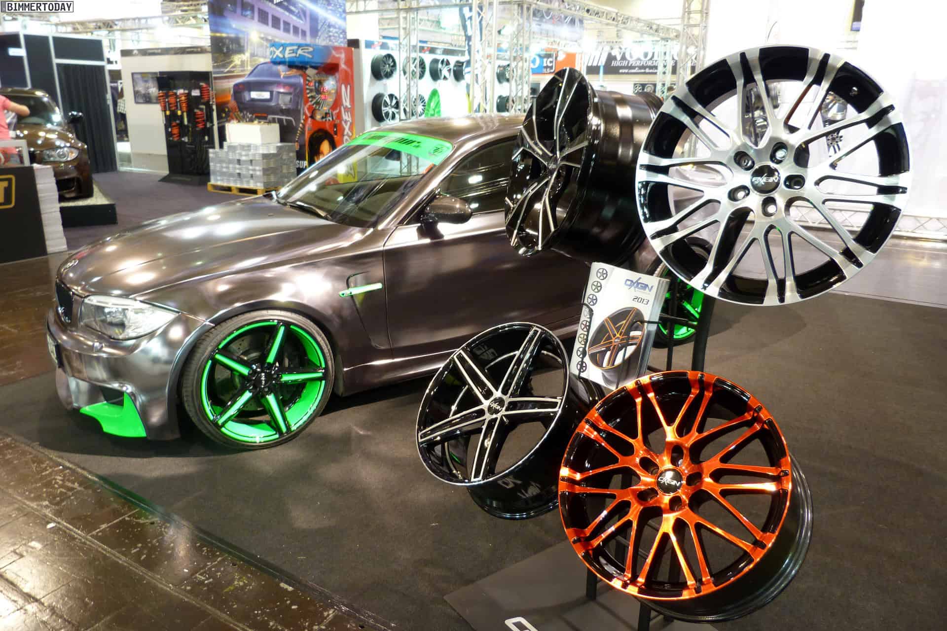 At the 2013 Essen Motor Show, one vehicle stands out in the crowd of super tuned up and modded BMWs: a chrome 1M with green accents. The fellows at Oxigin/Tuningpur draw attention with the chrome wrapped 1M which comes with neon green elements at the front and rear aprons, side gills and wheels.