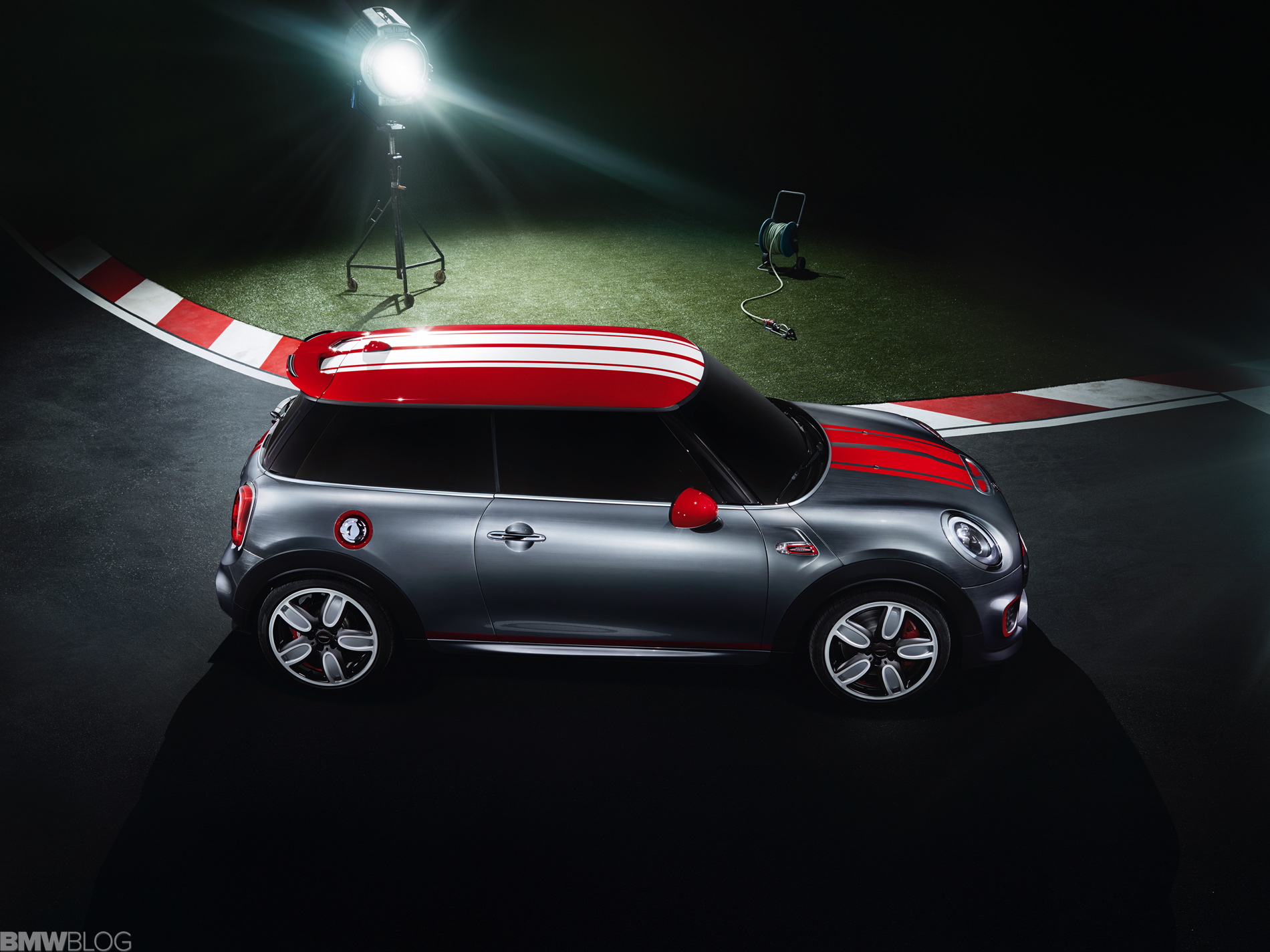 The John Cooper Works Concept is based on the latest-generation MINI. Its origins are clearly recognisable in the longer wheelbase and wider track over the outgoing model, which has a direct effect on the car’s driving characteristics. The model variants of the new MINI available from launch have already shown themselves to be more powerful, punchy and agile than their predecessors. Weight savings and improved aerodynamic properties have also contributed significantly to the new car’s driving talents – and these developments likewise have a positive influence on the MINI John Cooper Works Concept.