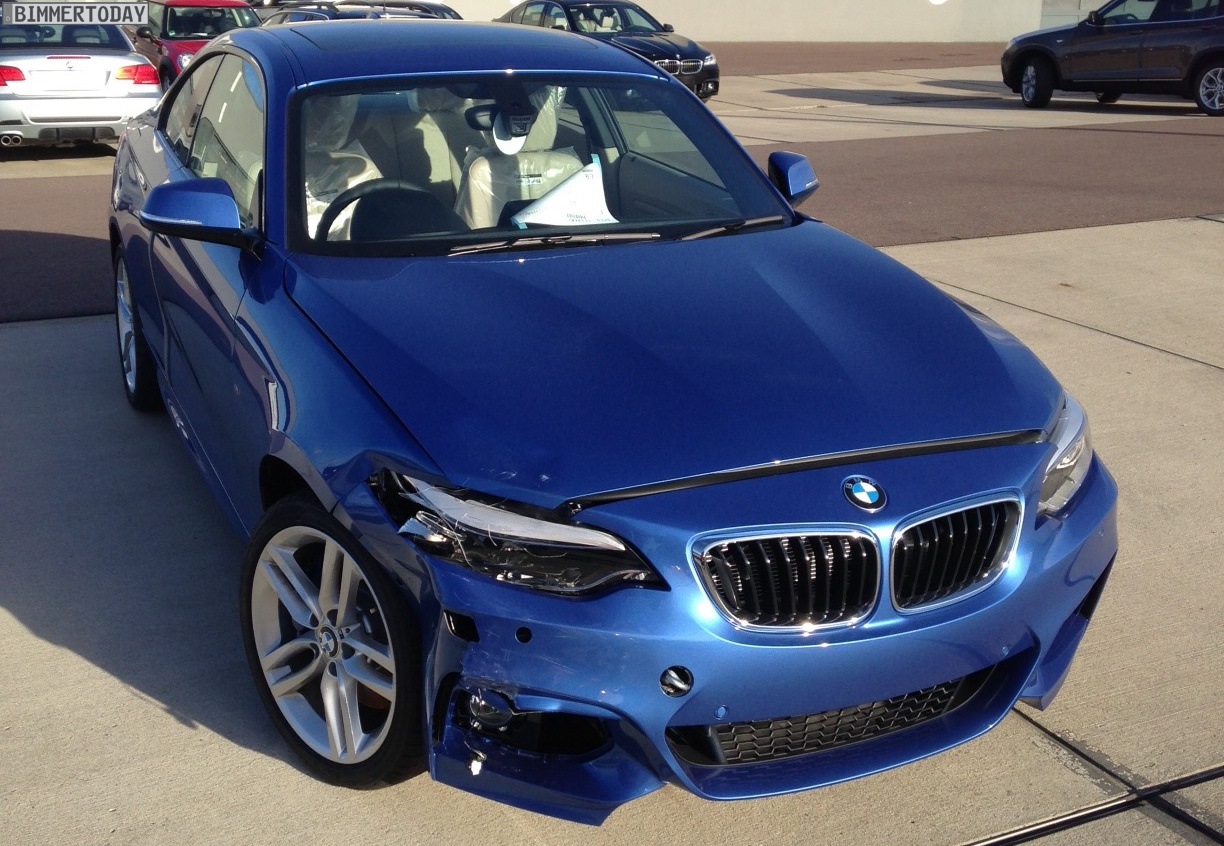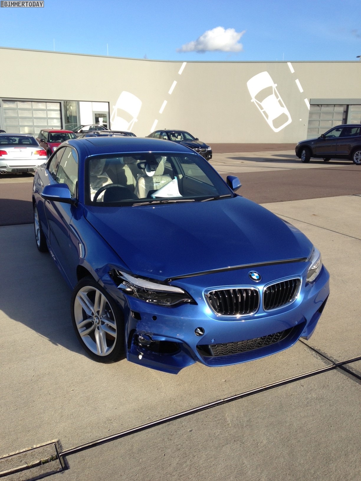 In just a few days the wait will be over when the first journalists will jump behind the wheel of the new BMW 2 Series Coupe. In the mean time, a slightly banged up F22 2 Series was spotted with the aggressive-looking M Sport package and Estoril Blue color.