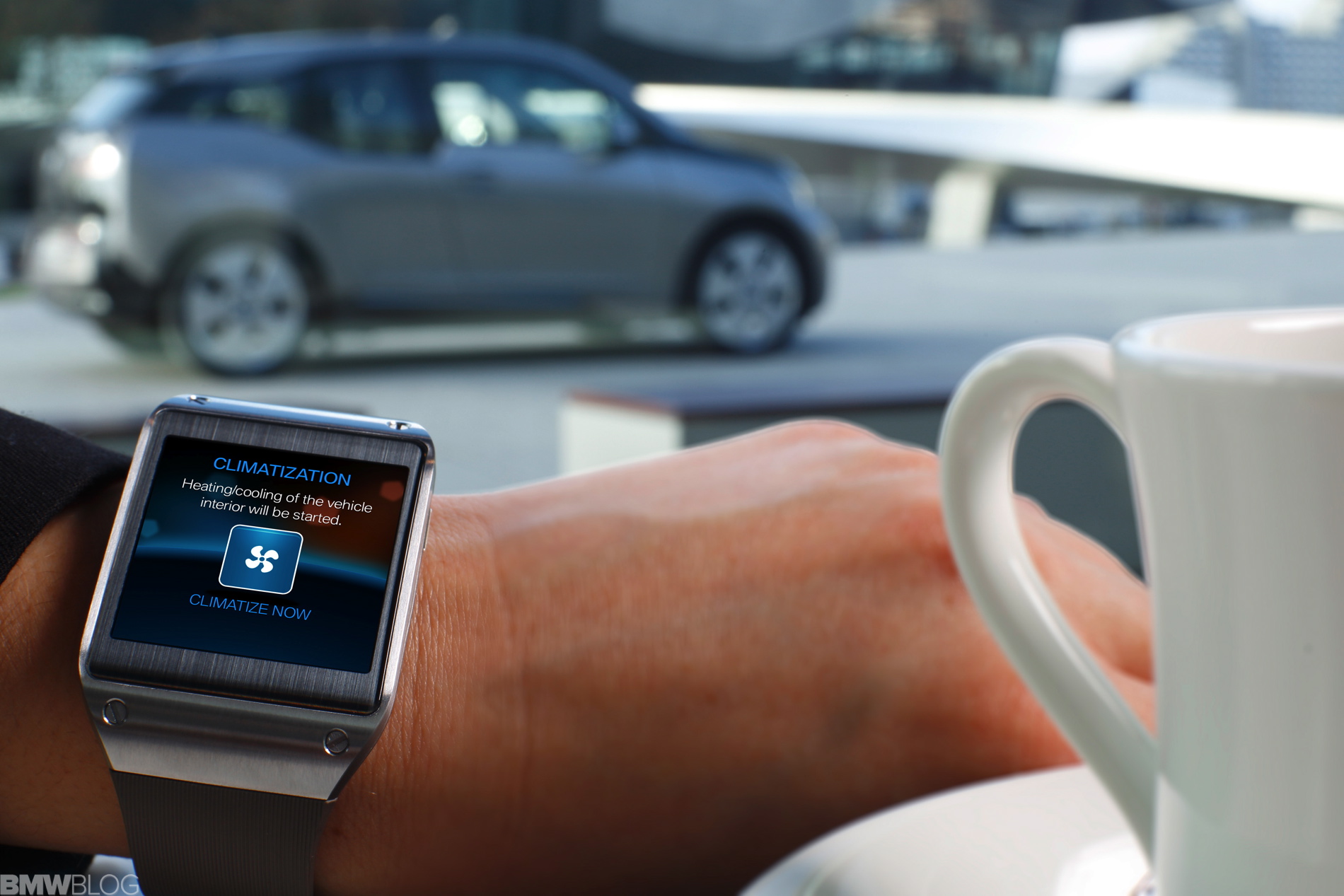 These devices are worn like wristwatches and display information from a linked smartphone directly onto the user’s wrist. At CES 2014, BMW became the world’s first carmaker to present vehicle functions on the electronic wristwatch as part of a research application. The Samsung Galaxy Gear with BMW i Remote App functions has similar attributes to the BMW i Remote App, which keeps drivers connected with their BMW i3 at all times.