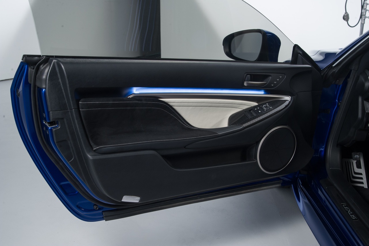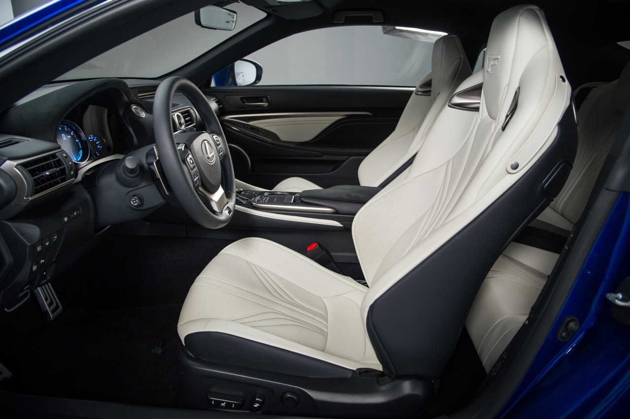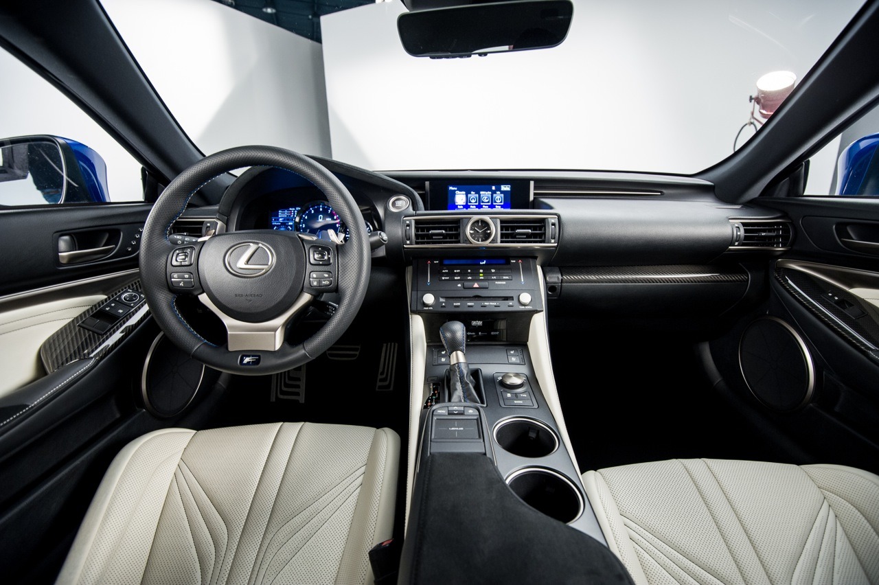 Inside the RC F comes with performance bucket front seats, sporty steering wheel, and a reconfigurable gauge cluster.
