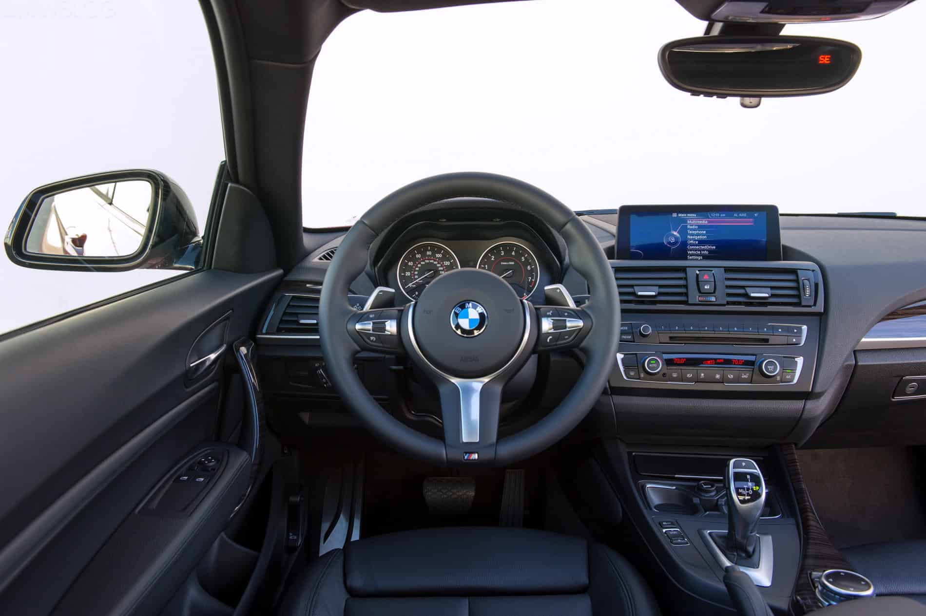 The M235i we drove on the freeway and through Downtown Las Vegas had the iDrive Nav system with touchpad. Though there is no Head-Up display available in the 2 Series, the instrument cluster displays upcoming turns and distances. The rest of the cabin tech was standard BMW fare with BMW apps, Bluetooth and Real Time Traffic Information. Our tester did have an iPhone cradle in it, but it was an iPhone 4 hook up, not a lightning adapter. I did ask Eric Sargent, BMW NA Technology manager about this and he said that it was going to be available soon if it wasn’t already.