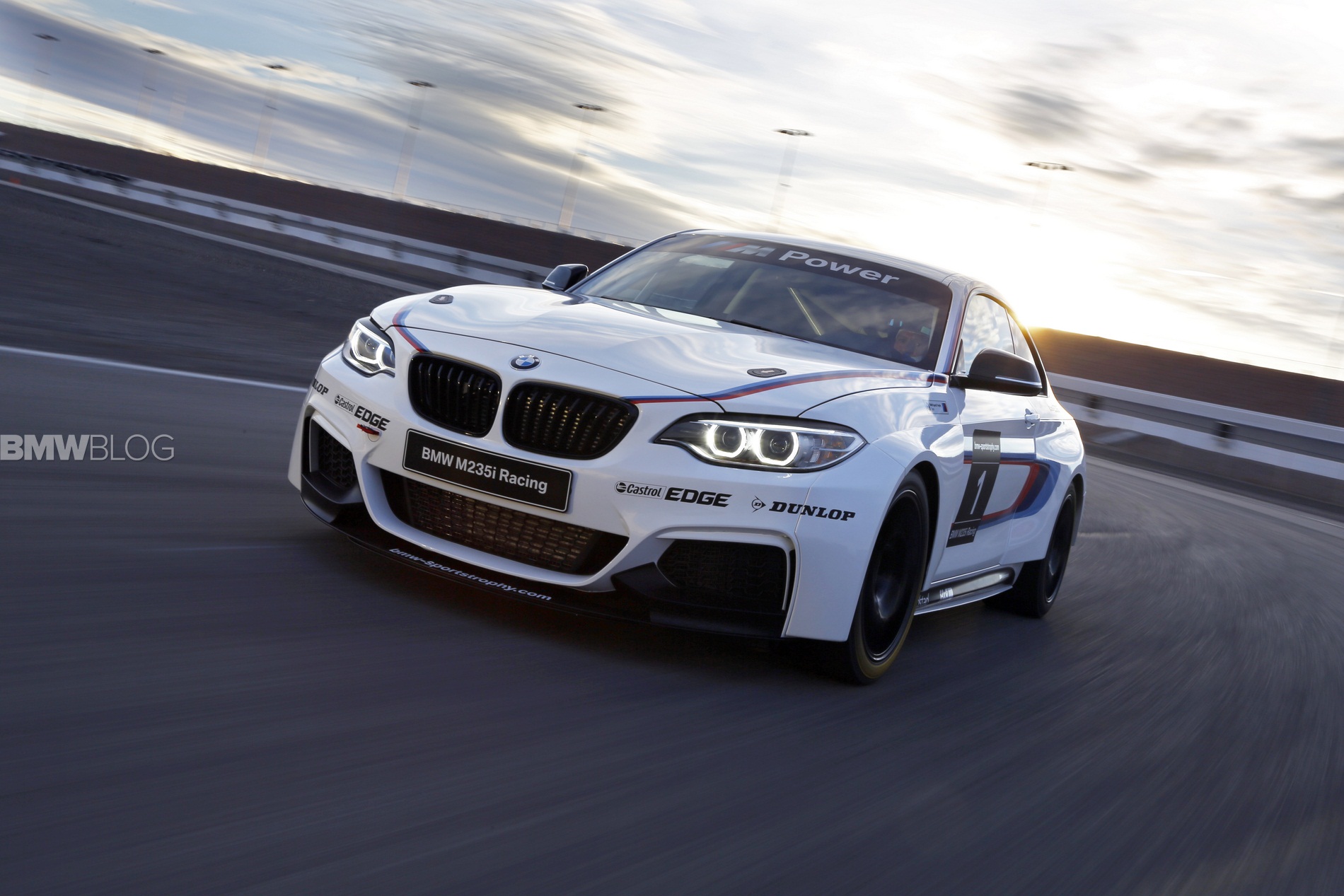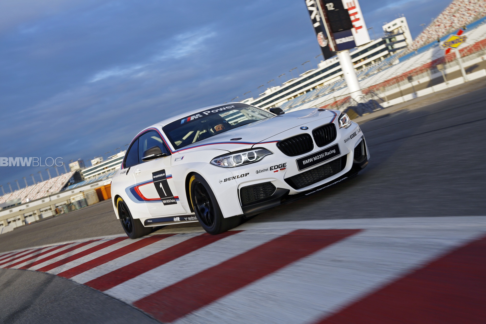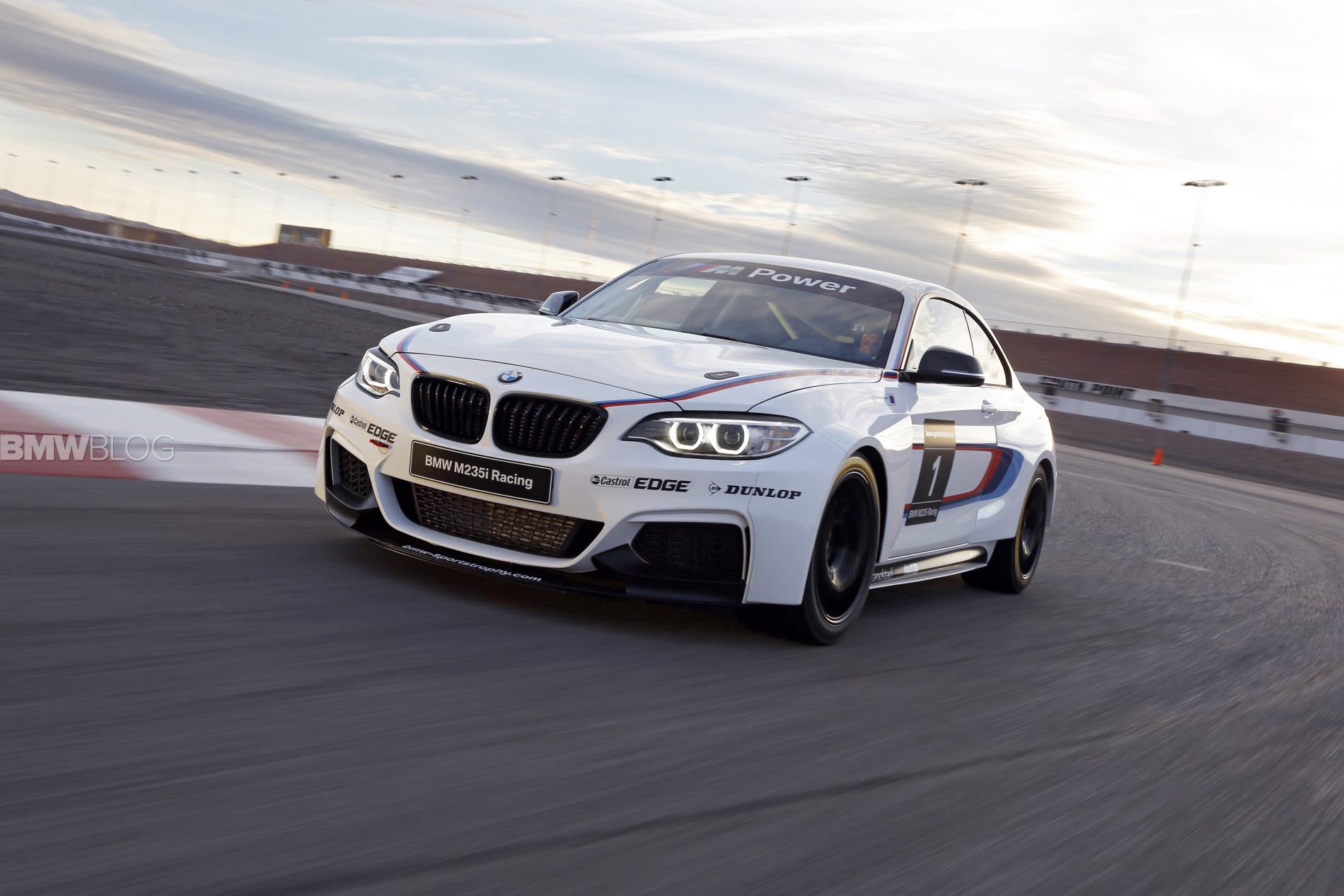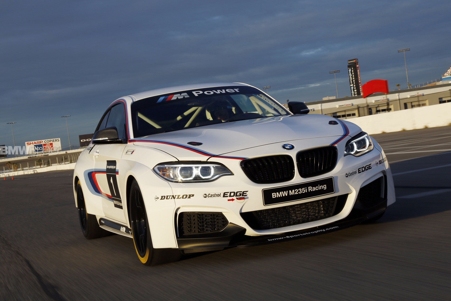 Here is the BMW M235i Race Car on the race track at the Las Vegas Motor Speedway.