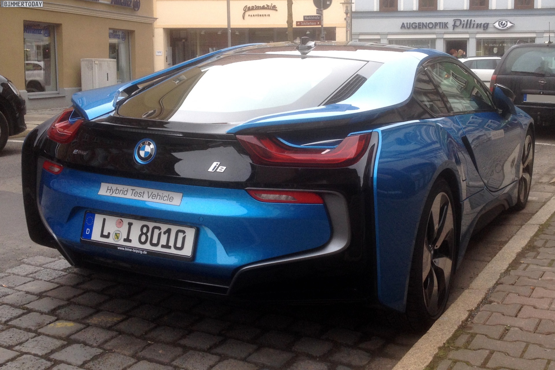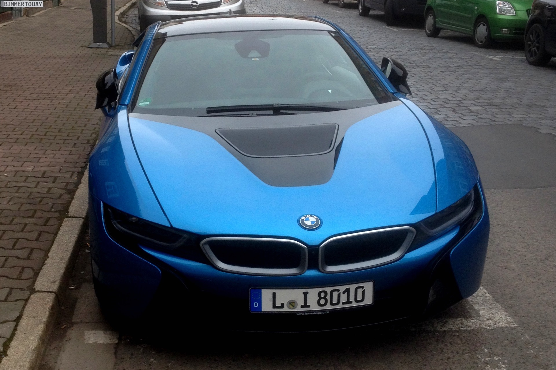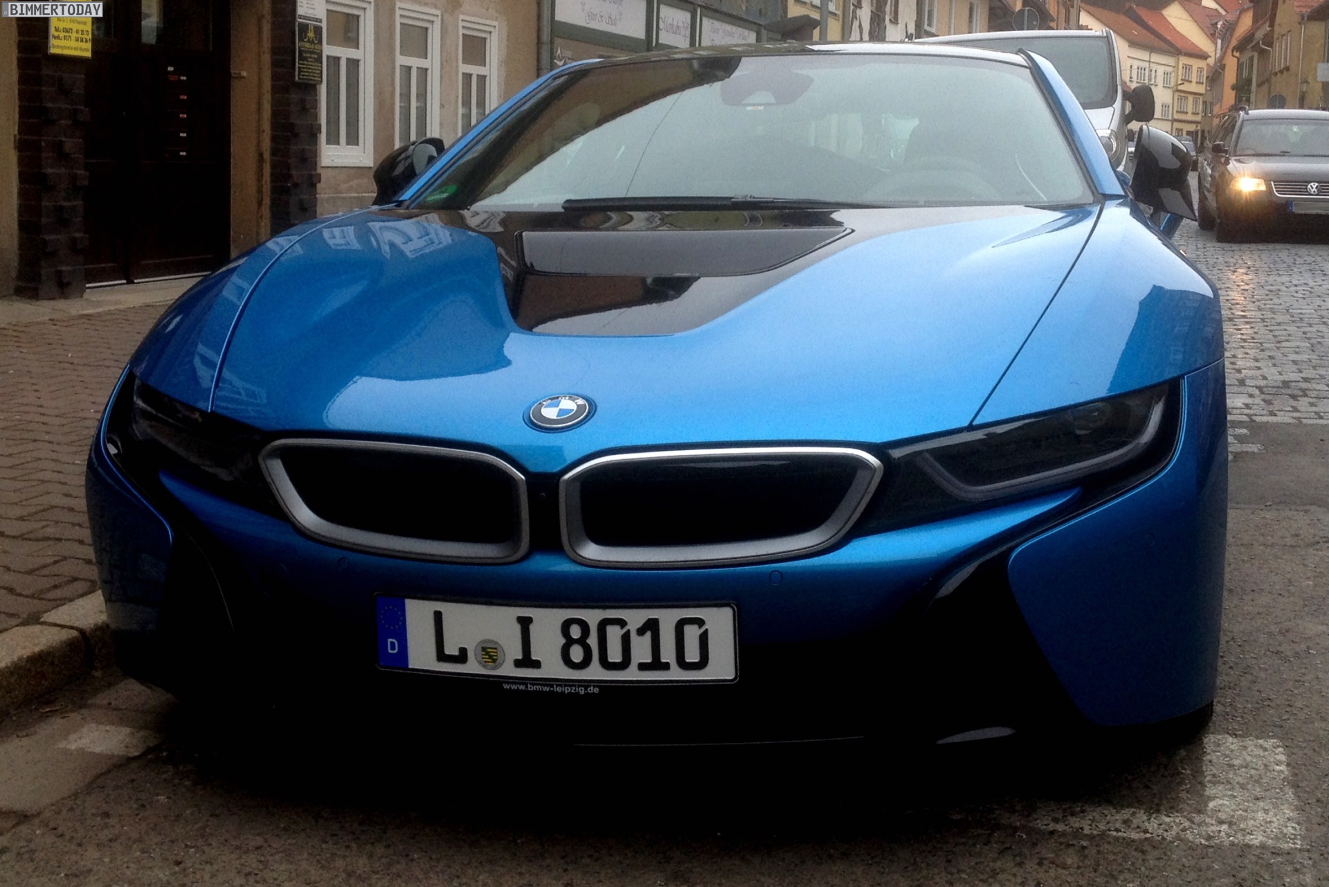 A BMW i8 in the Protonic Blue color was spotted in Leipzig. The paintwork adorning the side body panels and front and rear ends of the BMW i8 can be specified in a choice of four colors, three of which have been created exclusively for BMW i. All the paint finishes provide a striking contrast to the black belt.