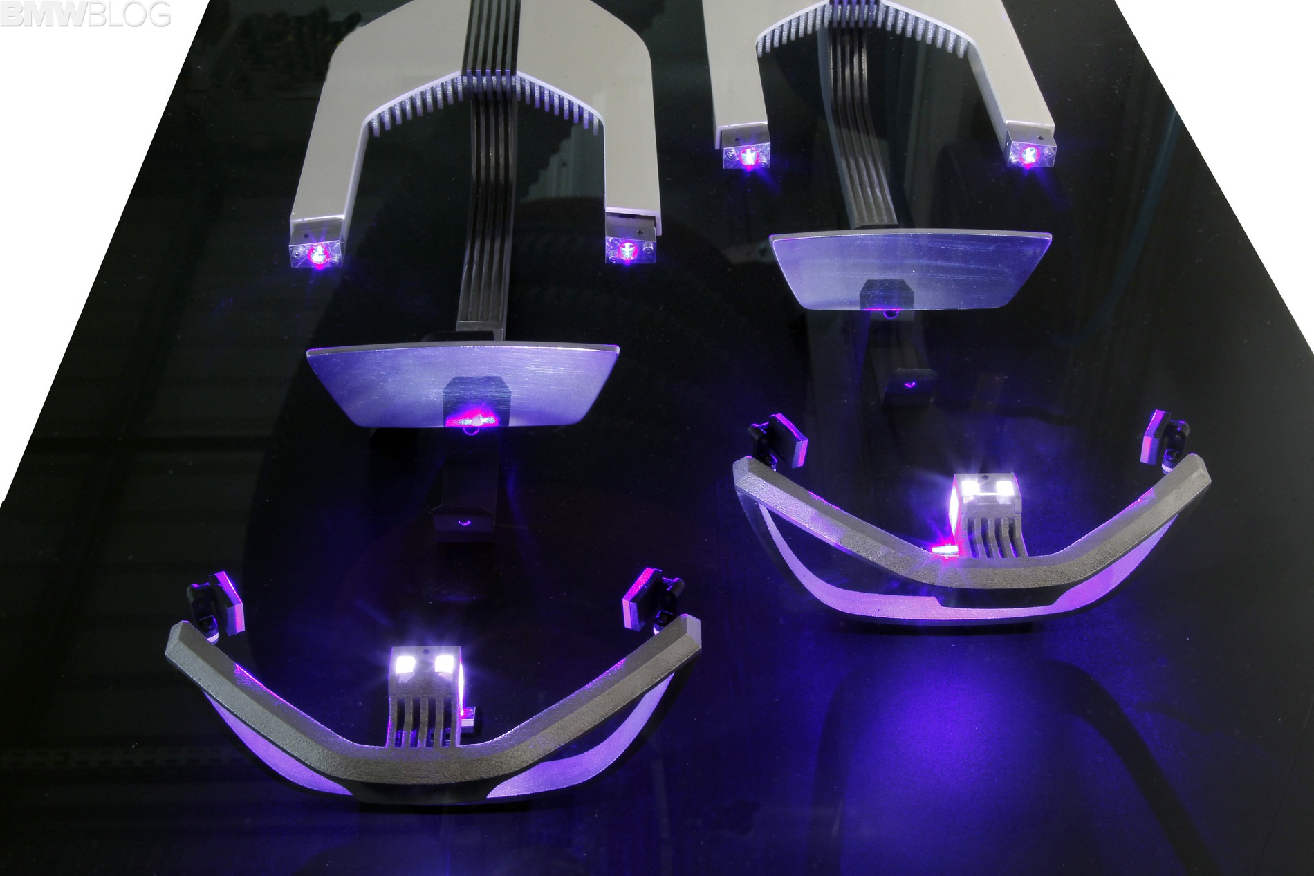 The BMW i8 is the world’s first series-produced vehicle to be available as an option with innovative laser headlights, which generate a pure-white, extremely bright light that is pleasant to the eye. The light is created through the conversion of the beams emitted by tiny laser diodes by means of a fluorescent phosphor material inside the headlight.