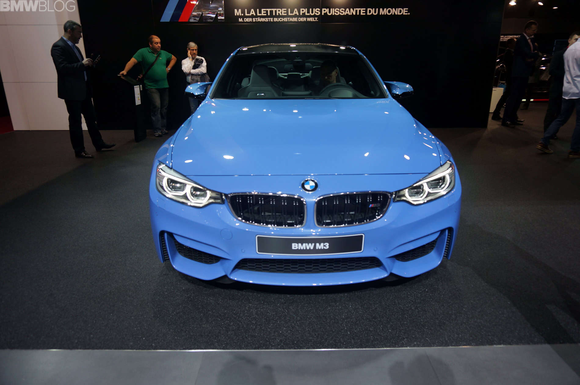 While not the main attraction at the BMW stand in Geneva, the 2014 BMW M3 Sedan still captures the attention of passing-by visitors. The F80 M3 Sedan goes on sale this summer along with the M4 Coupe and brings a full refresh to the current M lineup.
