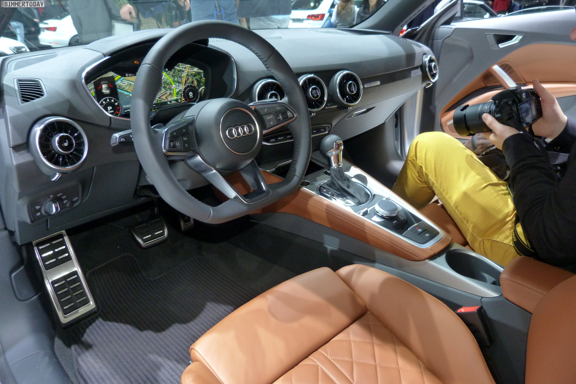 The TT’s side profile view is still intact, but the 2015 TT is 1.4 inches longer in the wheelbase, giving the car shorter front and rear overhangs. It also shed some weight, roughly 110 pounds lighter than the previous generation. You can differentiate between TT and TTS models by their tailpipes — TT coupes get two, while the more powerful TTS model gets four exhaust tips.