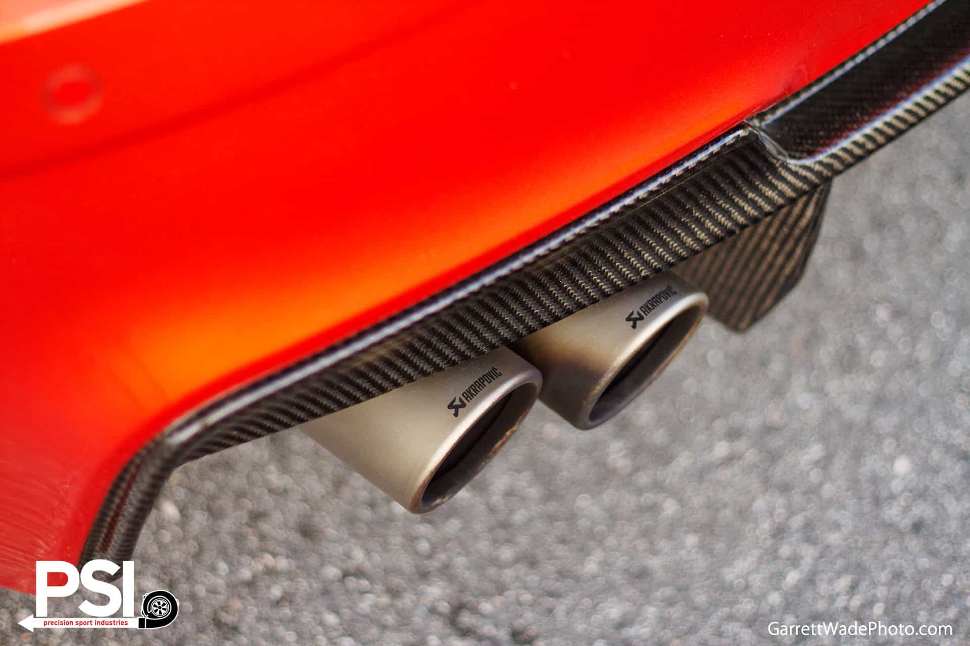 The existing Slek front lip splitter and Revozport rear diffuser carbon fiber pieces were retained, and the added punch they lend to the bodywork is not to be underestimated. Matching the weave of those pieces are the BMW mirror caps and BMW Performance spoiler, with a new set of OEM Blackline taillights finishing off the appearance enhancements. Inside, a new P3 gauge complements the BMW Performance steering wheel, giving a competition feel that is backed up by the power delivery.