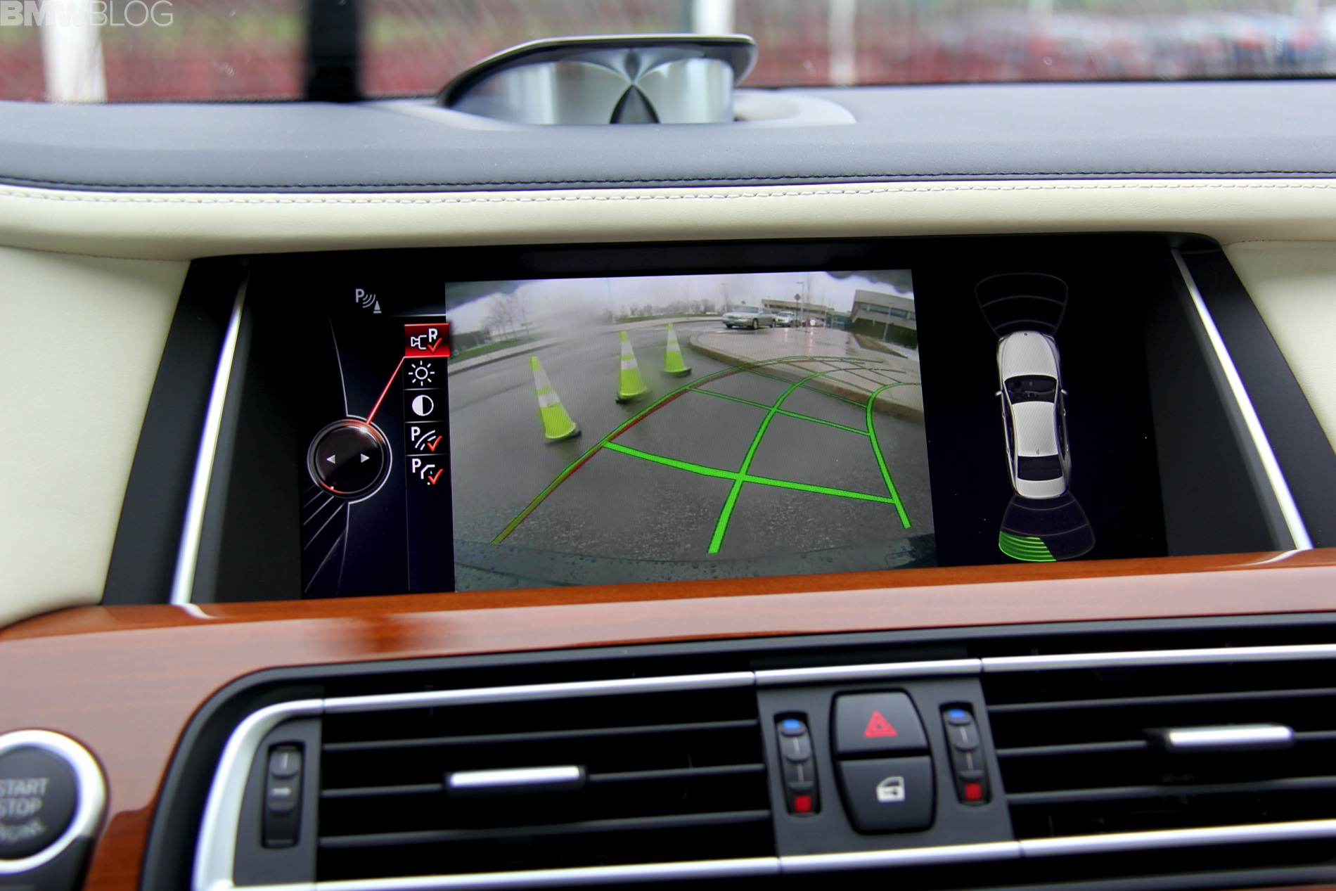 The 2014 740Ld xDrive BMW Individual test car interior was clad in Platinum full leather with Walnut Honey Wood accents and black plush carpets. The Alcantara headliner of the cabin was in upholstery color and felt like, well felt. The steering wheel, a BMW Individual wood inlay steering wheel, is a mere $800 option and a veritable bargain. iDrive and Navigation are included as well as a back up camera that predicted path give your steering input. I found this very helpful as after my drive was done I had to park the 17 foot Bavarian Limo in a tight space between some cones, an island and an i3 that was my next drive.