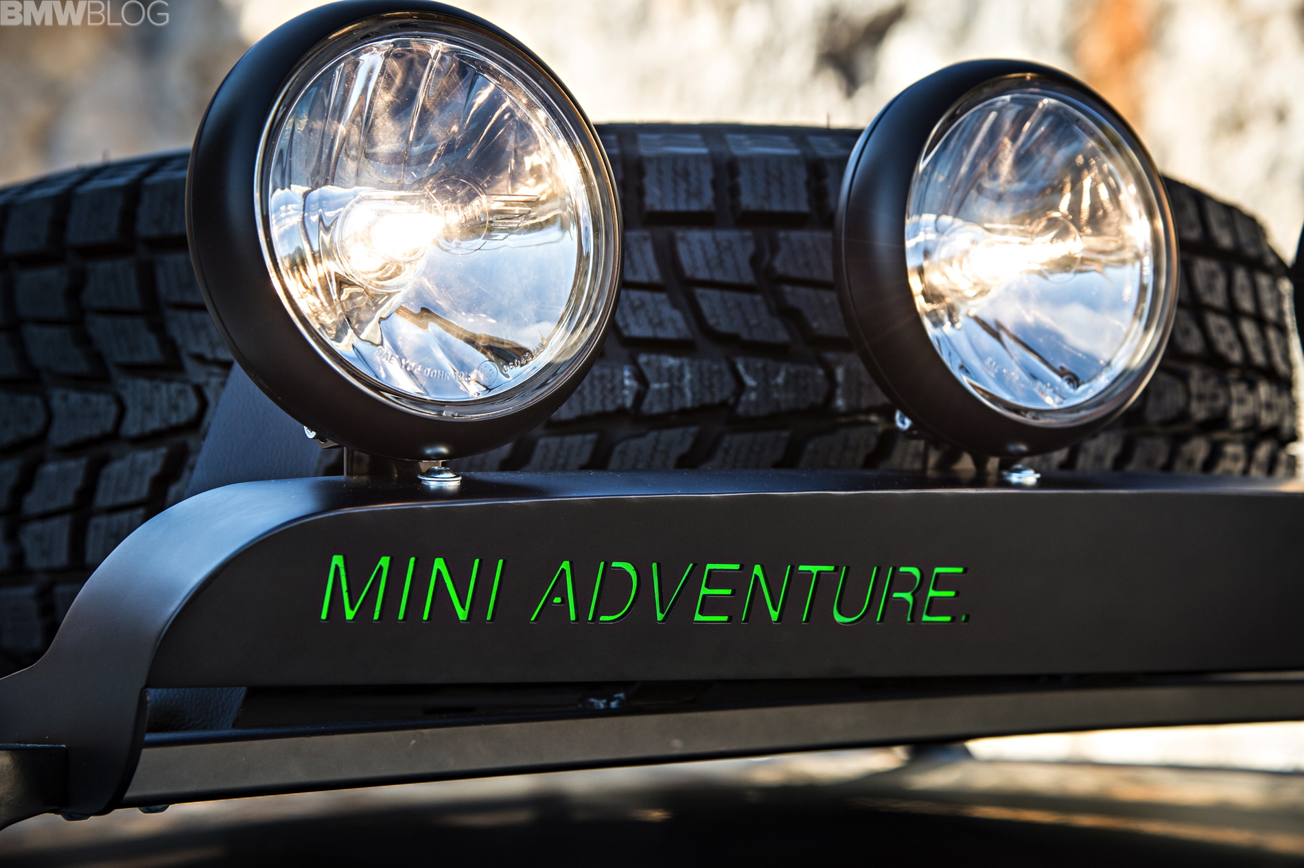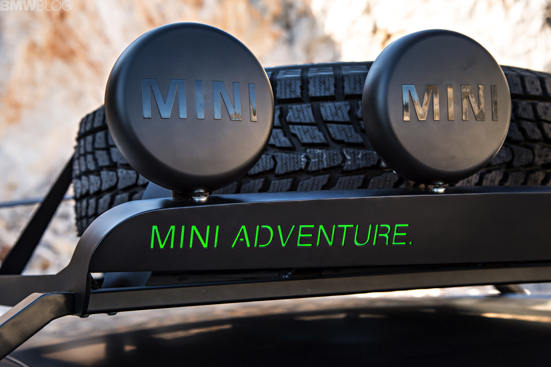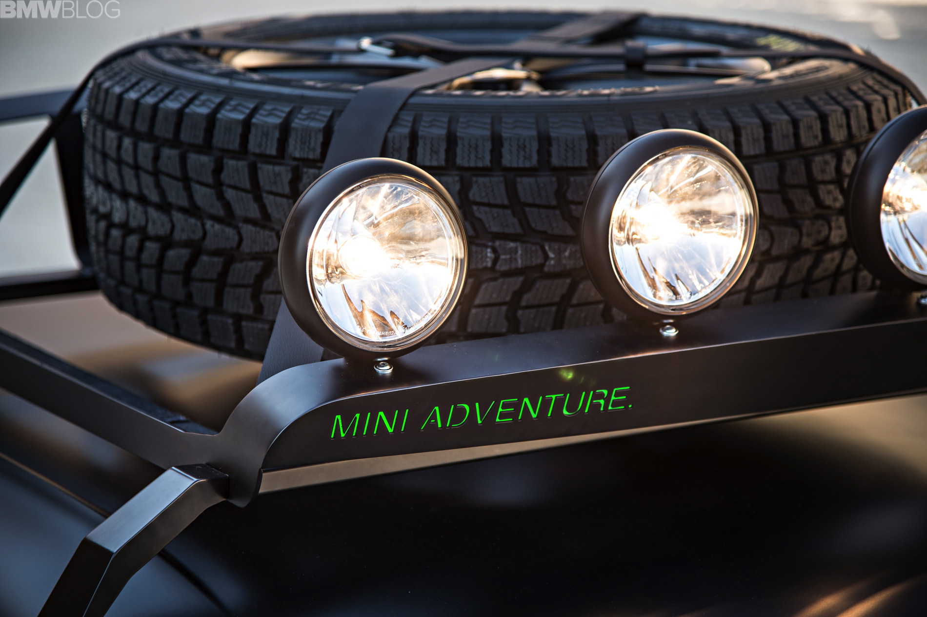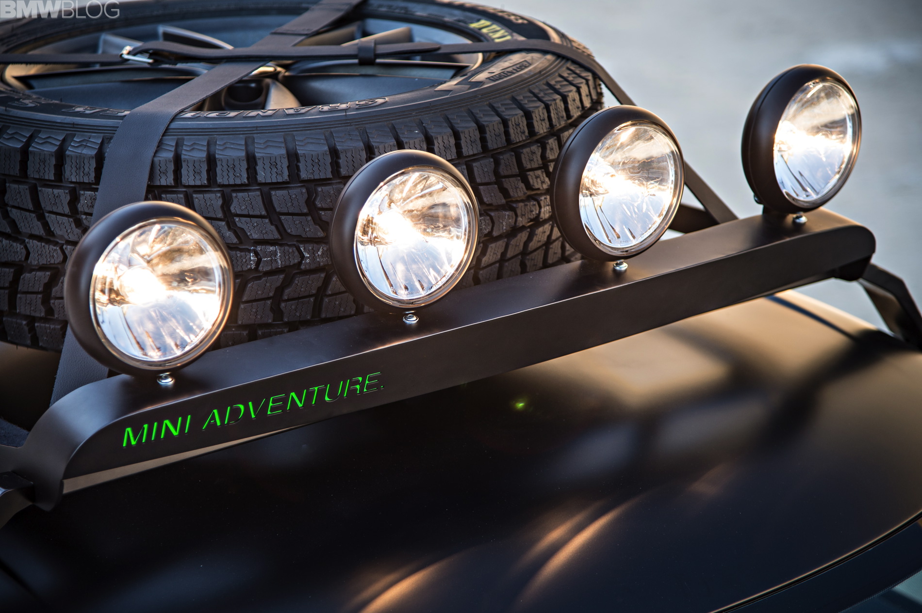 Additional lights mounted on the front cross member of the roof rack optimize visibility at night, while special off-road tyres with wide and deep treads guarantee the perfect traction. The MINI Paceman Adventure features exclusive Jungle Green metallic paintwork.