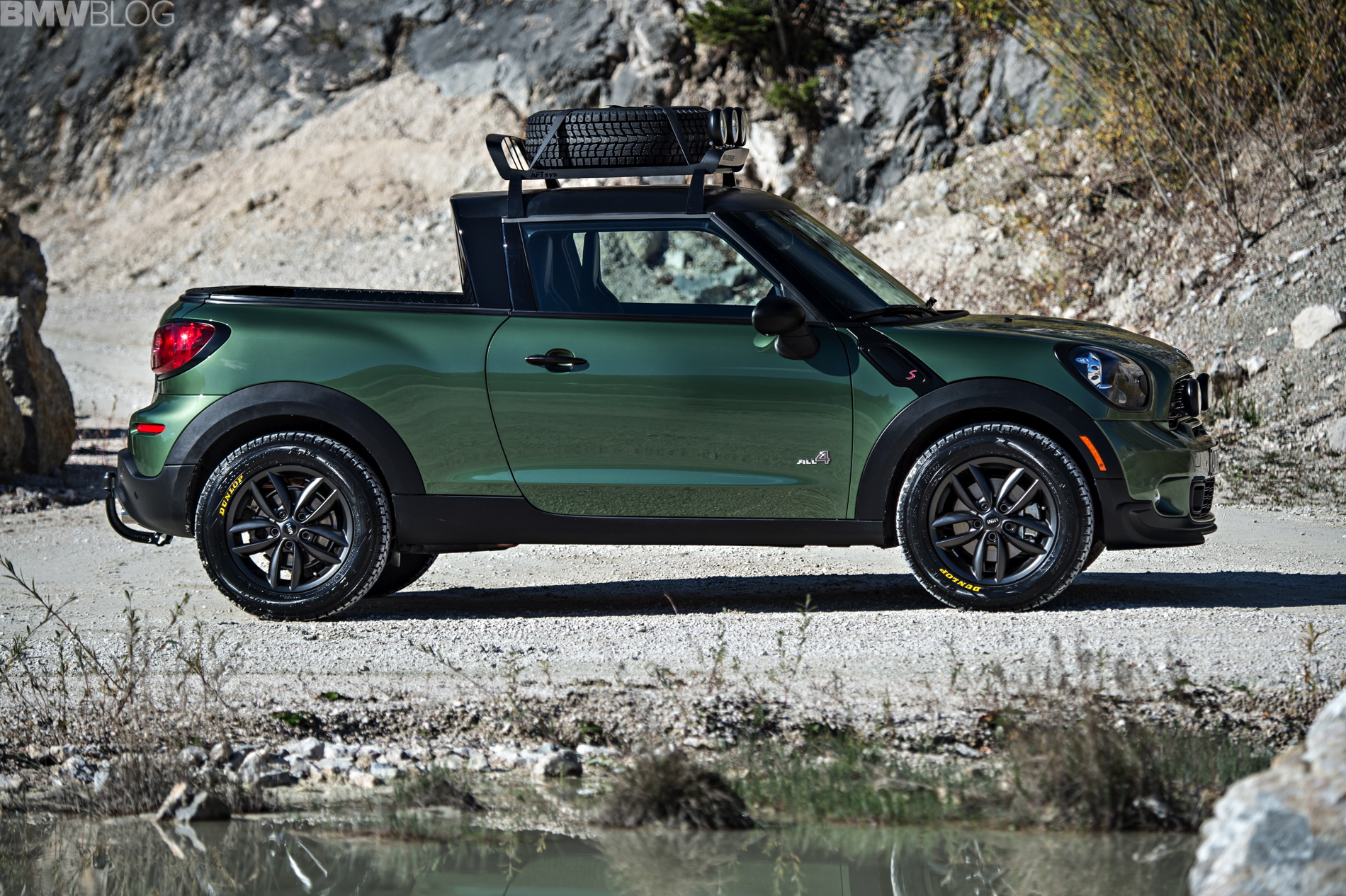 The MINI Paceman Adventure would be suitable for driving on gravel roads, through muddy tracks or on desert trails. The pickup has the typically MINI short overhangs, a modified chassis with extended ground clearance and much higher front and rear clearance ramps. The snorkel-like roof level air intake means that MINI Paceman Adventure could tackle a challenging river crossing.