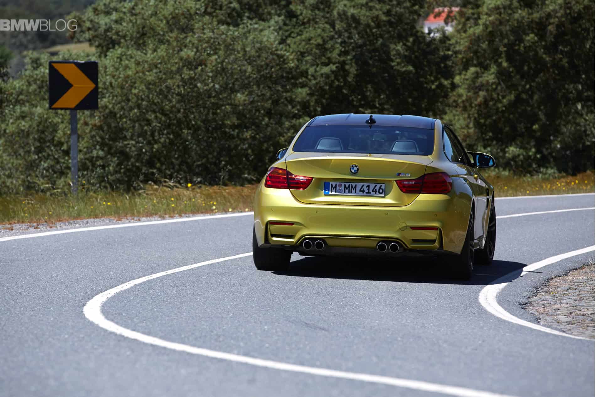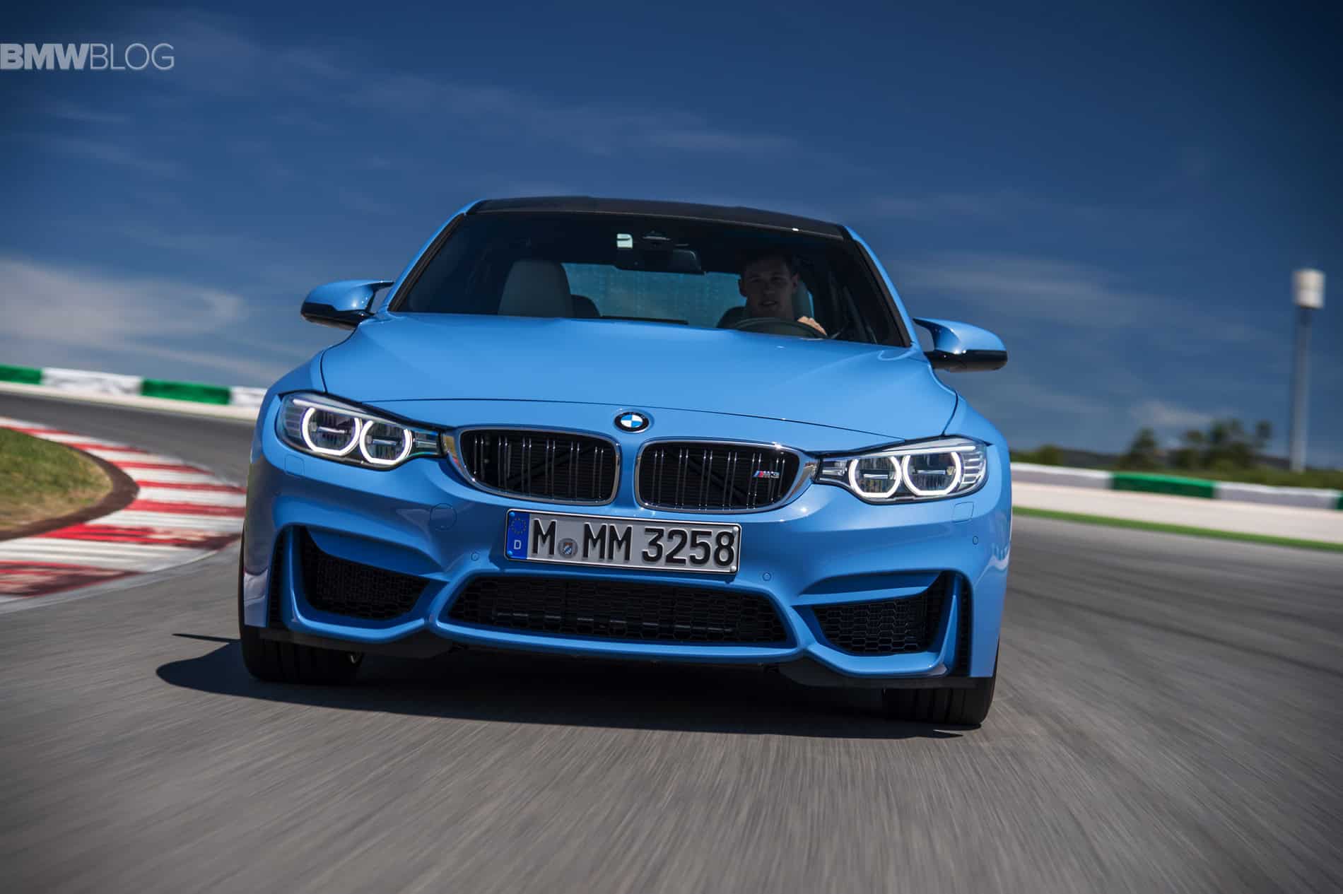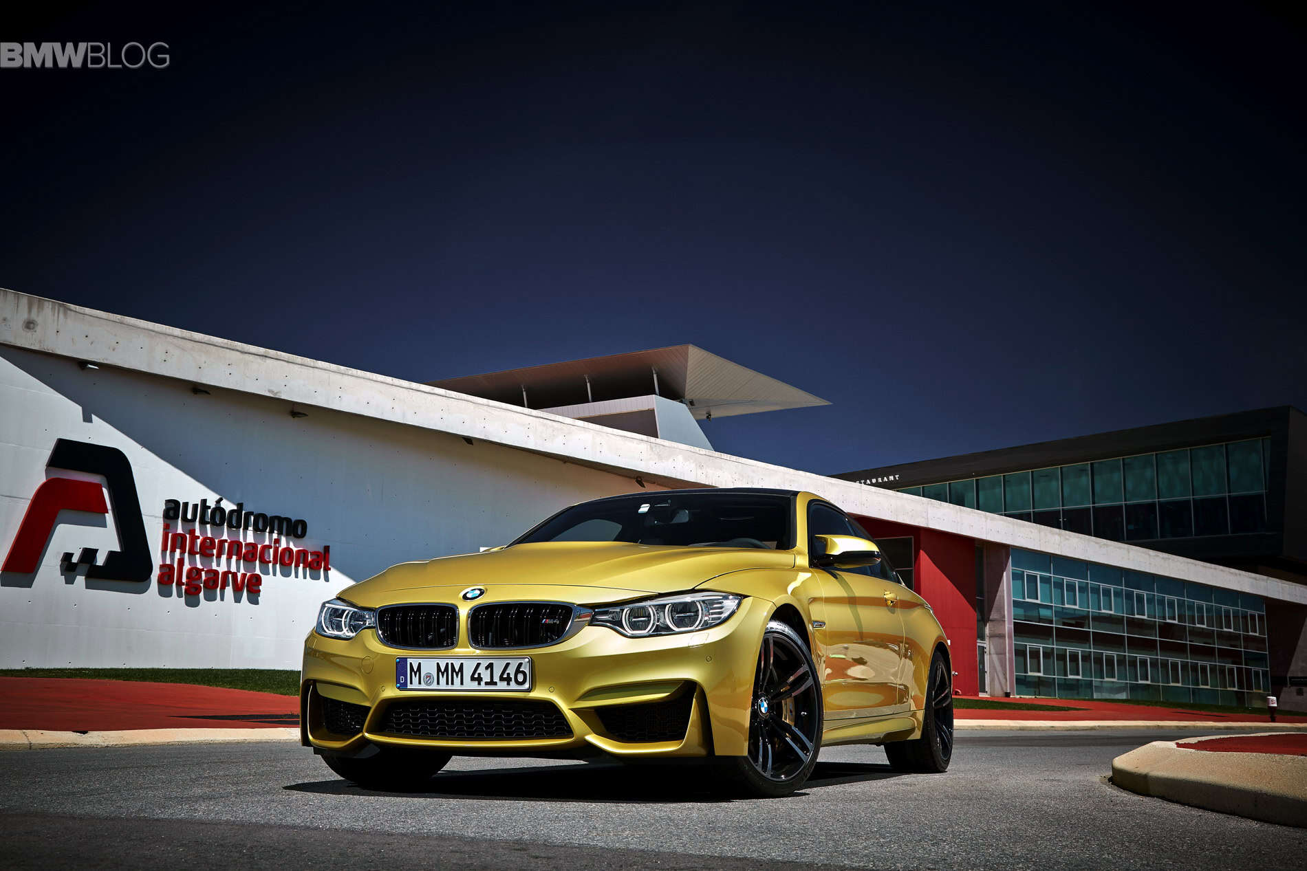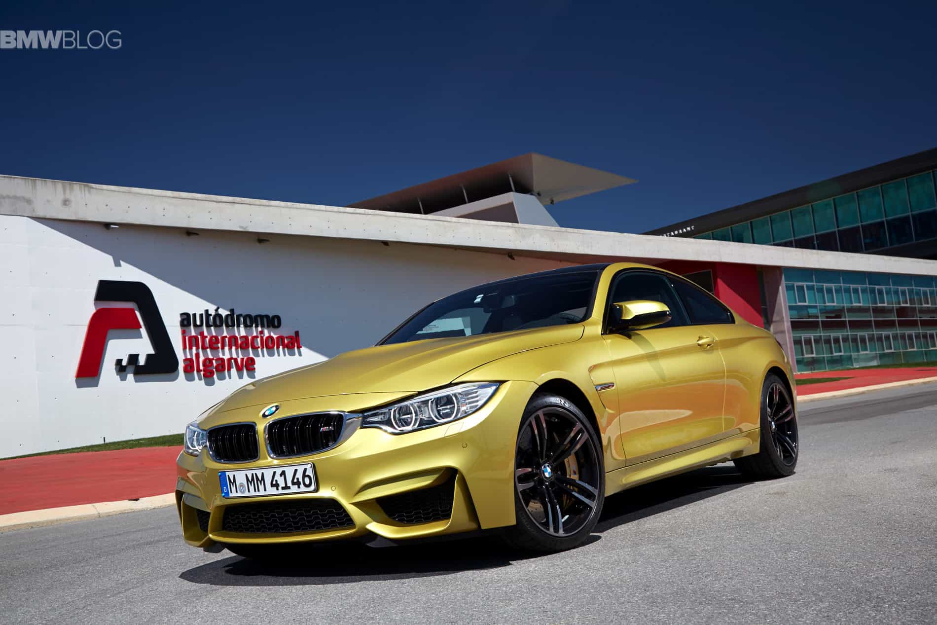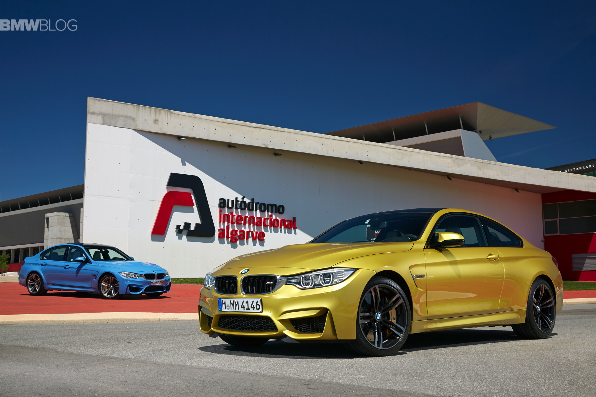The first day at the Portimão track was all about the Austin Yellow Metallic M4 and Yas Marina Blue Metallic M3, both with the $2,900 Getrag M-DCT paddle-flapper (which in North America is essentially considered a “standard option” until you de-content it out by checking the manual tranny box. This also brings the car’s price pleasantly downward.) All metallic paint jobs cost $550 extra, by the by, the only no-cost tint being Alpine White non-metallic which looks pretty dang fine, too.