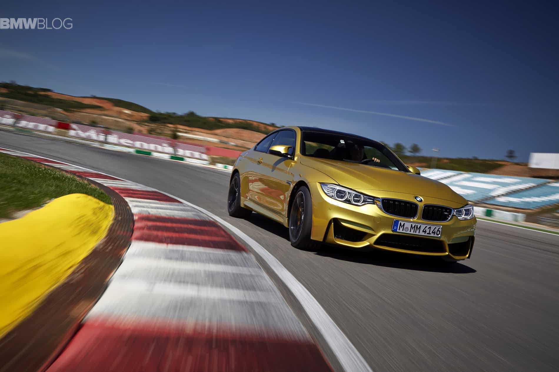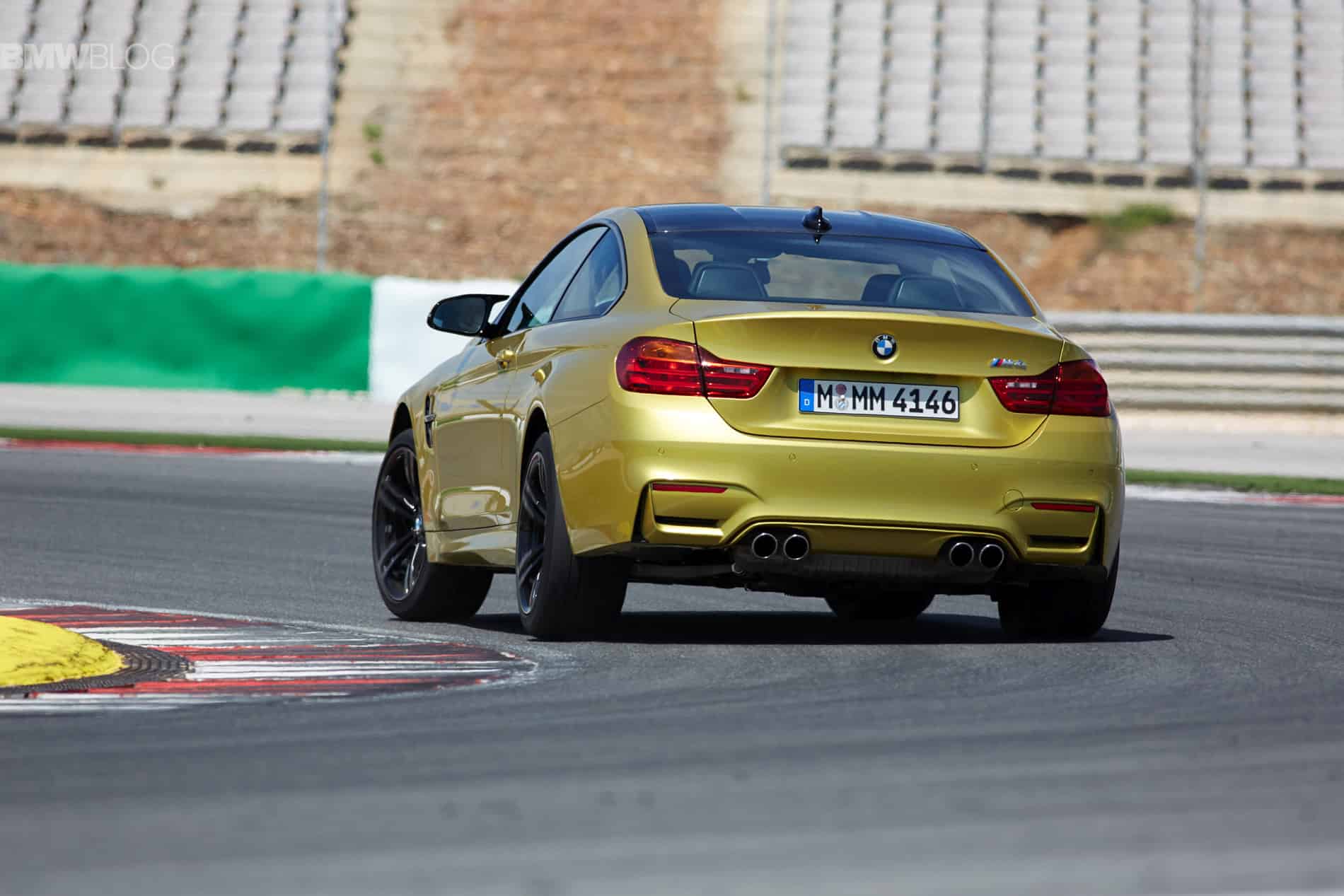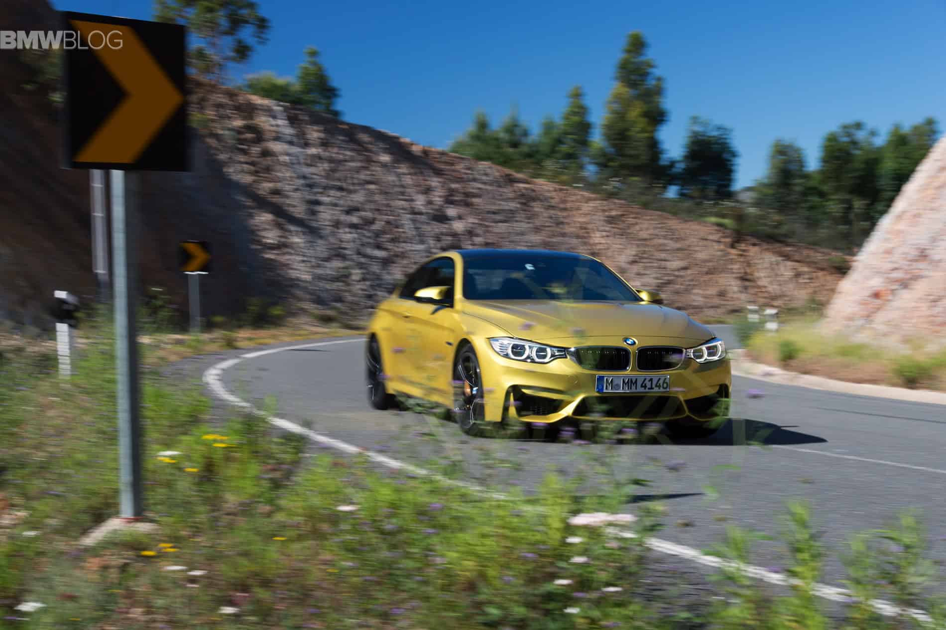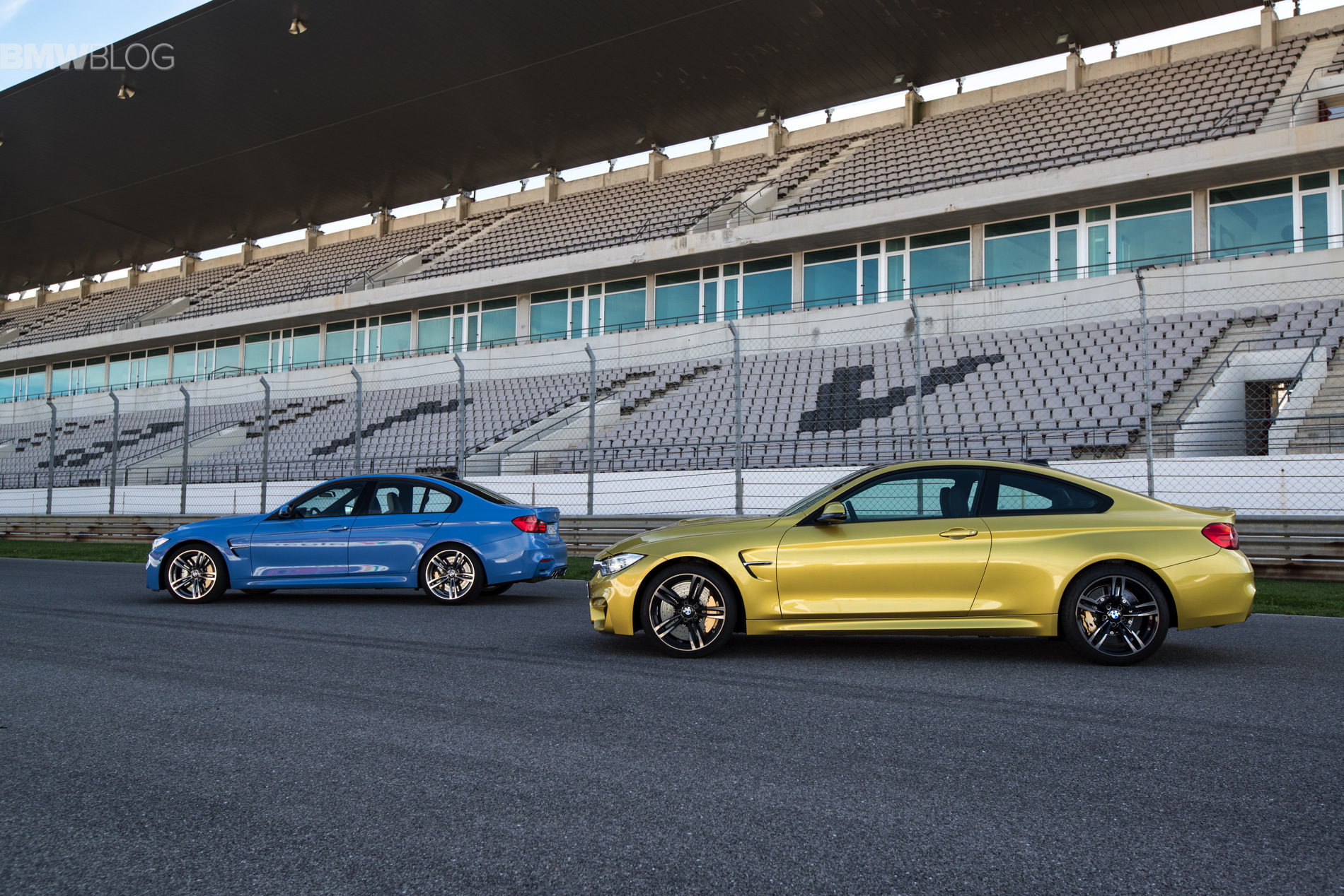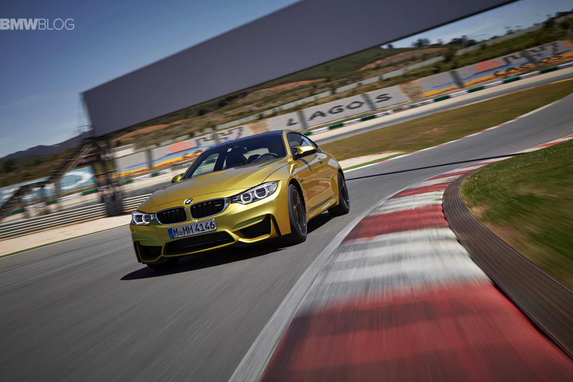 The first day at the Portimão track was all about the Austin Yellow Metallic M4 and Yas Marina Blue Metallic M3, both with the $2,900 Getrag M-DCT paddle-flapper (which in North America is essentially considered a “standard option” until you de-content it out by checking the manual tranny box. This also brings the car’s price pleasantly downward.) All metallic paint jobs cost $550 extra, by the by, the only no-cost tint being Alpine White non-metallic which looks pretty dang fine, too.