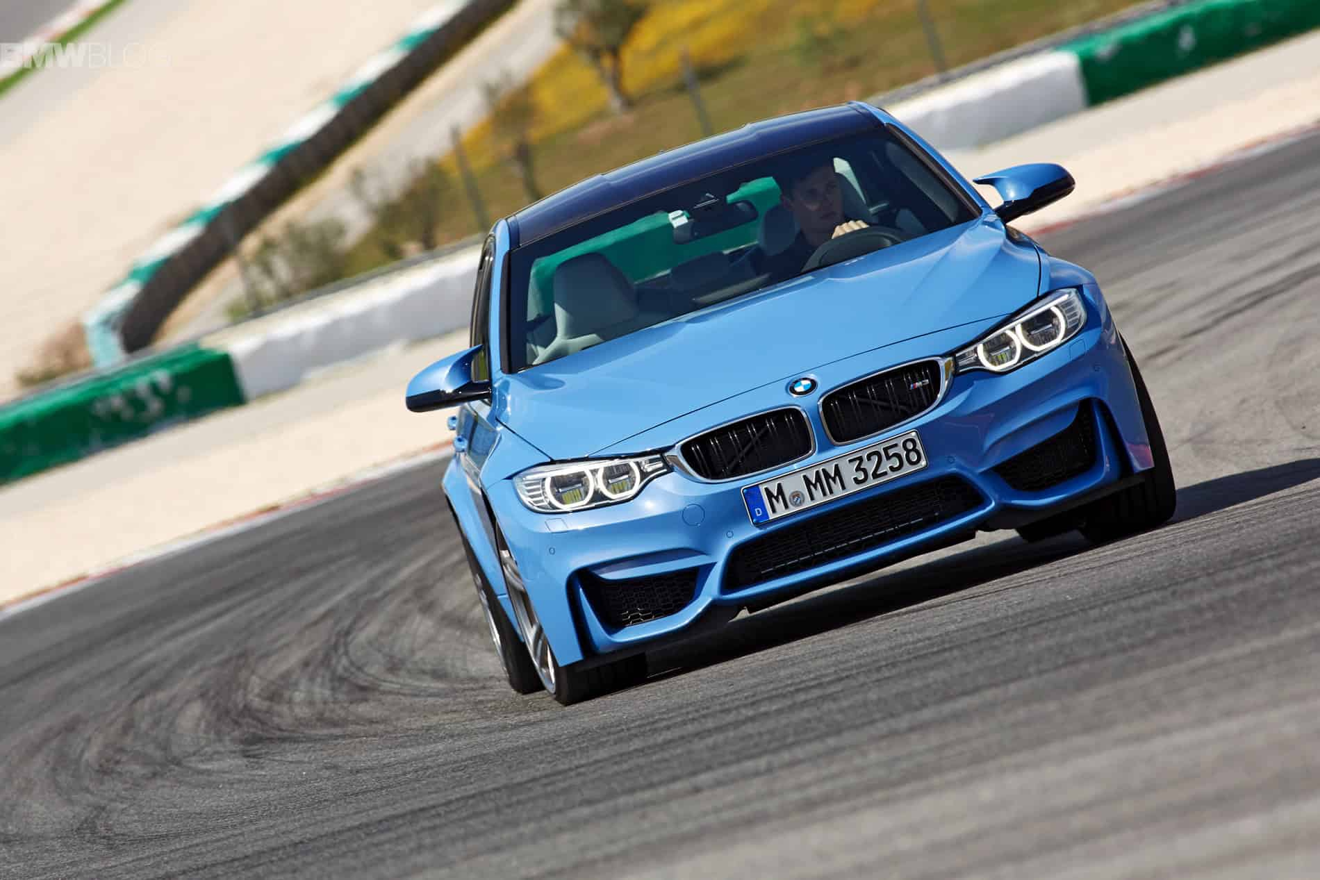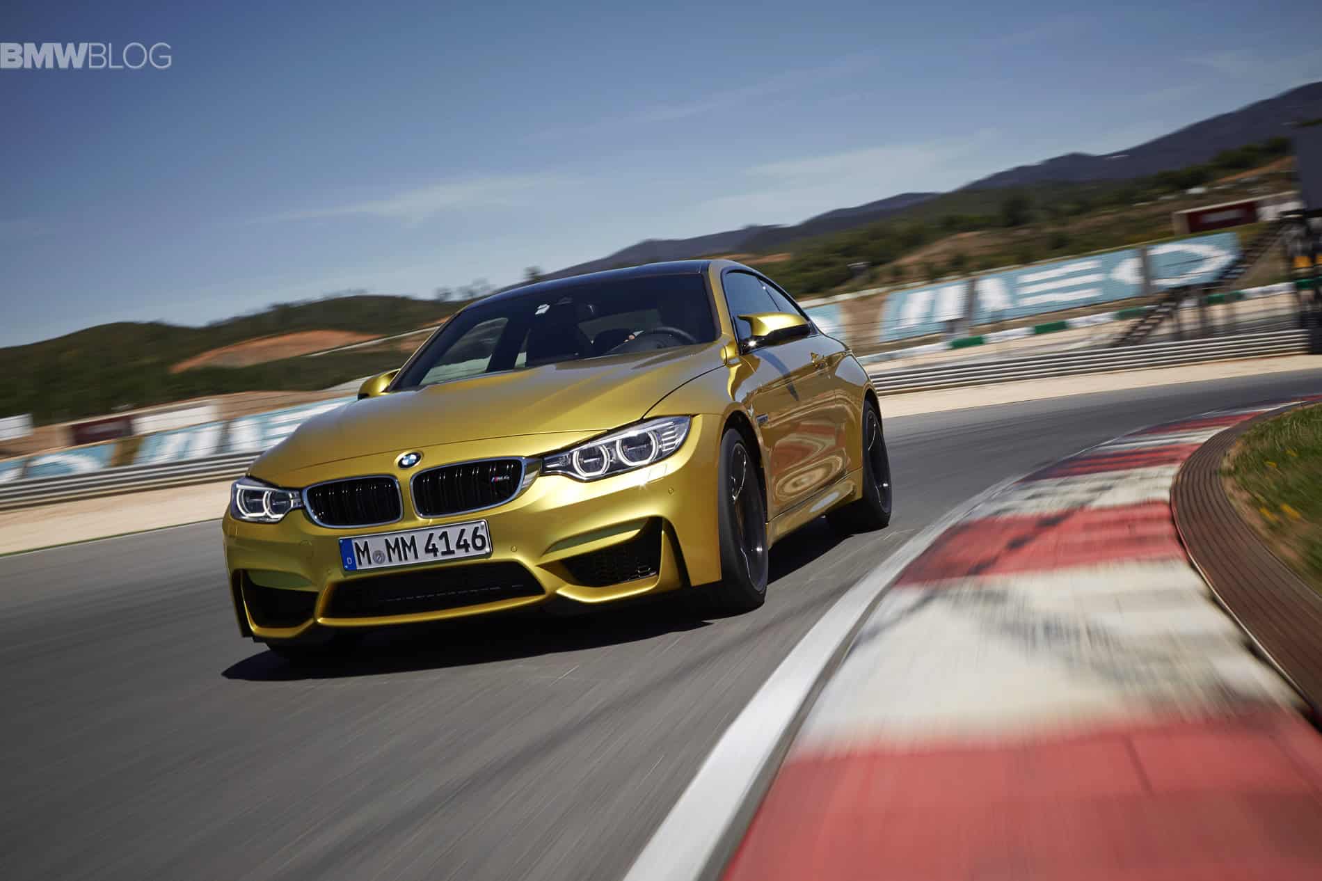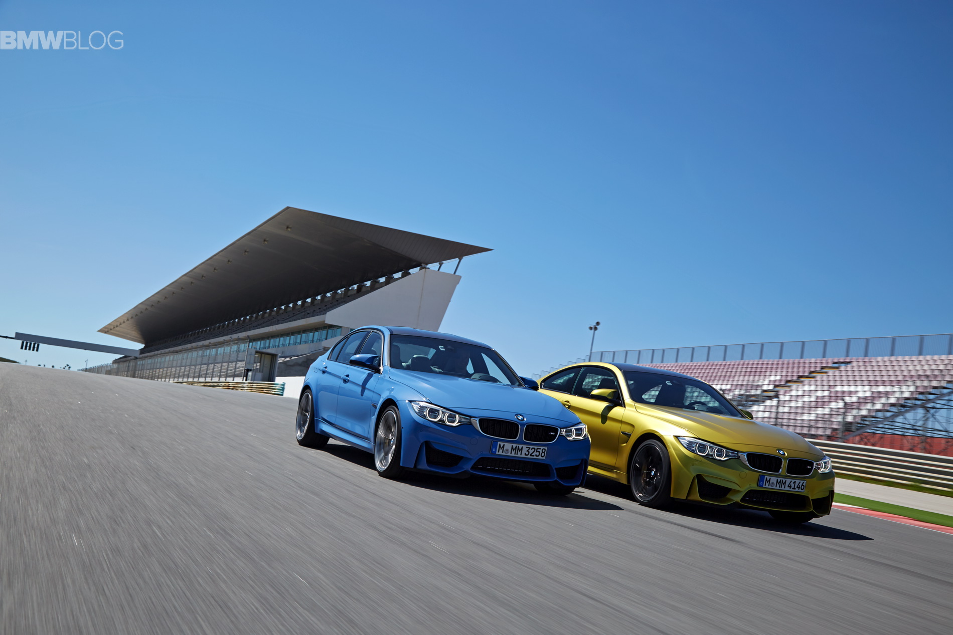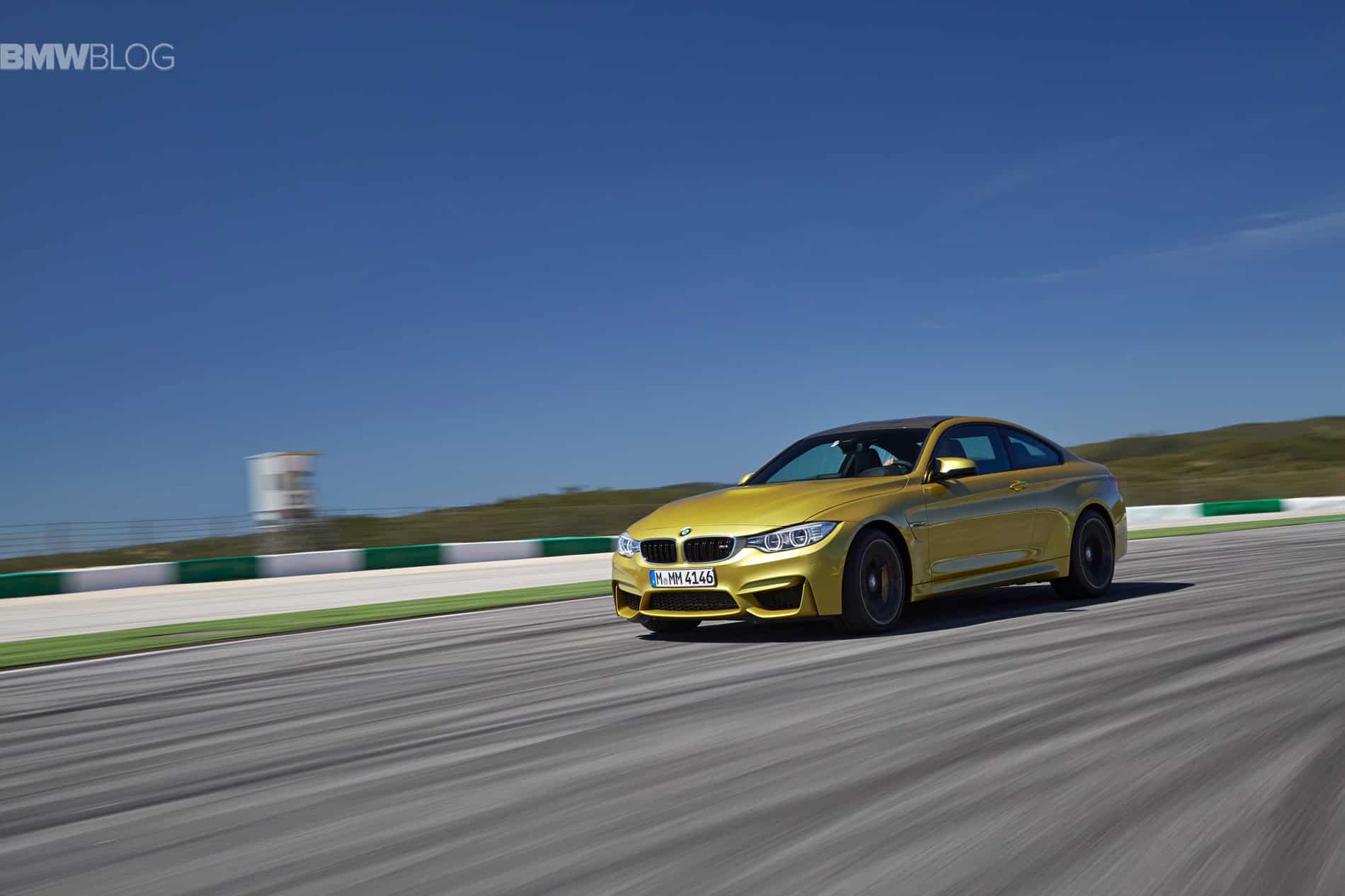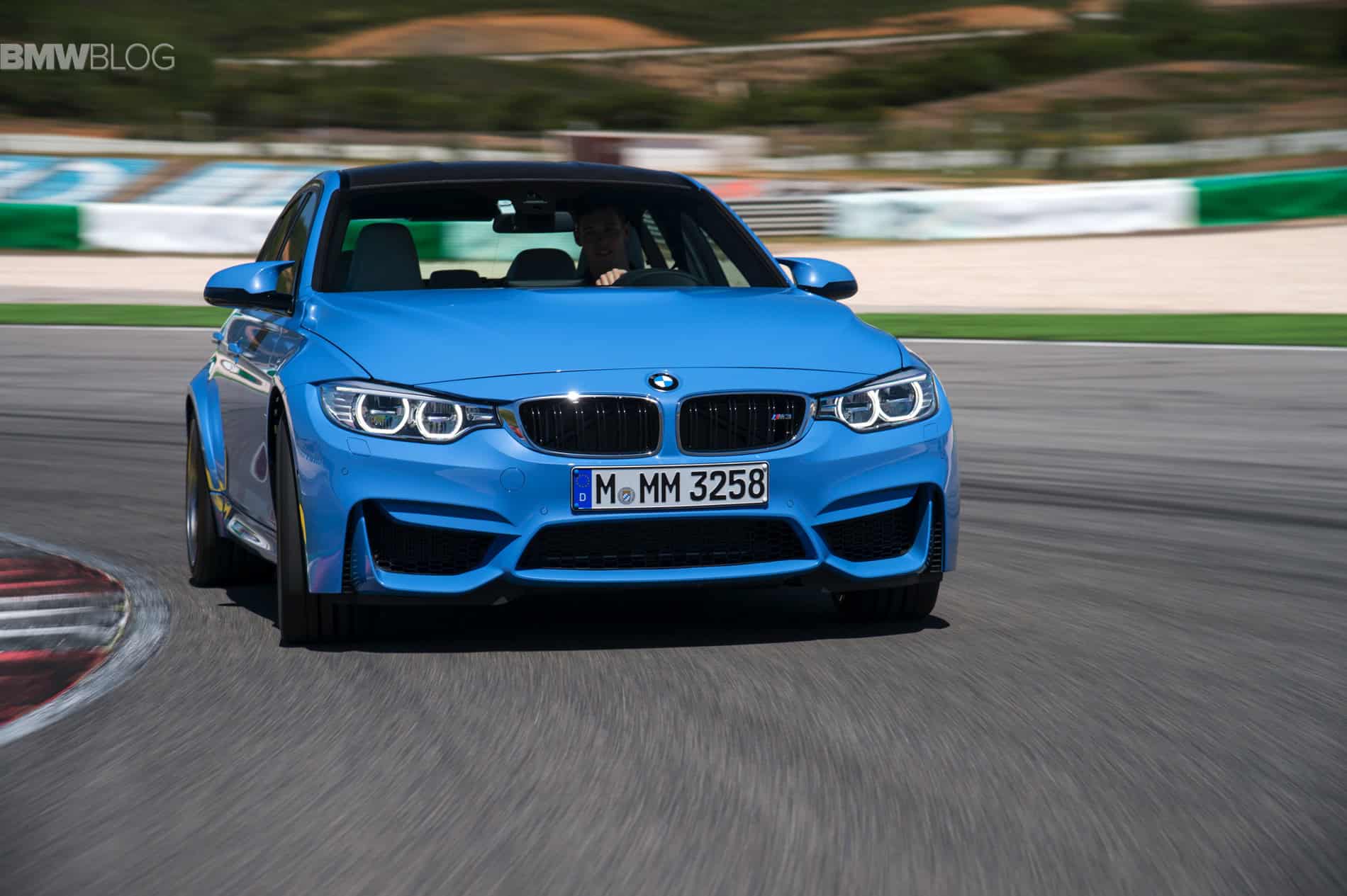The first day at the Portimão track was all about the Austin Yellow Metallic M4 and Yas Marina Blue Metallic M3, both with the $2,900 Getrag M-DCT paddle-flapper (which in North America is essentially considered a “standard option” until you de-content it out by checking the manual tranny box. This also brings the car’s price pleasantly downward.) All metallic paint jobs cost $550 extra, by the by, the only no-cost tint being Alpine White non-metallic which looks pretty dang fine, too.