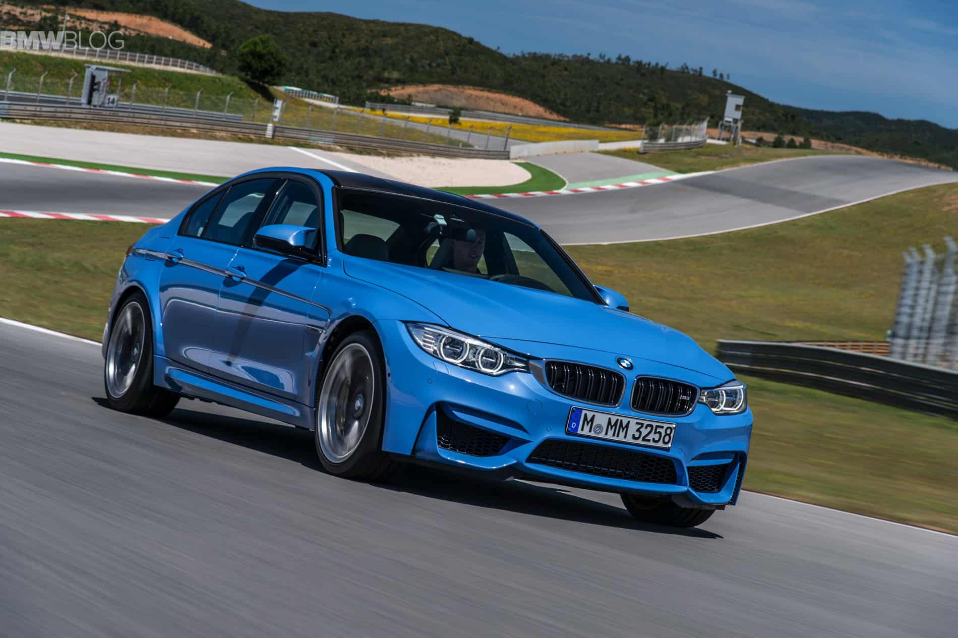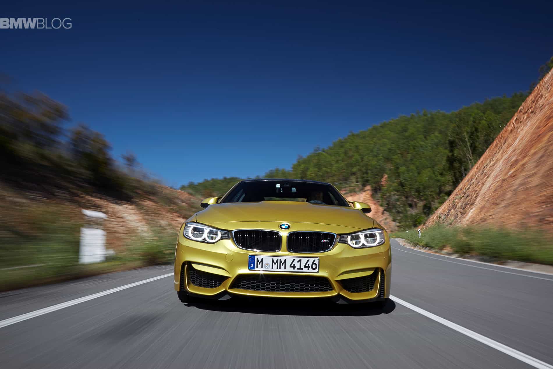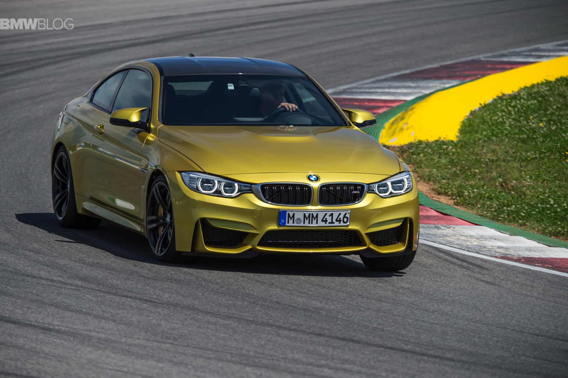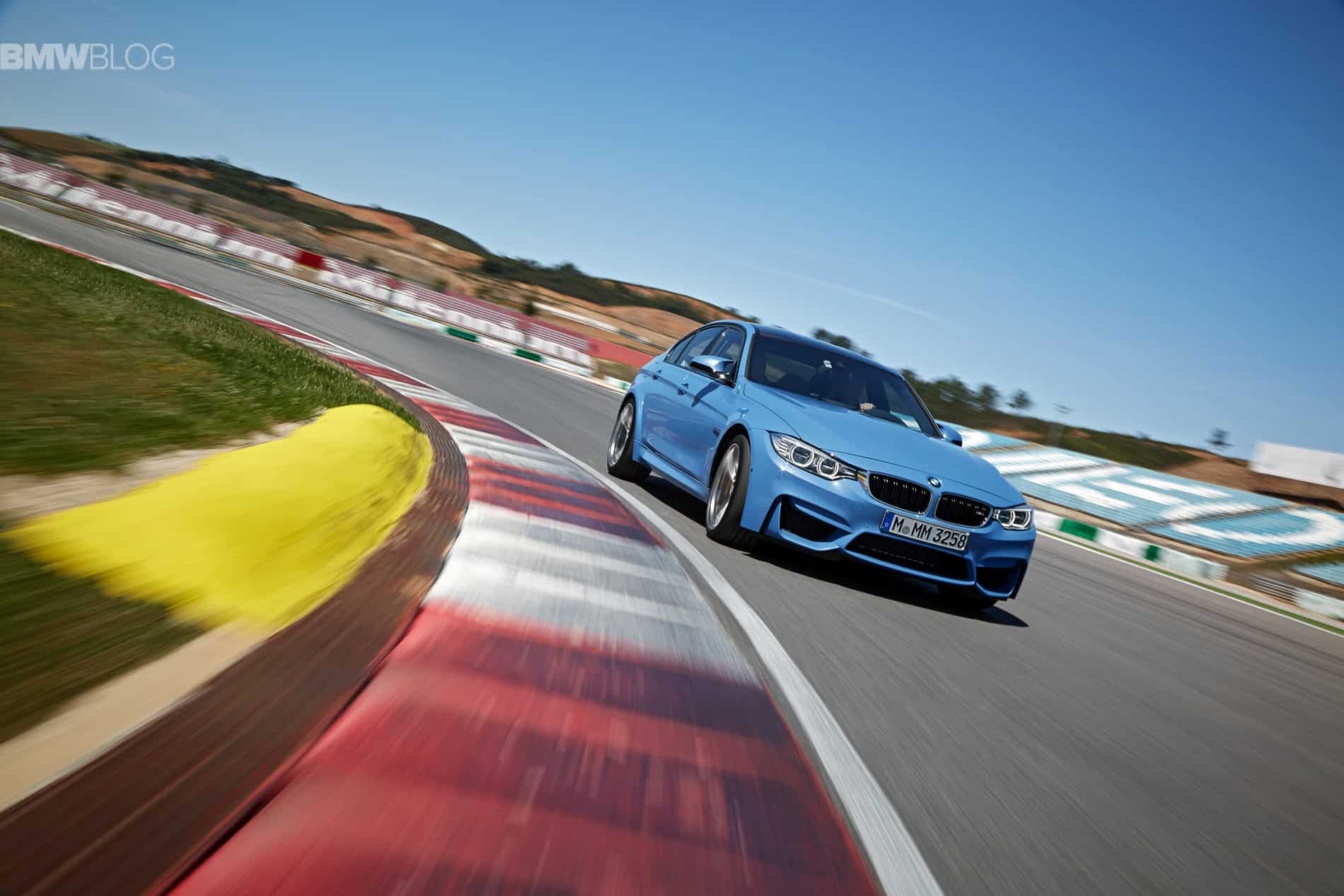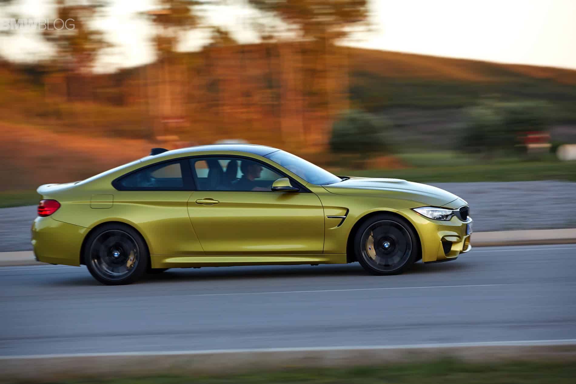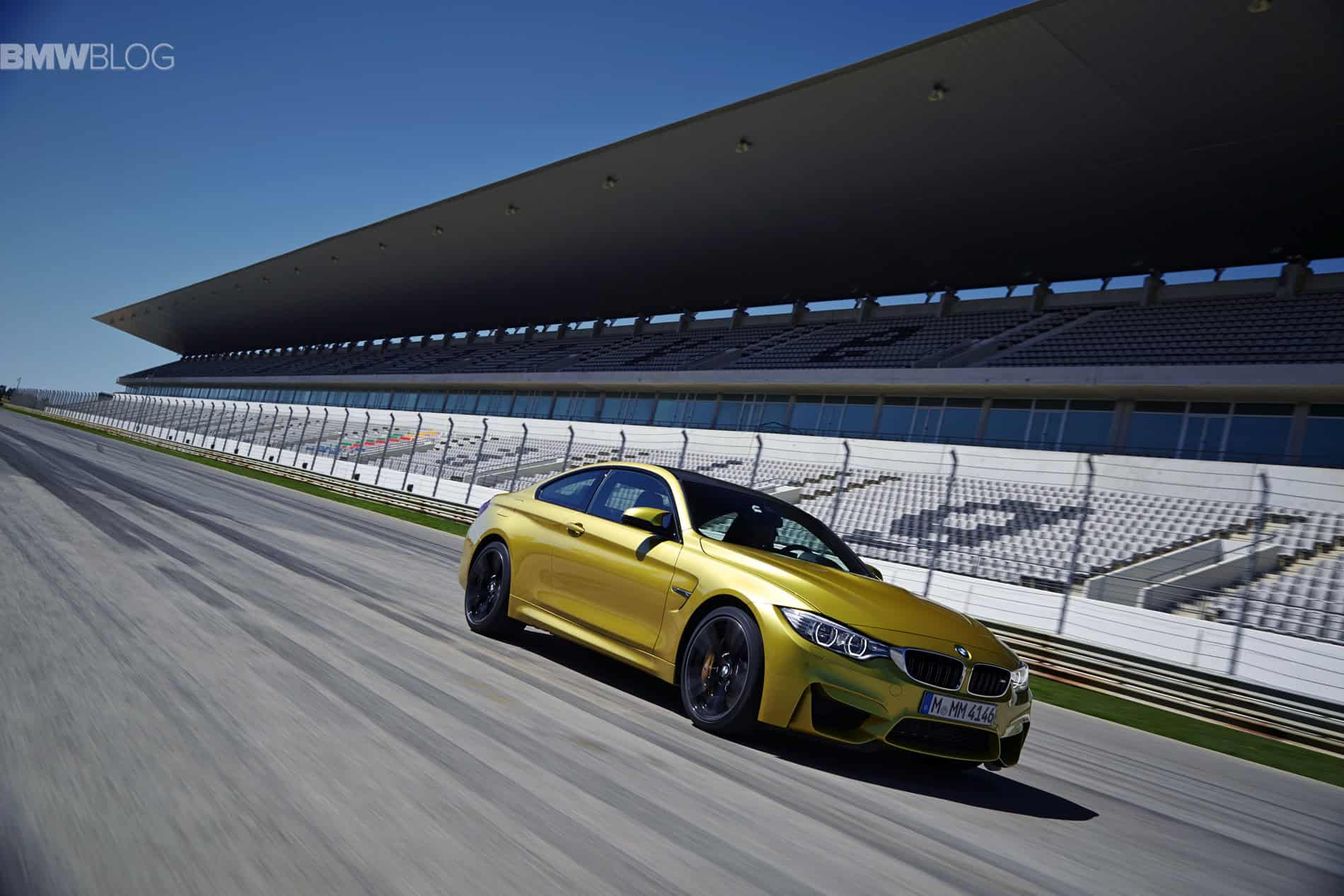 The first day at the Portimão track was all about the Austin Yellow Metallic M4 and Yas Marina Blue Metallic M3, both with the $2,900 Getrag M-DCT paddle-flapper (which in North America is essentially considered a “standard option” until you de-content it out by checking the manual tranny box. This also brings the car’s price pleasantly downward.) All metallic paint jobs cost $550 extra, by the by, the only no-cost tint being Alpine White non-metallic which looks pretty dang fine, too.