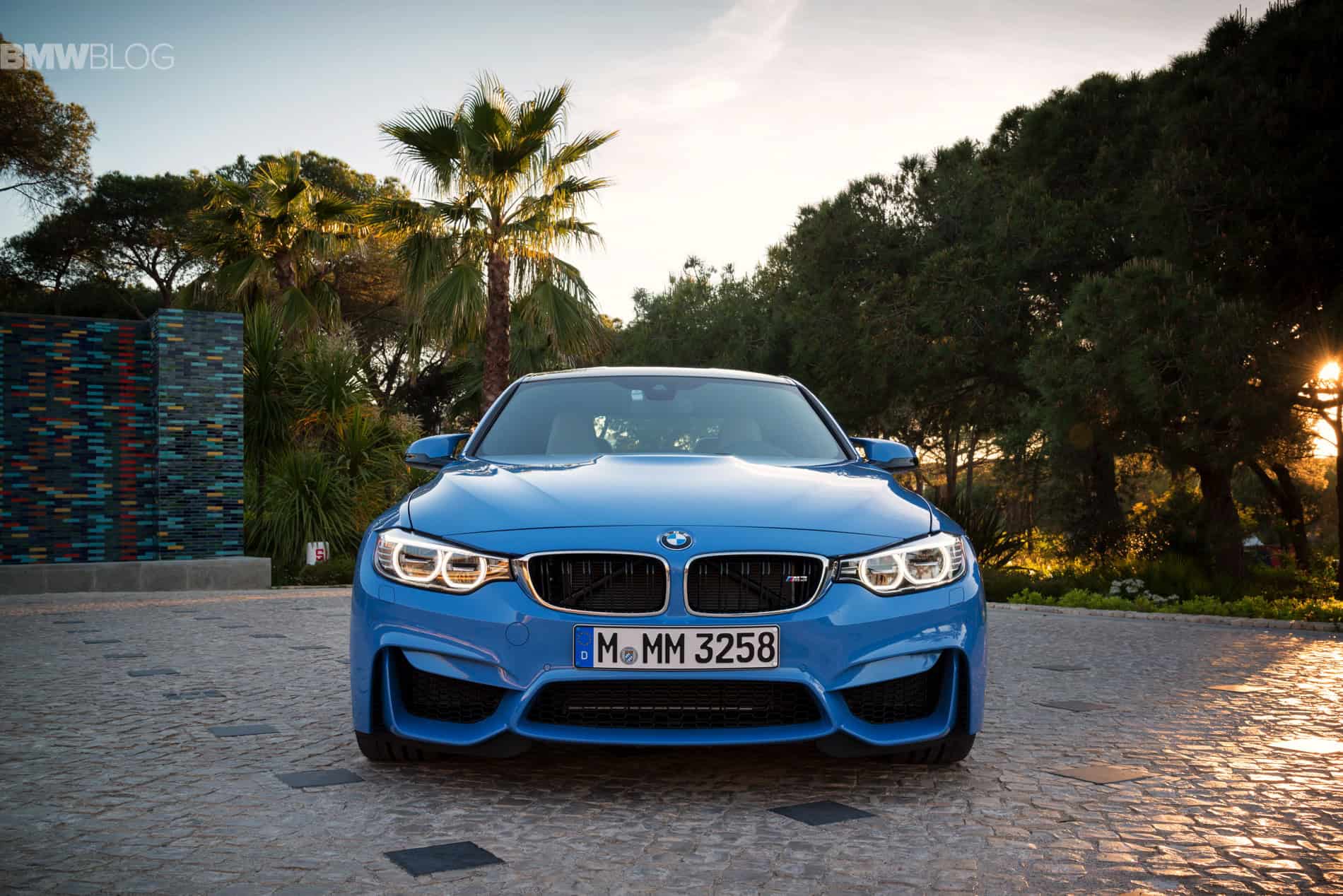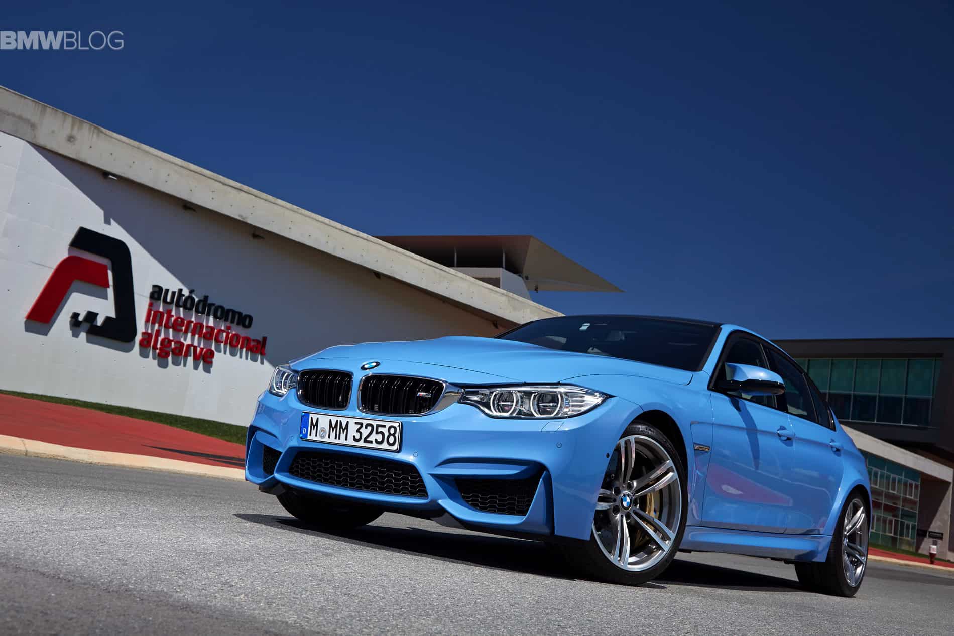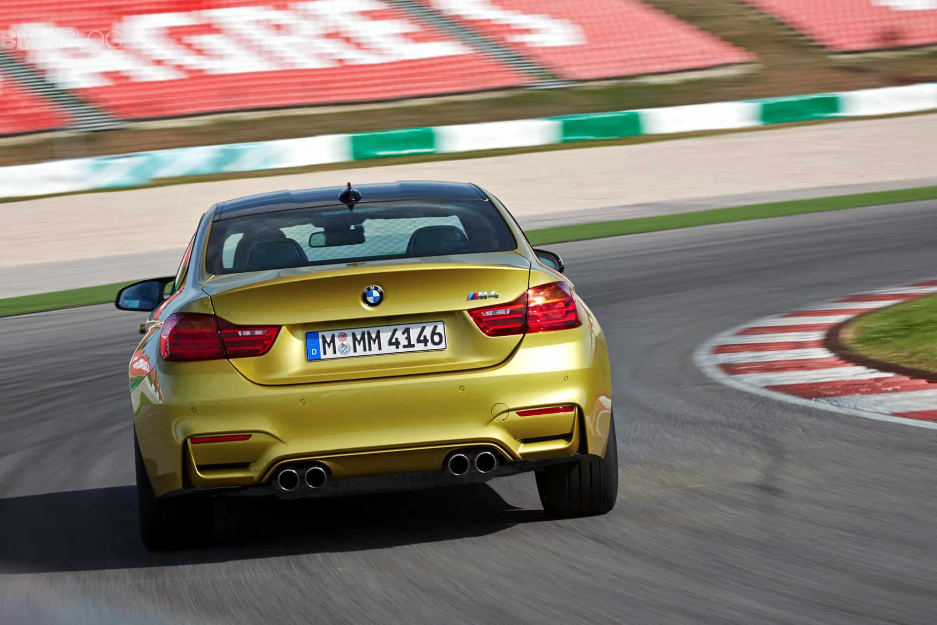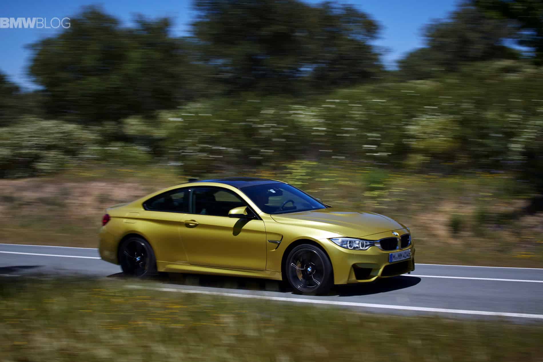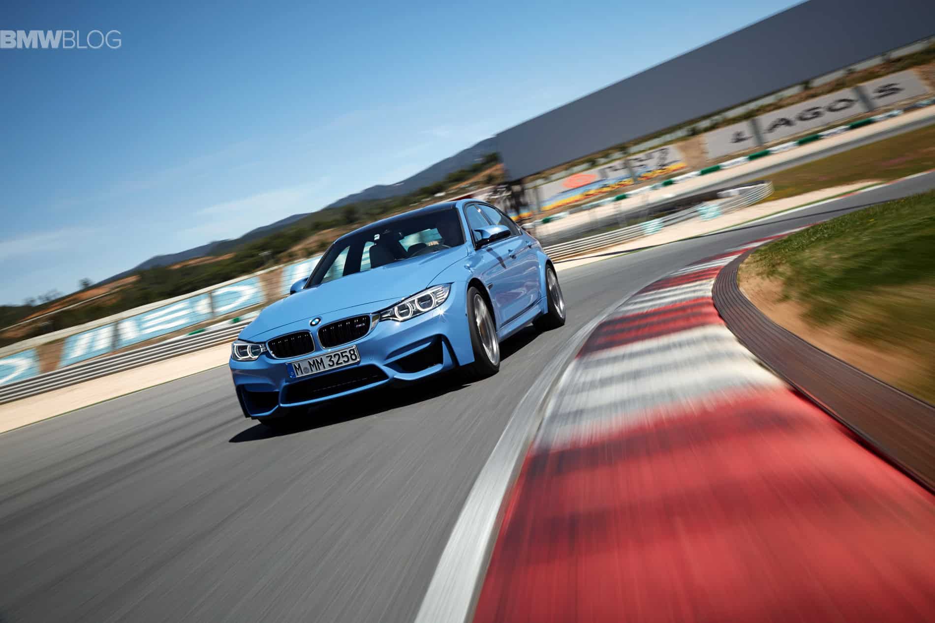 The first day at the Portimão track was all about the Austin Yellow Metallic M4 and Yas Marina Blue Metallic M3, both with the $2,900 Getrag M-DCT paddle-flapper (which in North America is essentially considered a “standard option” until you de-content it out by checking the manual tranny box. This also brings the car’s price pleasantly downward.) All metallic paint jobs cost $550 extra, by the by, the only no-cost tint being Alpine White non-metallic which looks pretty dang fine, too.