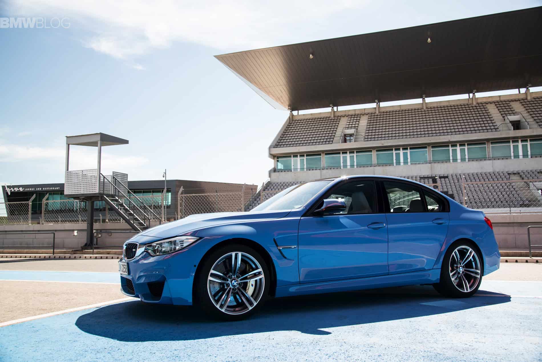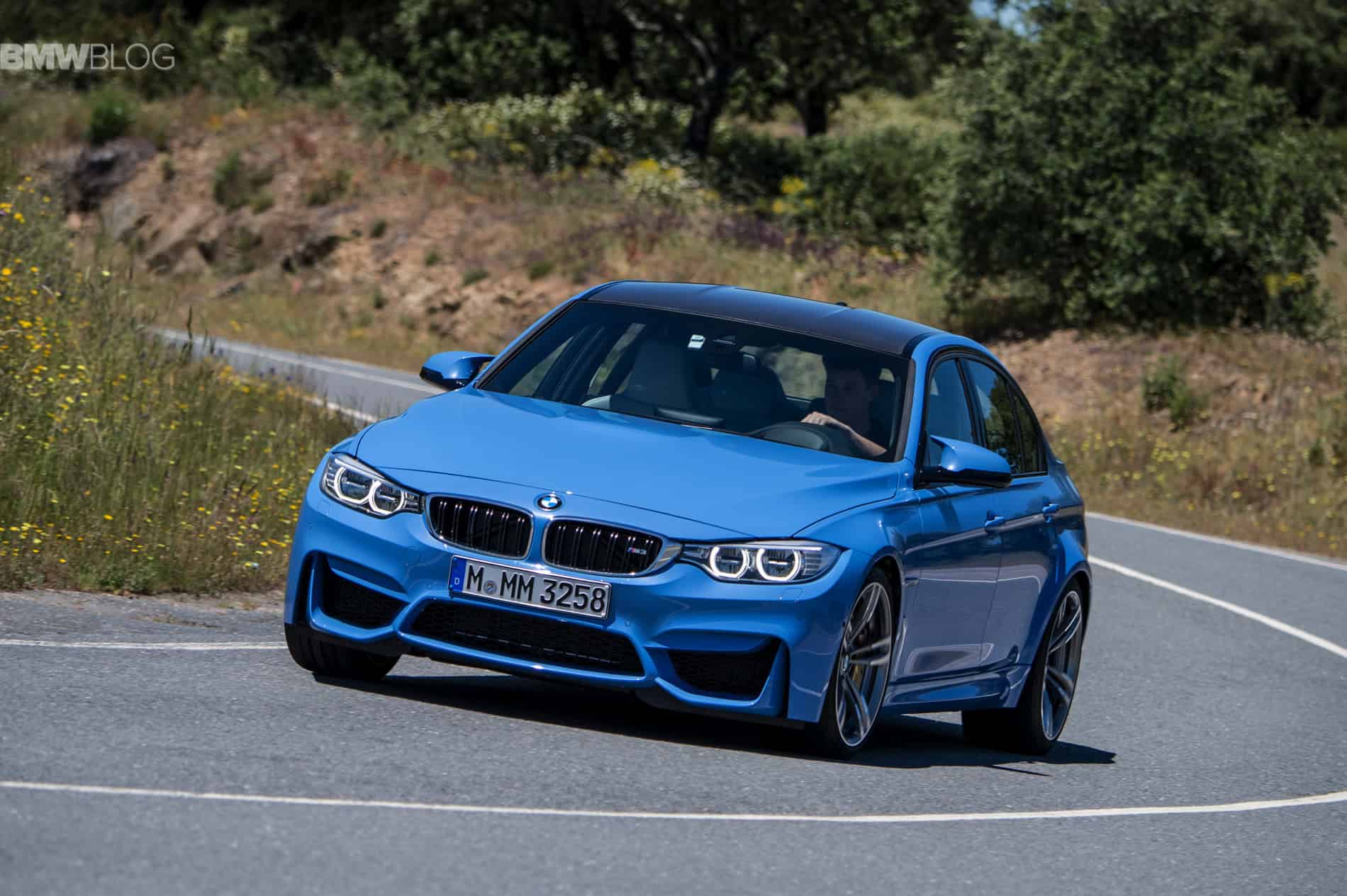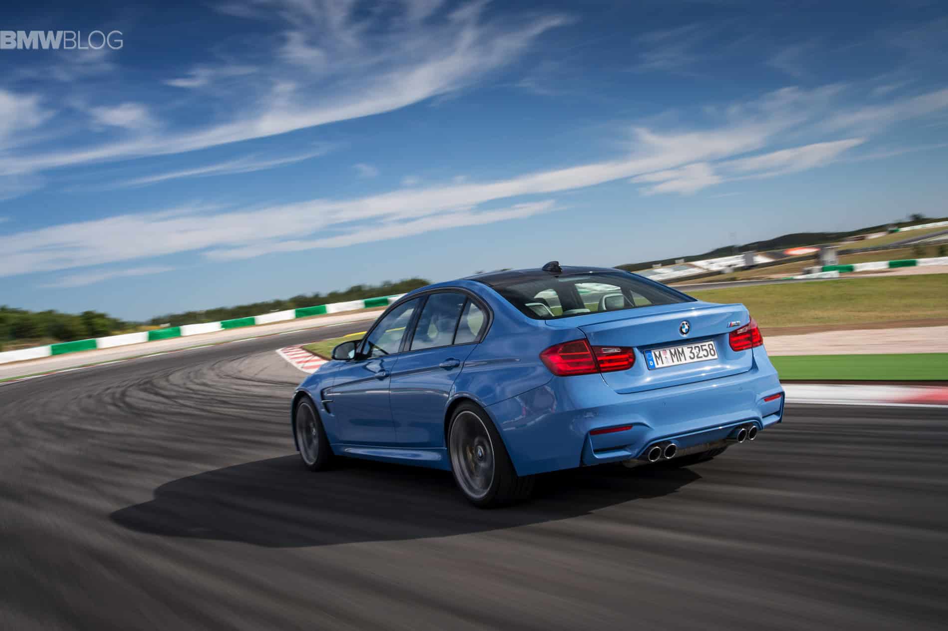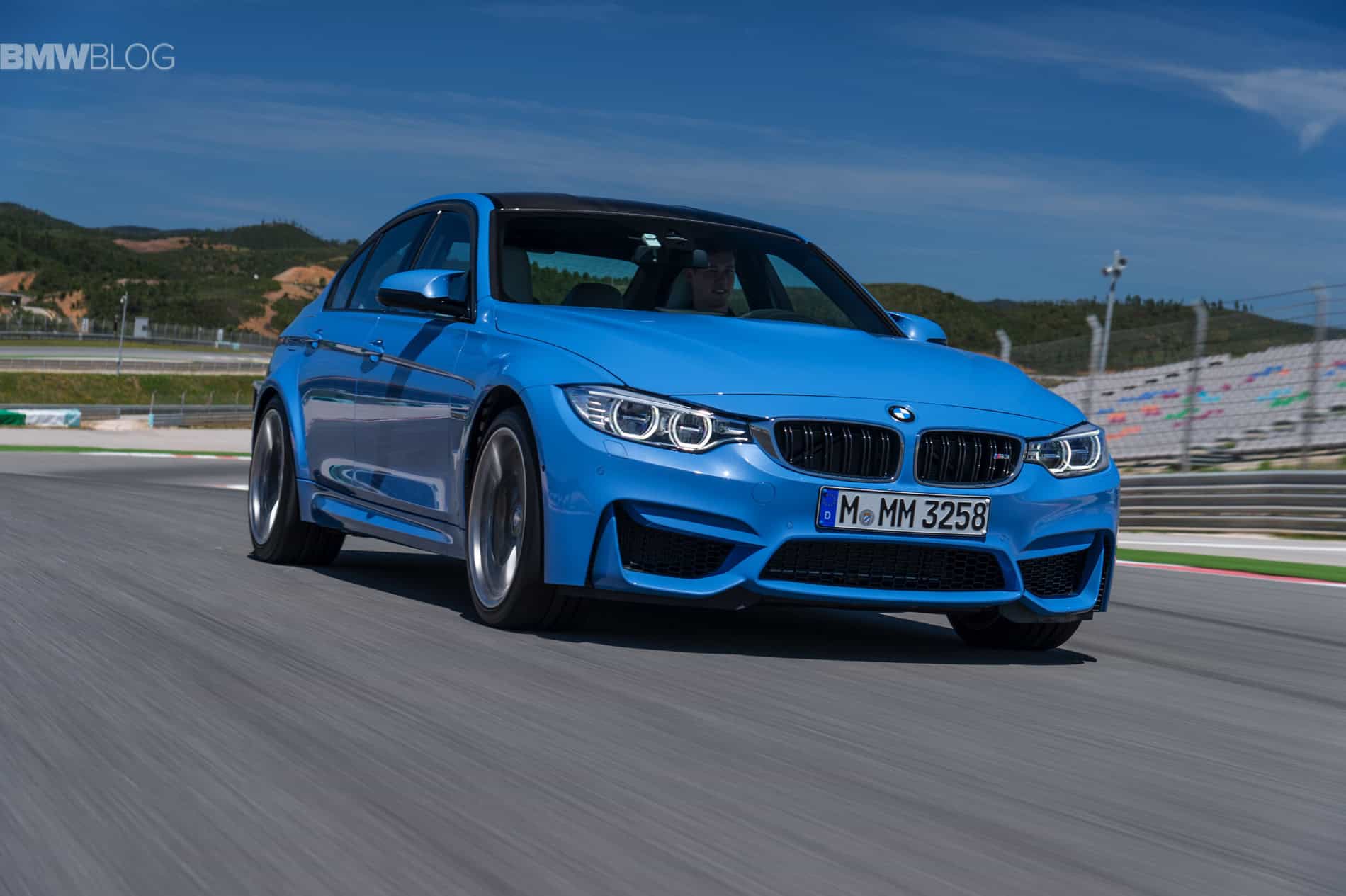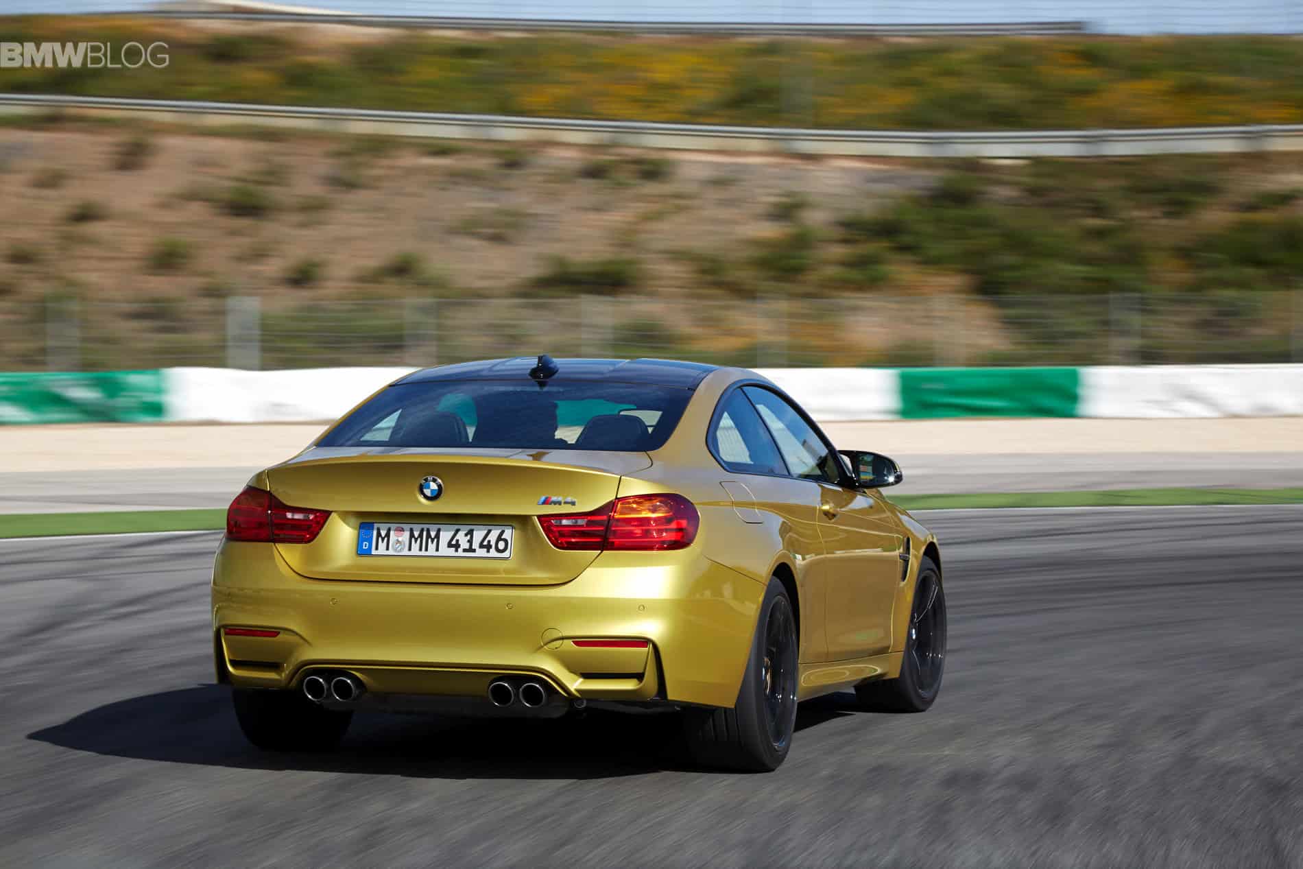 The first day at the Portimão track was all about the Austin Yellow Metallic M4 and Yas Marina Blue Metallic M3, both with the $2,900 Getrag M-DCT paddle-flapper (which in North America is essentially considered a “standard option” until you de-content it out by checking the manual tranny box. This also brings the car’s price pleasantly downward.) All metallic paint jobs cost $550 extra, by the by, the only no-cost tint being Alpine White non-metallic which looks pretty dang fine, too.