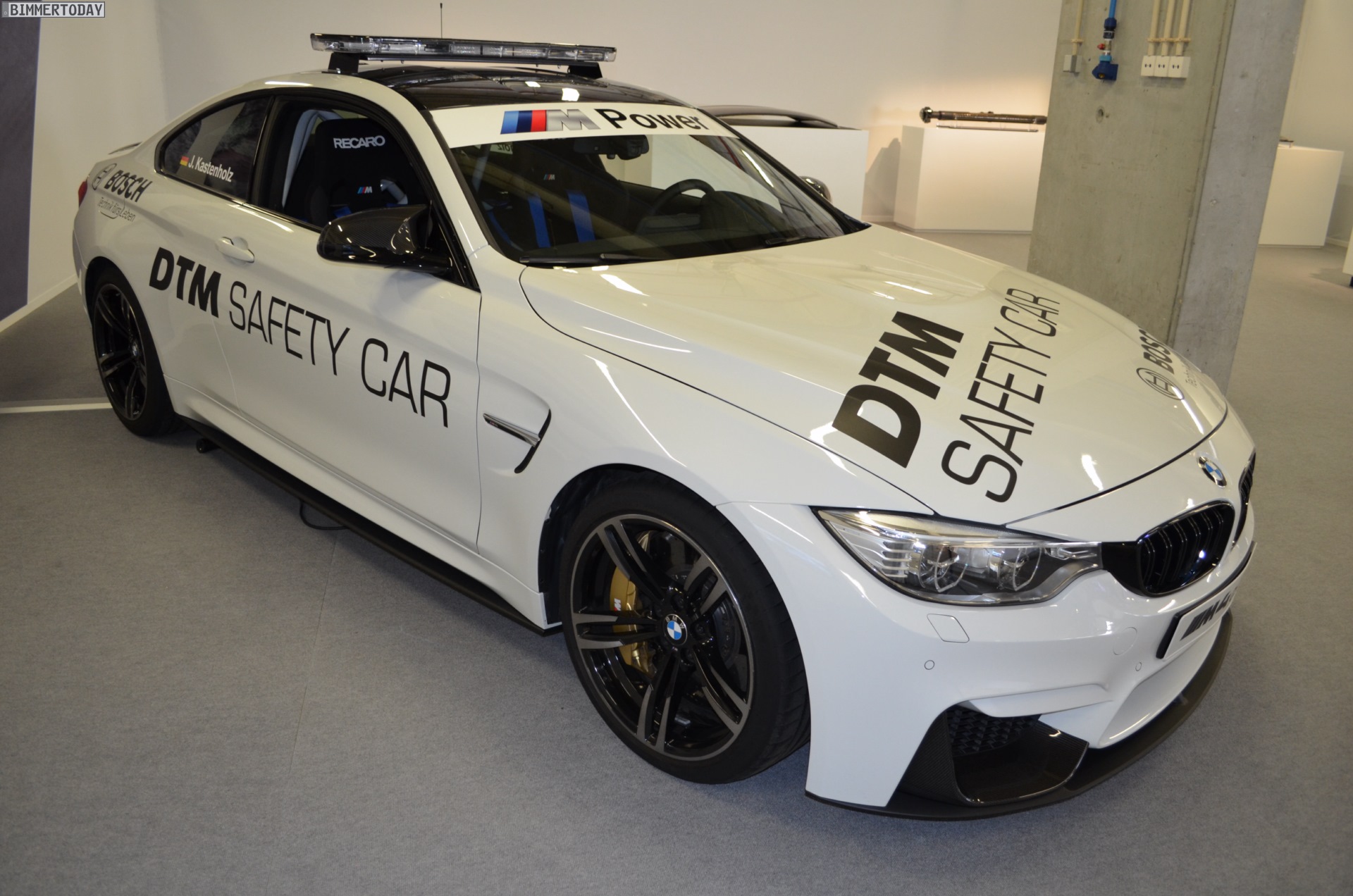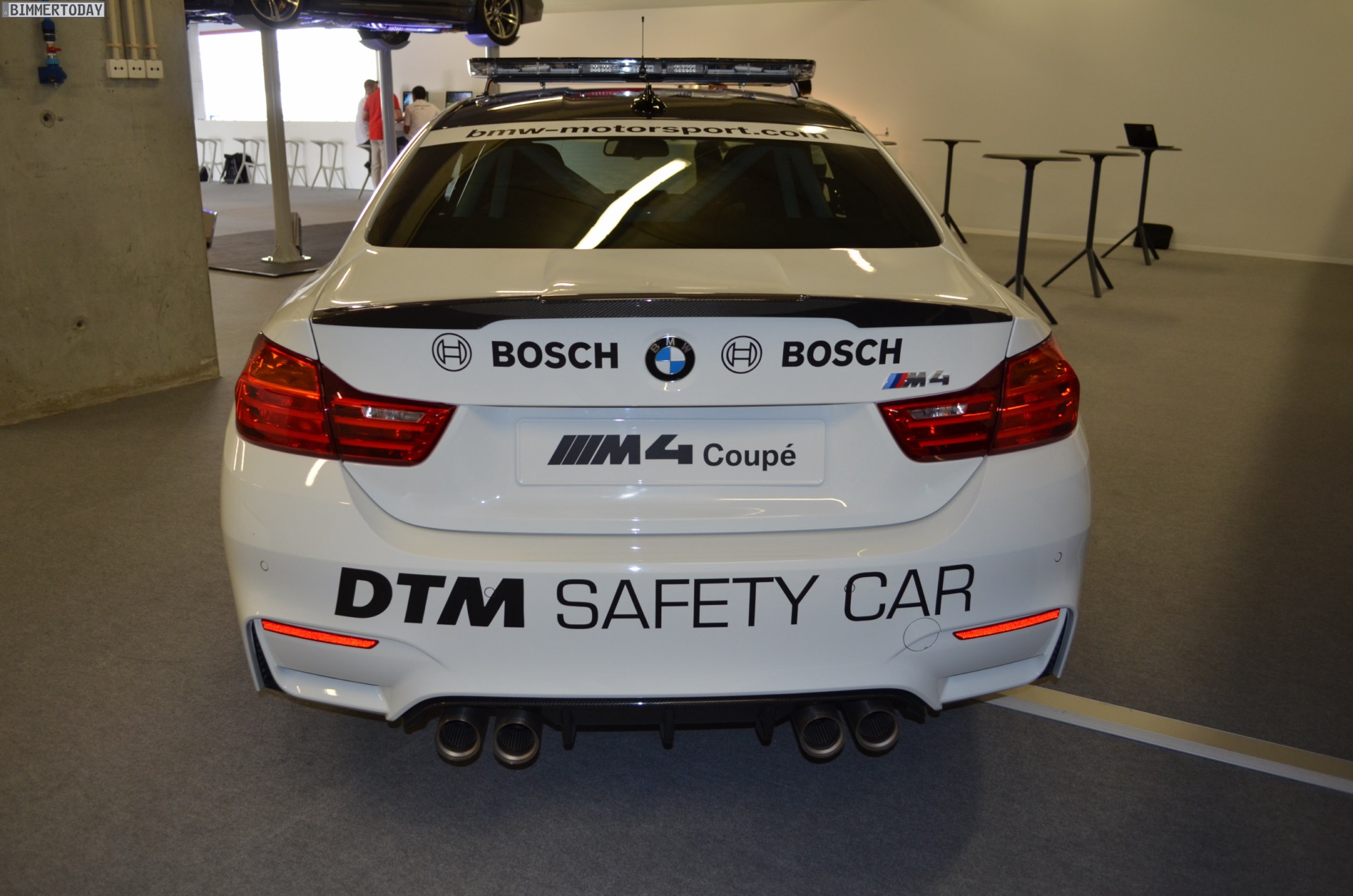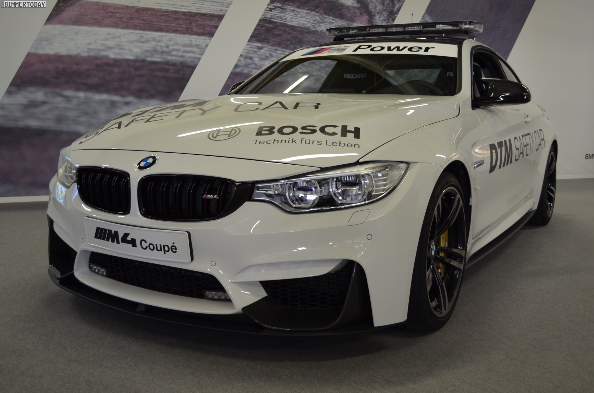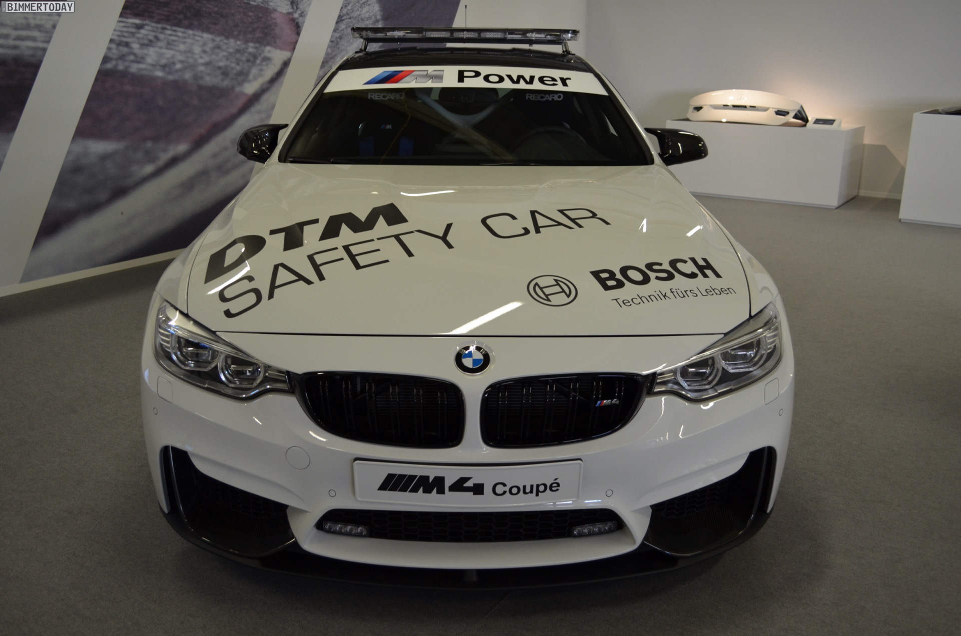 The basic car was assembled at the BMW plant in Munich. From there, the BMW M4 Coupe went to the BMW M factory in Garching, where the assembly and modifications continued by hand. These included the technicians removing the rear seat of the car and installing a roll cage and Recaro racing seats with Schroth belts for its outings as a safety car. Furthermore, the car was also equipped with LED lights on the front apron, a radio communication system, LED lights on the roof and a special livery.