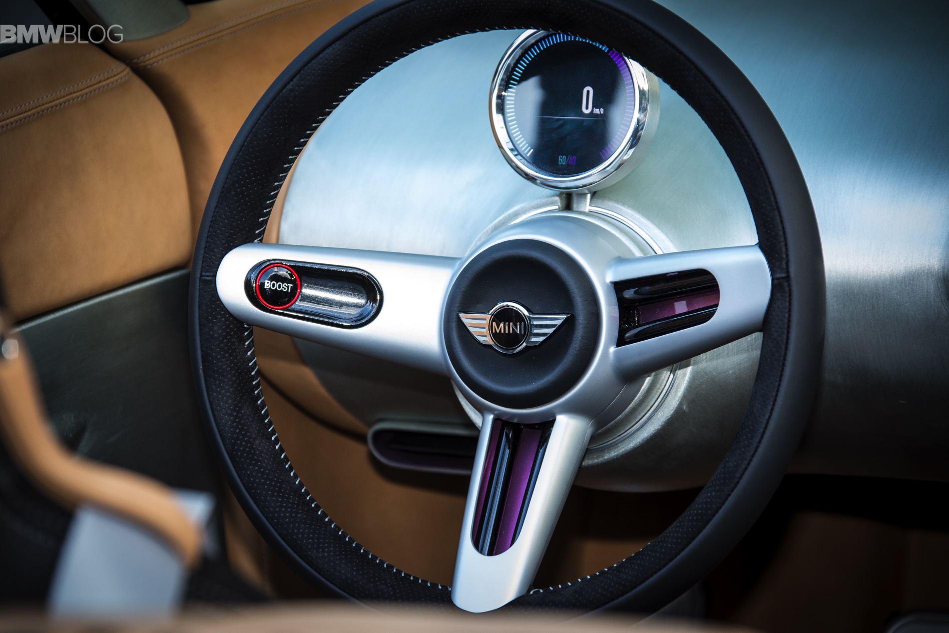Many classic MINI design cues have been carried over, including a hexagonal shaped grille, oval shaped headlamps, bonnet stripes and multi-spoke wheels. They are combined with a series of traditional styling touches found on a long history of Touring Superleggera models. The Superleggera Vision boasts classic roadster proportions with a long probing nose, cabin set well back within the wheelbase and a rear end with minimal overhang. The unique interior uses a single untreated sheet of aluminum for the rounded dashboard fascia and large centrally mounted monitor that harks back to the instrument panel used on the original Mini. Here is a photo gallery: