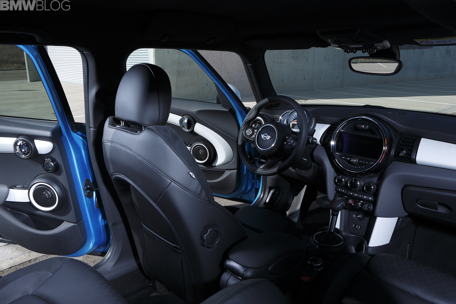 Its wheelbase has been expanded by 72 millimeters (to 2,567 millimeters) over the F56 model and creates space for three seats in the rear, with 72 millimeters more foot space and legroom, 15 millimeters more headroom and 61 millimeters more interior width at elbow height.