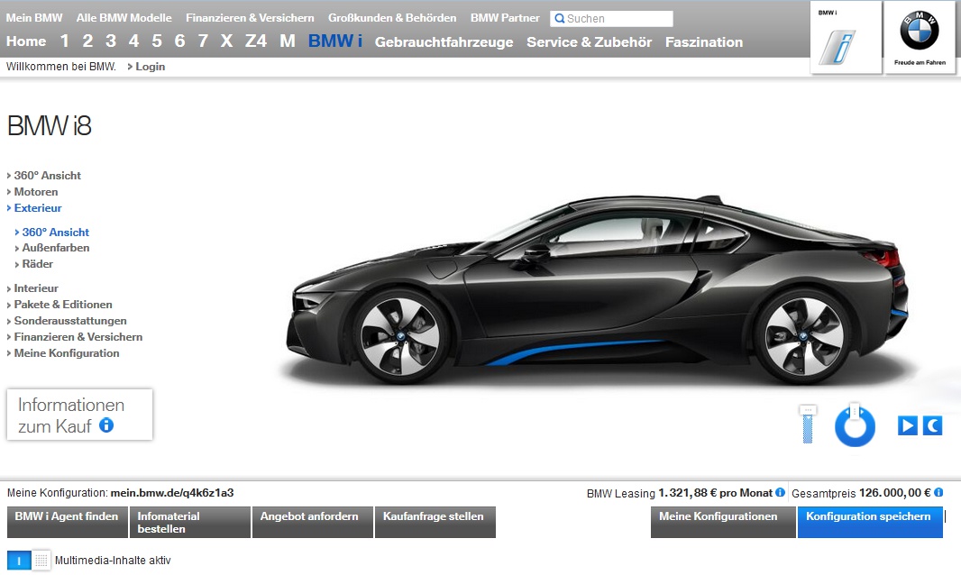 The online configurator of the BMW i8 just went live on www.bmw.de.