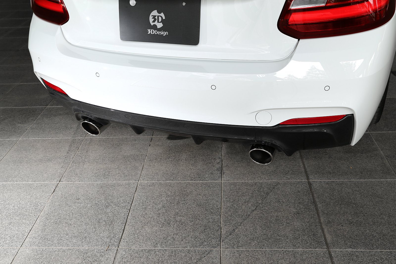The F22 M235i is a very special car and 3D Design worked diligently to create a kits that maintained the aggressive spirit of the vehicle. The program offers a carbon fiber front lip spoiler, carbon fiber trunk spoiler, and both a factory dual tip as well as a quad tip carbon fiber rear diffuser. The 3D Design interior accessories including the shift knob carry over to the F22 M325i manual transmission.