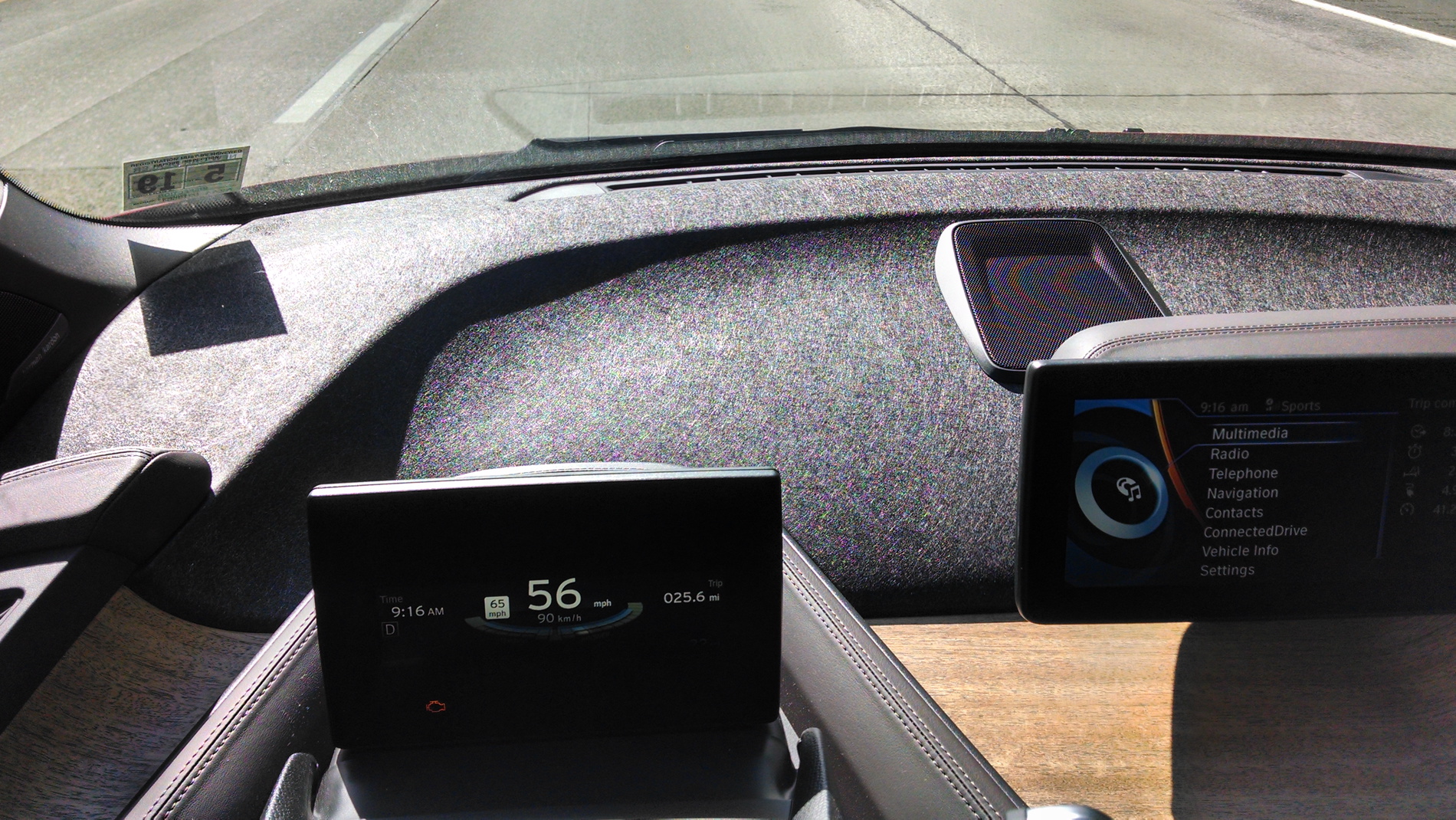 Windshield Glare. The majority of the top deck of the dashboard is made of compressed kenaf fibers. The use of this material has garnered some criticism because some people think it looks cheap, and not worthy of being in a car made by a premium automaker. I actually like the look of it but what I don’t like is that in direct sunlight I can see the reflection of the entire dashboard up on the windshield. After a few weeks I’m getting used to it and it isn’t as annoying as it was when I first noticed it, but it definitely isn’t ideal. The shiny kenaf surface does cast a pretty clear reflection on bright, sunny days.