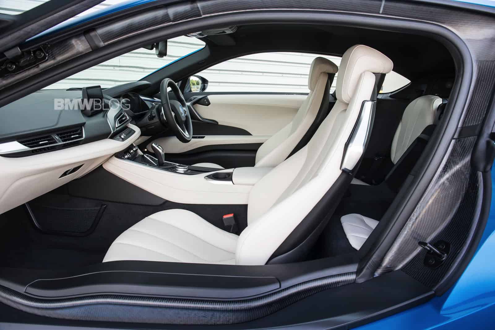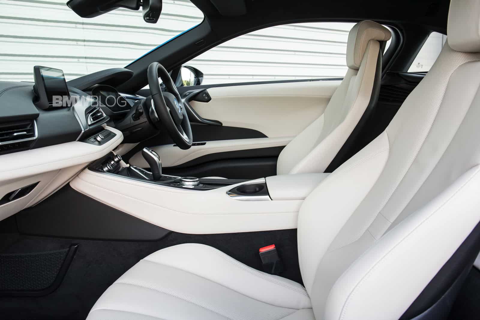 These latest photos show the BMW i8 painted in the Protonic Blue color. BMW i8 can be specified in a choice of four colors, three of which have been created exclusively for BMW i. All the paint finishes provide a striking contrast to the black belt: Ionic Silver, Protonic Blue, Crystal White and Sophisto Grey.