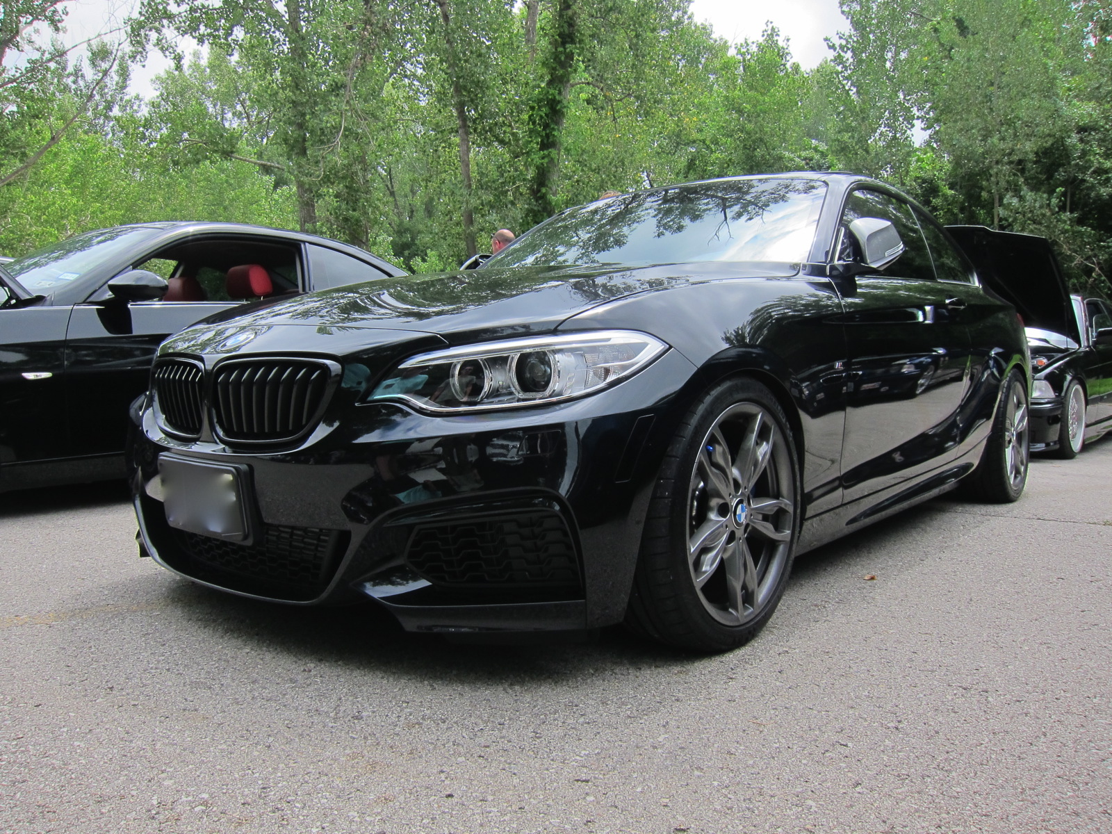 Note in the track picture of the stock M235i how close the front air dam on the passenger side is to tarmac under hard cornering versus the drivers side.