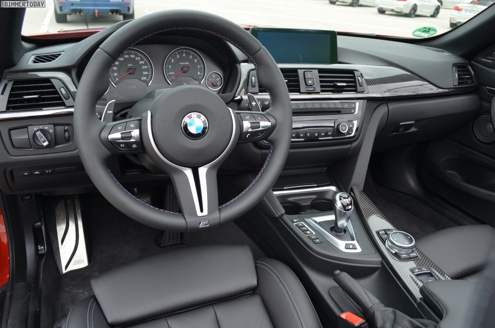 Shown below is the M4 Convertible in the Sakhir Orange color which first debuted in the M6 Coupe. The M3 and M4 Coupe/Convertible come with a variety of well known colors as well as two new ones: Yas Marina Blue Metallic and Austin Yellow Metallic. The other exterior colors are: Alpine White, Mineral Grey Metallic, Sakhir Orange, Black Sapphire Metallic, Silverstone Metallic and Mineral White Metallic.
