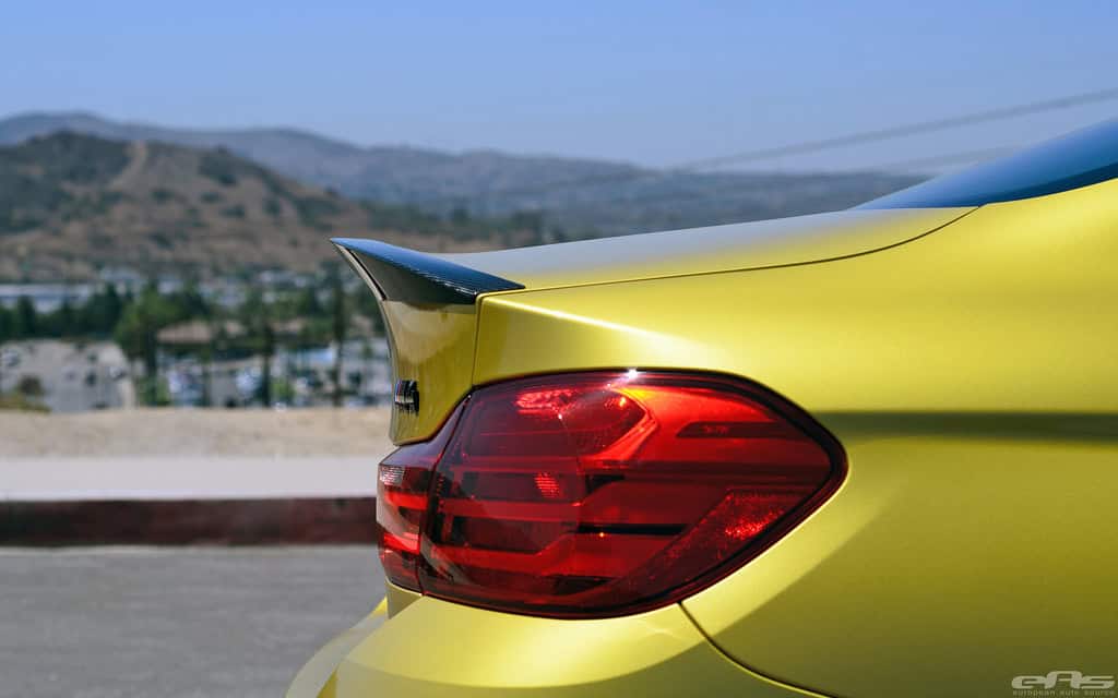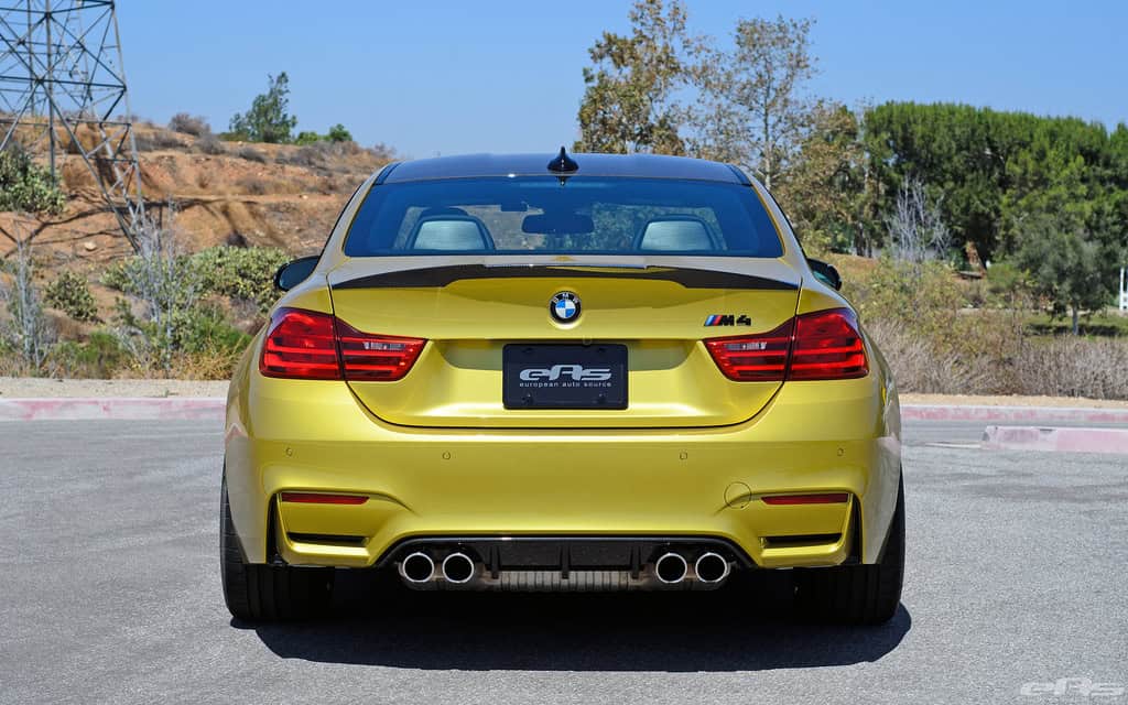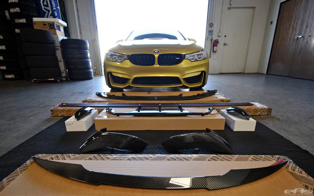 “Having seen, handled and installed a lot of aftermarket parts, this has to be some of the best quality and designed pieces we’ve seen. All parts fit perfectly with the M4’s contours with no visible gaps, even for the most scrutinized types. Extra bonus on the M4 since there isn’t a spoiler requiring removal like M3 (and previous models). As with the previous E9X M3 Performance line, all parts are 2×2 carbon weave, with exception of the lower lip and side blade attachments – quite possibly since they are in the impact zone close to the road.” – EAS