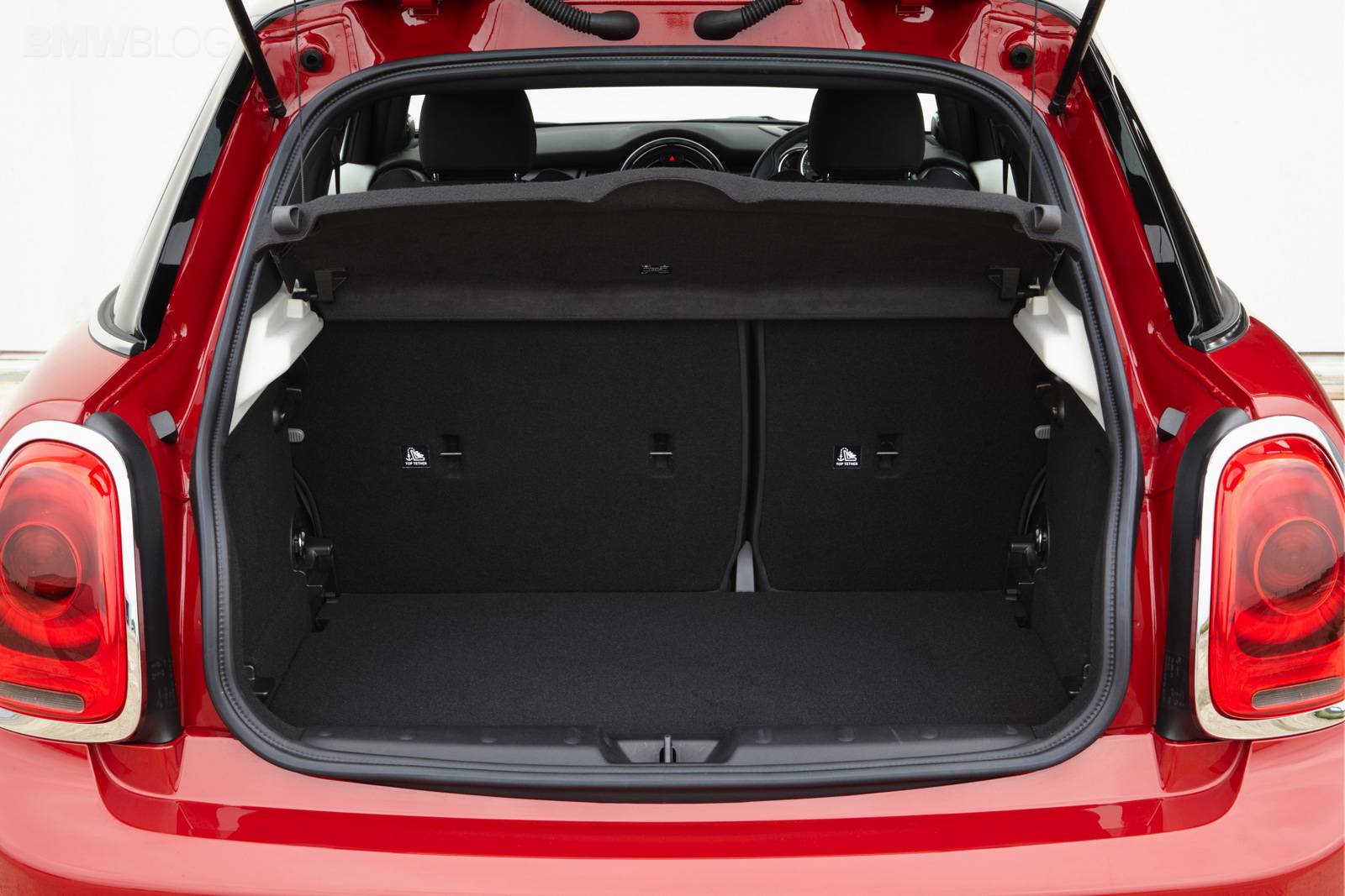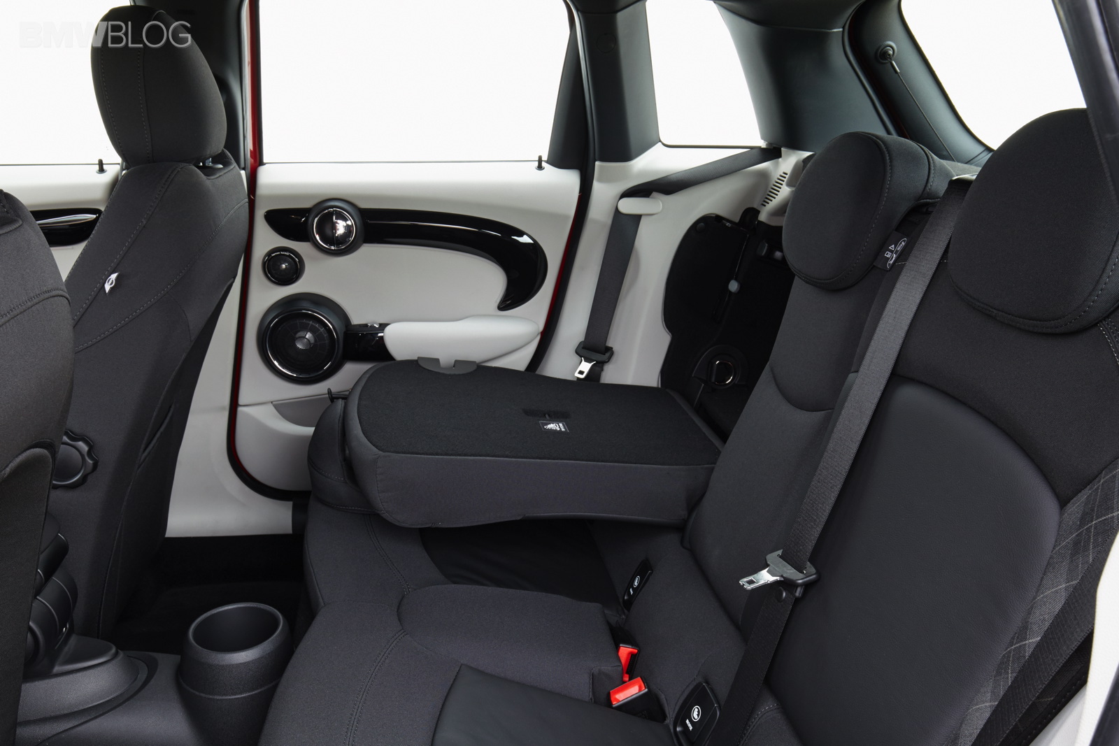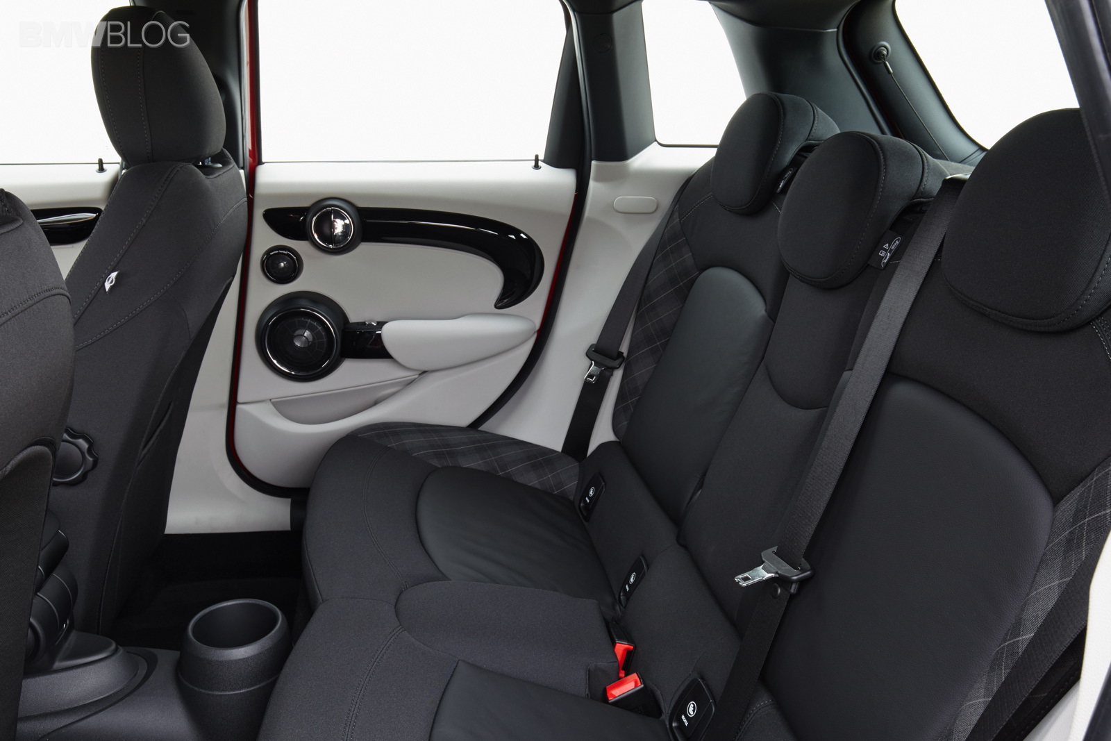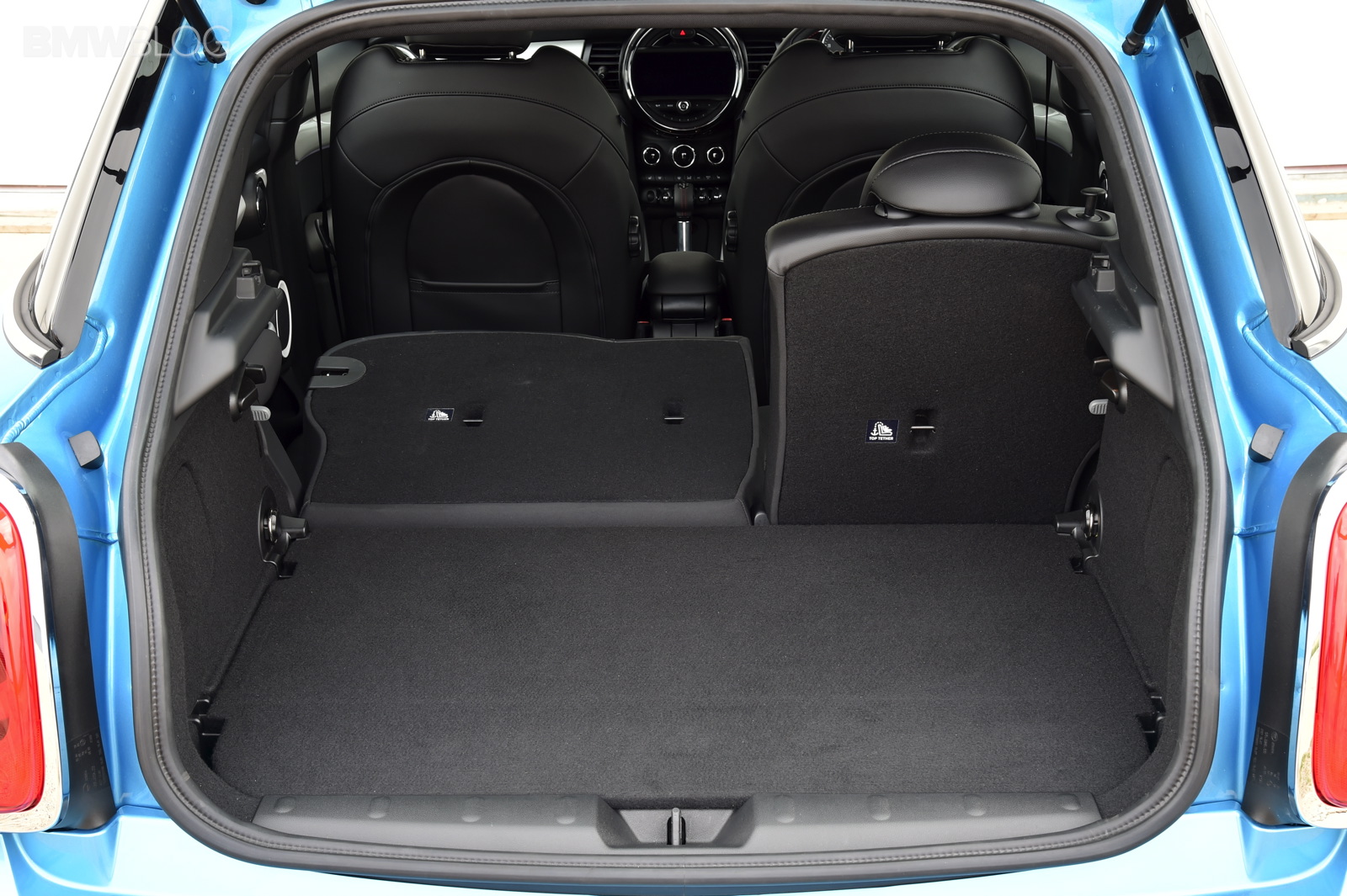 Wheelbase expanded by 72 millimetres as compared to the new MINI; this makes space for three seats at the rear of the MINI 5 door with 72 millimetres more foot space and legroom, 15 millimetres more headroom and 61 millimetres more interior width at elbow height as compared to the new MINI; what is more, luggage compartment space is now at 278 litres – 67 litres more than in the 3-door model; excellent figures in the small car premium segment in terms of legroom, headroom and luggage compartment volume; rear backrest with 60 : 40 split; optional storage package including luggage compartment floor which can be locked into place at varying points.
