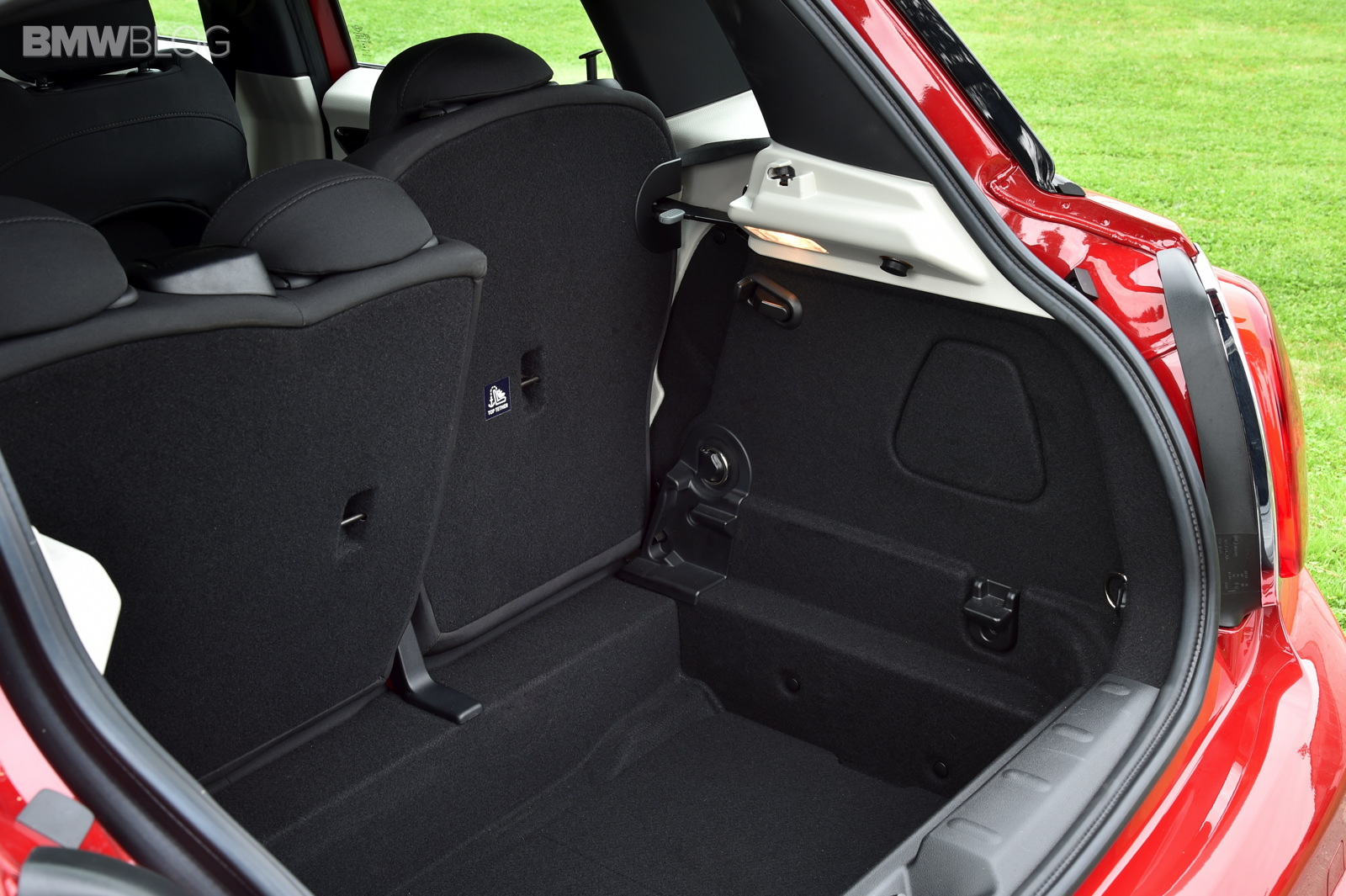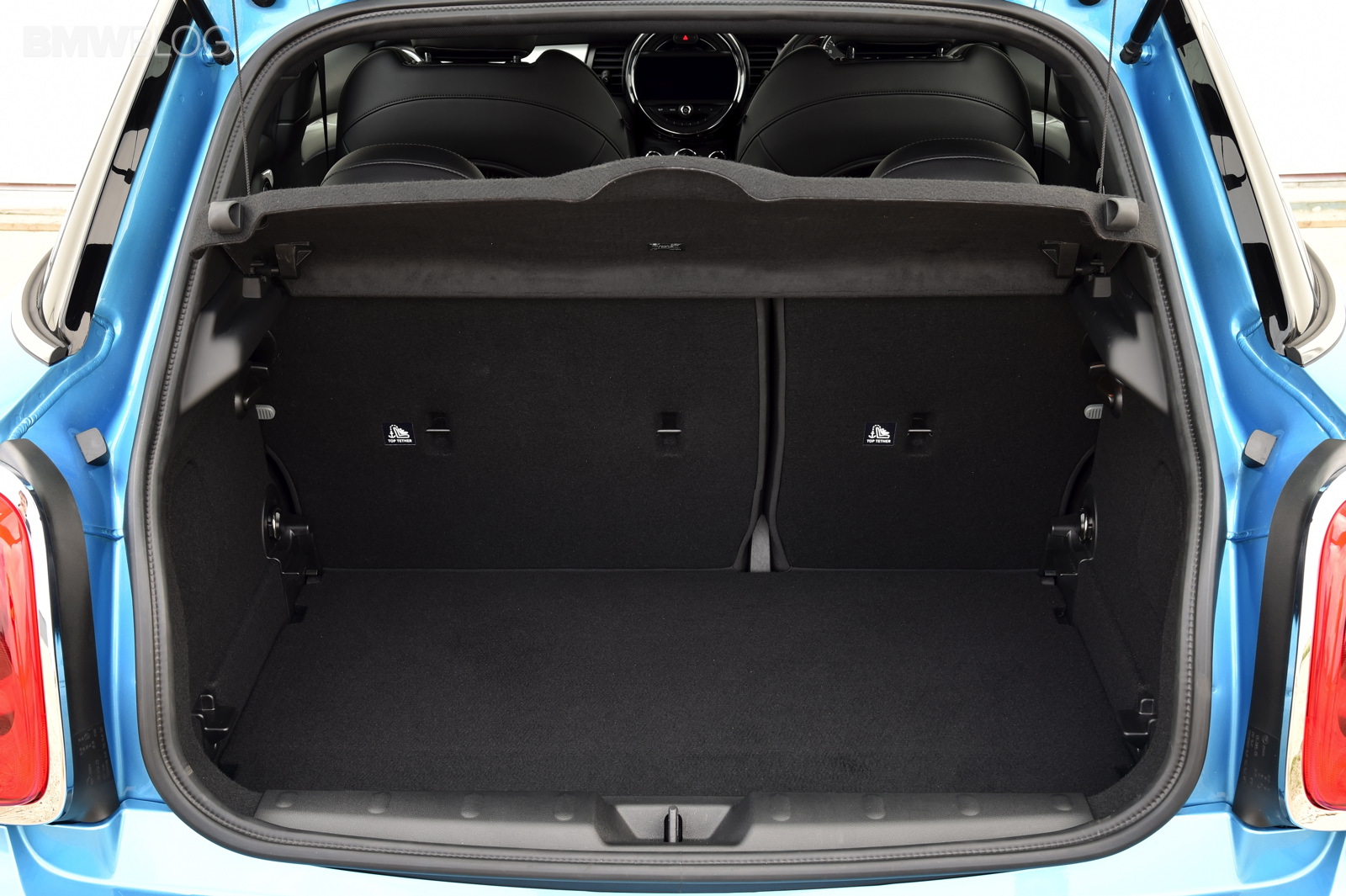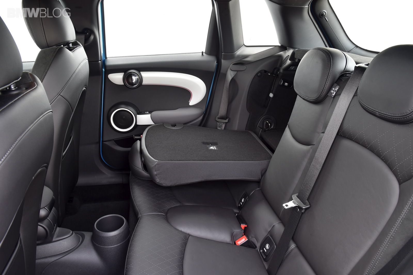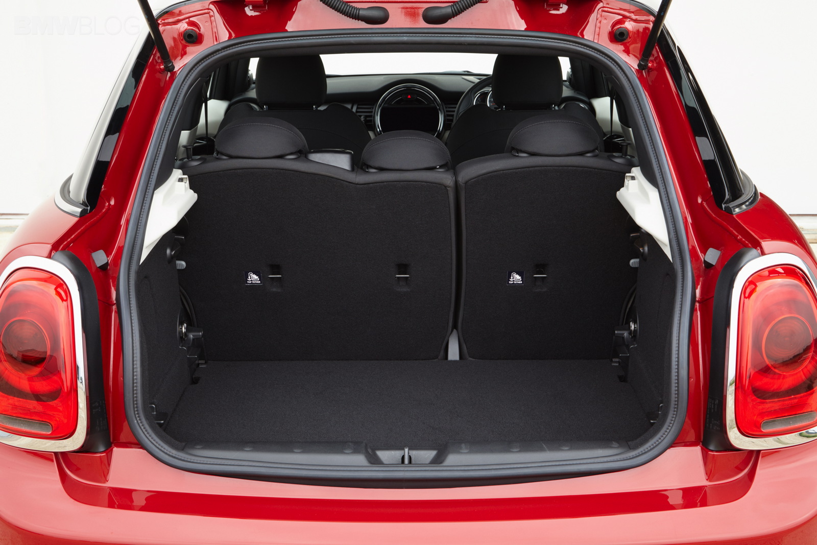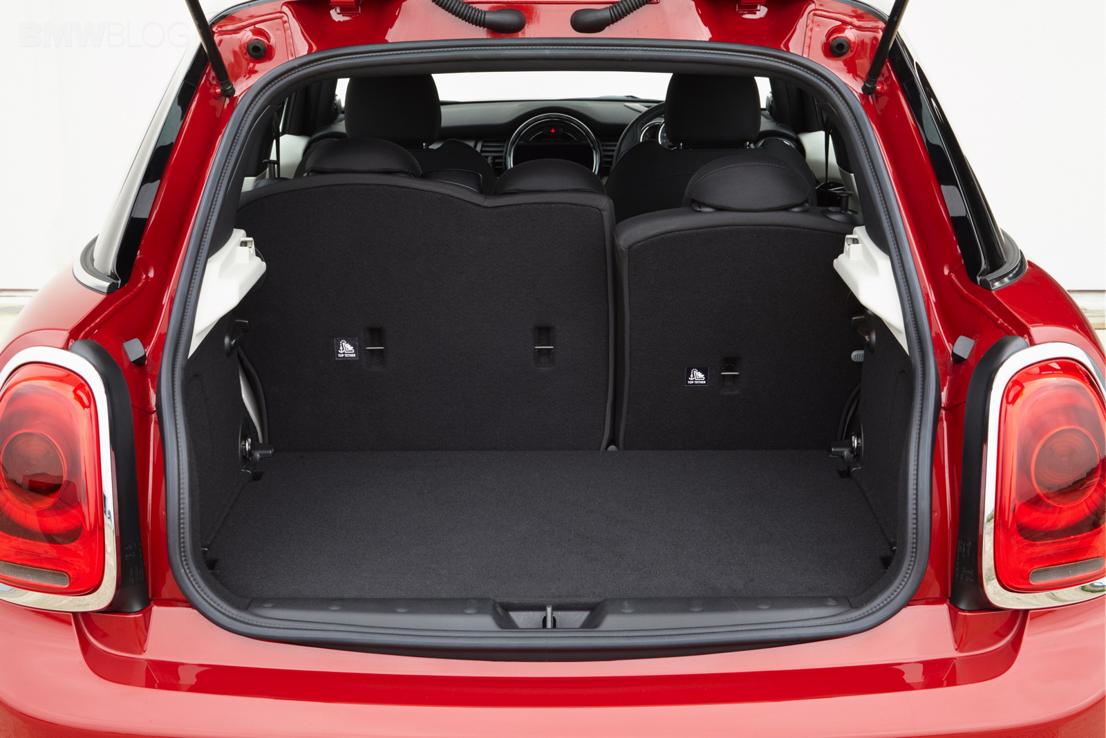 Wheelbase expanded by 72 millimetres as compared to the new MINI; this makes space for three seats at the rear of the MINI 5 door with 72 millimetres more foot space and legroom, 15 millimetres more headroom and 61 millimetres more interior width at elbow height as compared to the new MINI; what is more, luggage compartment space is now at 278 litres – 67 litres more than in the 3-door model; excellent figures in the small car premium segment in terms of legroom, headroom and luggage compartment volume; rear backrest with 60 : 40 split; optional storage package including luggage compartment floor which can be locked into place at varying points.