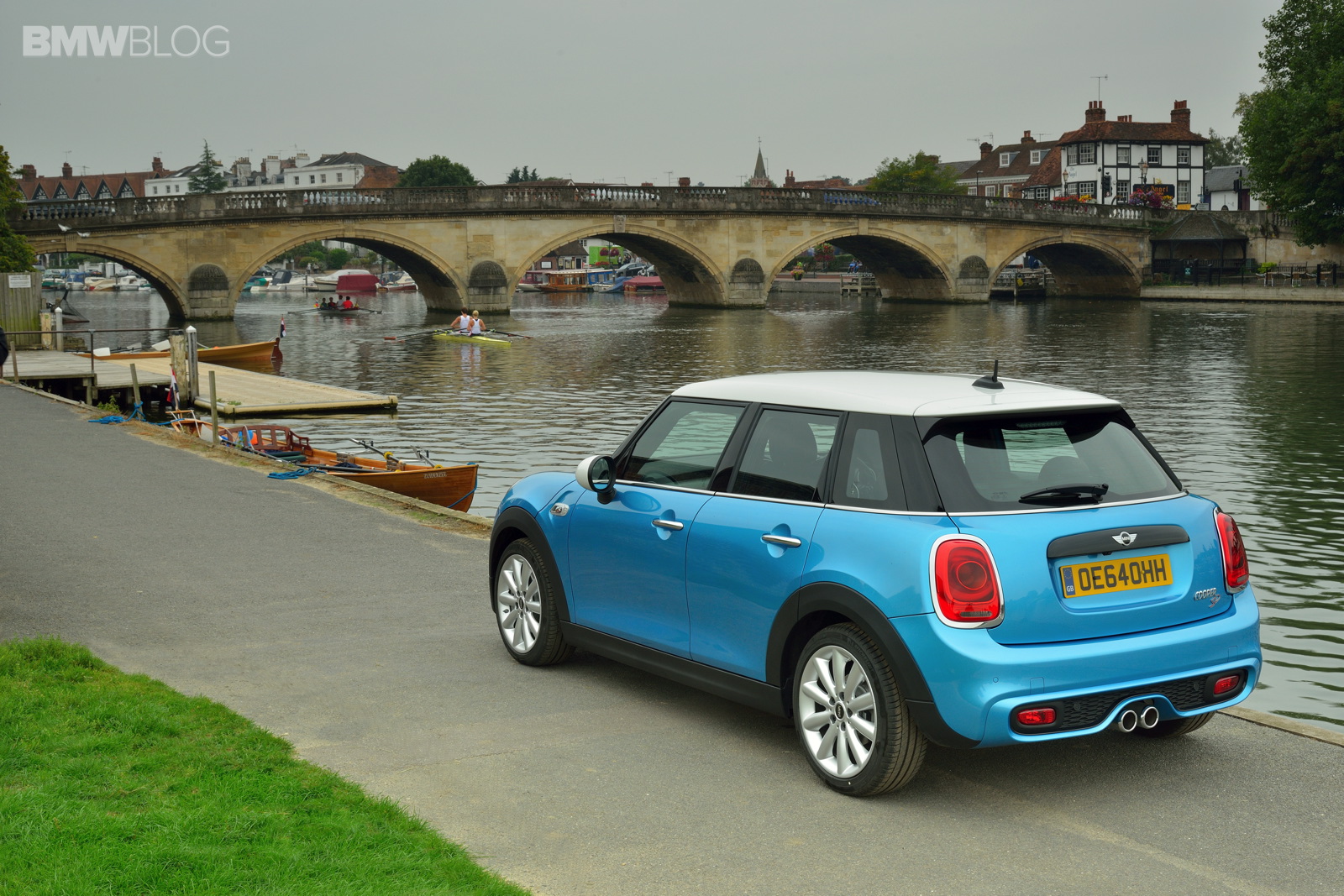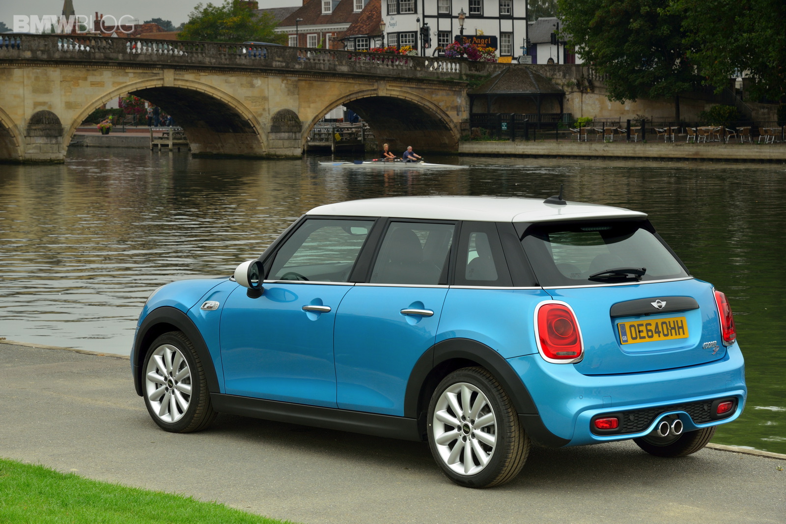 MINI 5 door with model-specific interpretation of the evolutionary exterior design advancements; characteristic brand styling and body structure combined with distinct proportions; sporty, stretched appearance due to the fact that body length is extended by 161 millimetres as compared to the new MINI to 3 982 millimetres (MINI Cooper S 5 door and MINI Cooper SD 5 door: 4 005 millimetres) with equal vehicle width and height increased by 11 millimetres; characteristic design features such as hexagonal radiator grille, headlamps and rear lights with wide chrome surround, side turn indicator element and black body bordering as in the new MINI; 13 additional exterior paint finishes to choose from, including the new MINI Yours paint finish Lapisluxury Blue: MINI Cooper 5 door, MINI Cooper S 5 door, MINI Cooper D 5 door and MINI Cooper SD 5 door with roof and exterior mirror caps in contrasting colour on request at no extra charge.