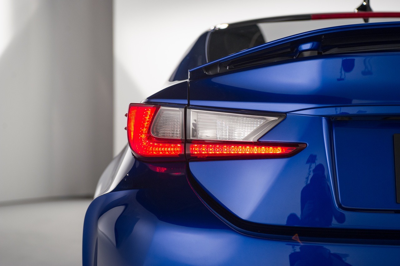 The Lexus RC F is powered by a naturally-aspirated 5.0 liter V8 engine producing 467 horsepower and 389 lb-ft of torque sent to the rear wheels via an eight-speed automatic transmission.